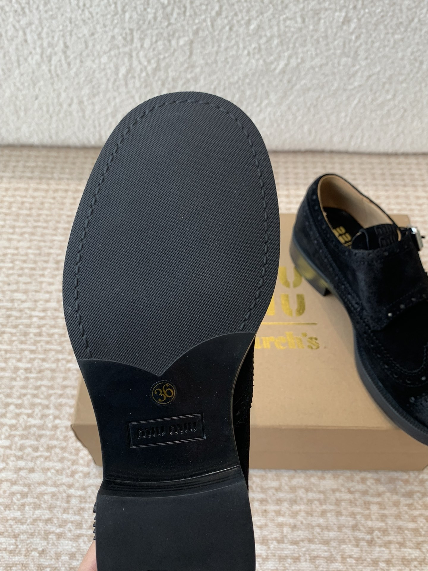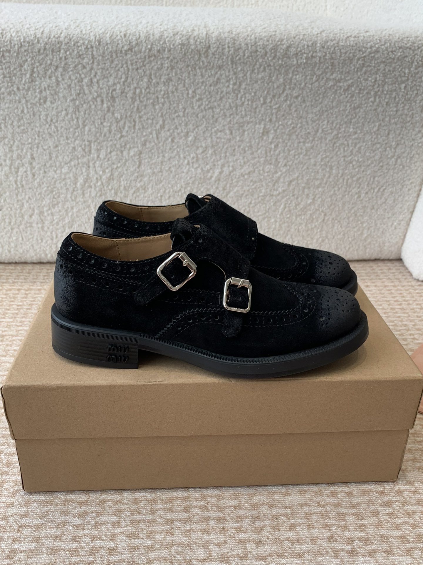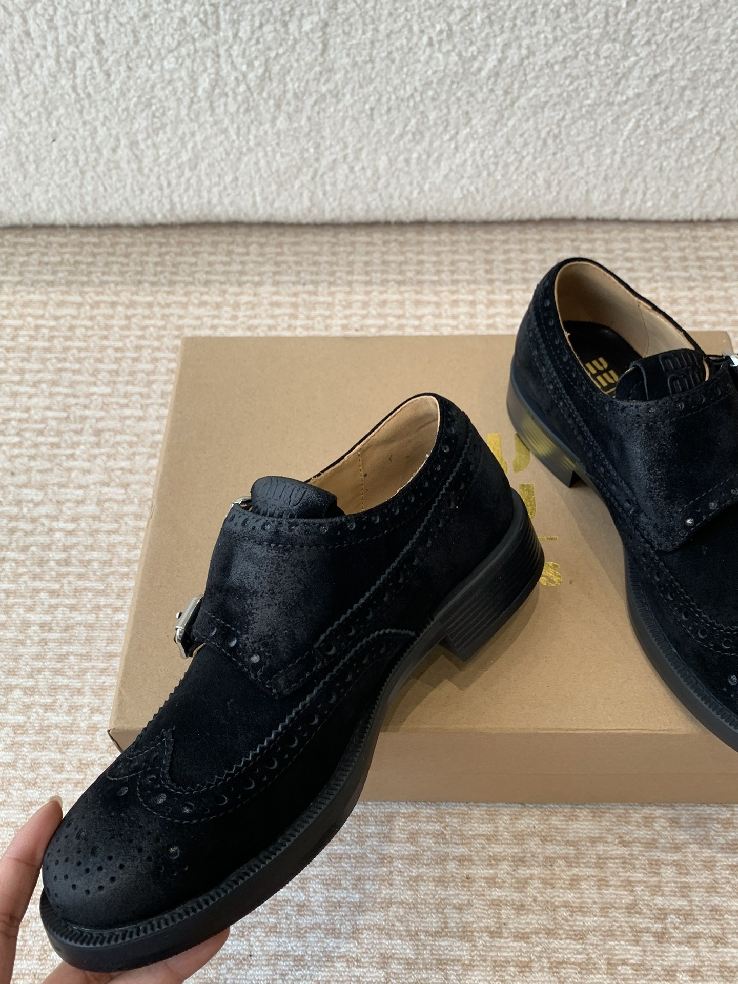 这款鞋子是AAAAA 1:1 质量 (非常棒). 使用了和原版一模一样的材料. 商标部分也保持了和缪缪/Miu Miu一样. 图片拍摄是实物鞋子拍摄, 您所收到的实物保证和我们图片一模一样.
