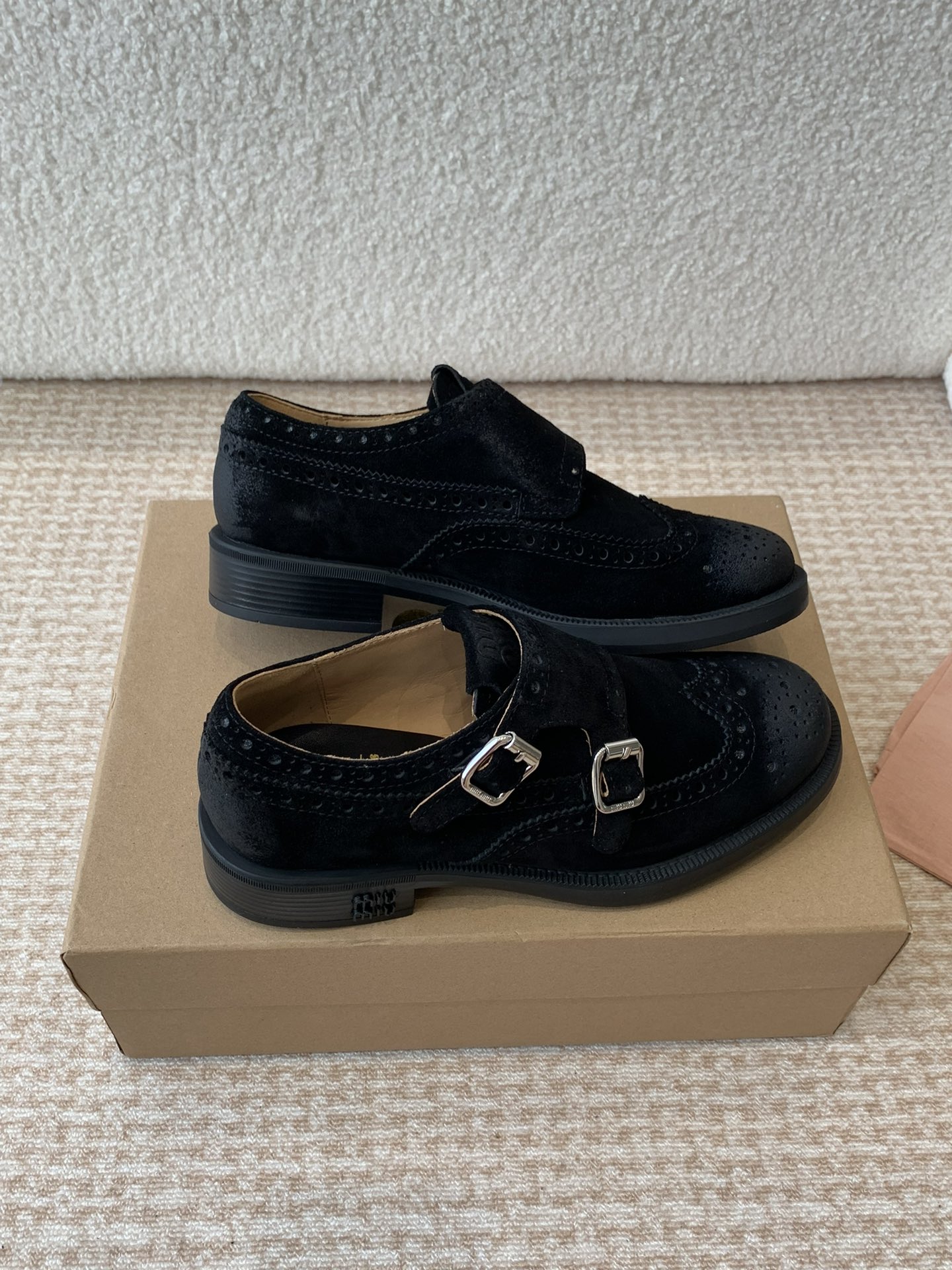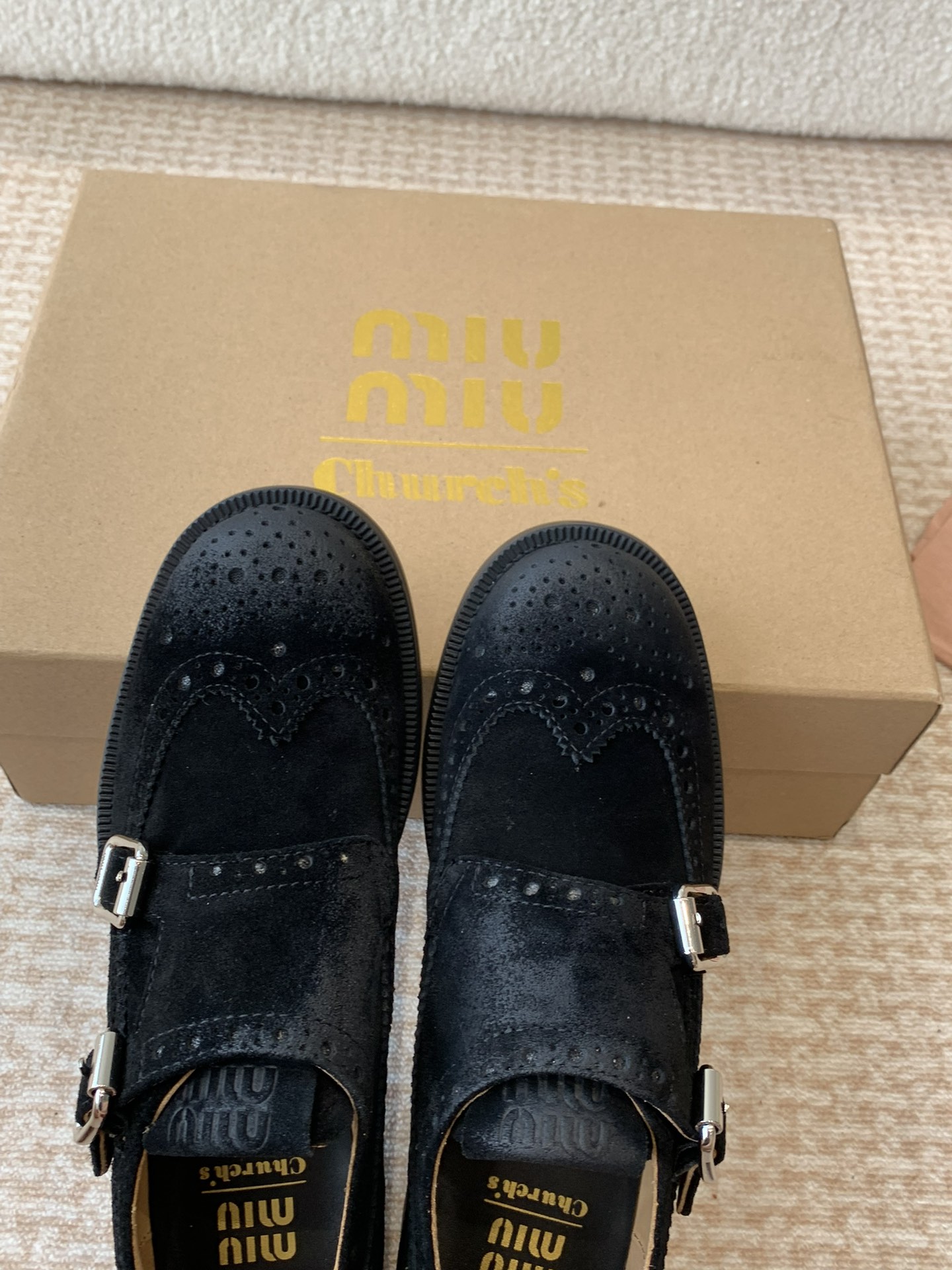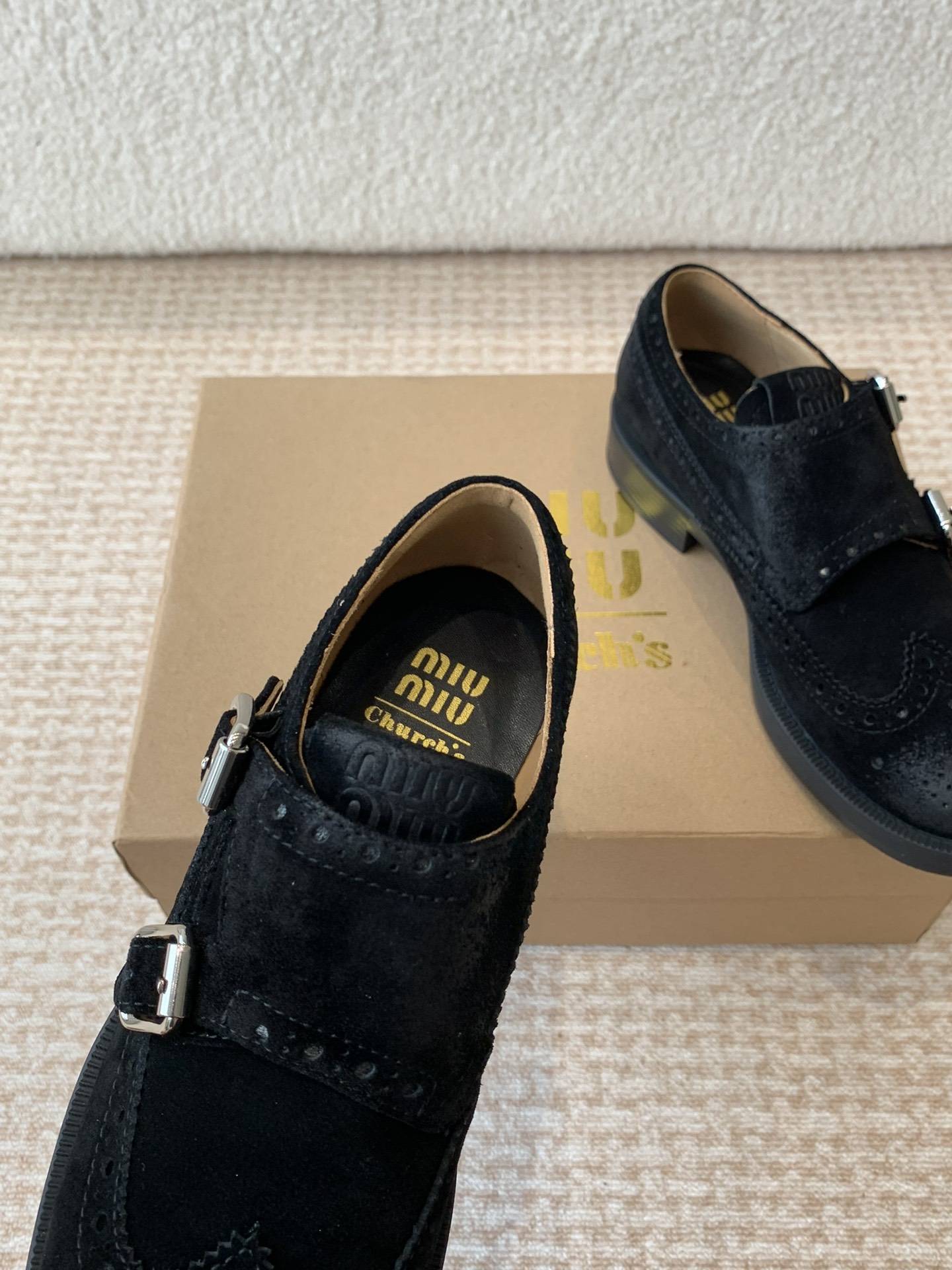 这款鞋子是AAAAA 1:1 质量 (非常棒). 使用了和原版一模一样的材料. 商标部分也保持了和缪缪/Miu Miu一样. 图片拍摄是实物鞋子拍摄, 您所收到的实物保证和我们图片一模一样.