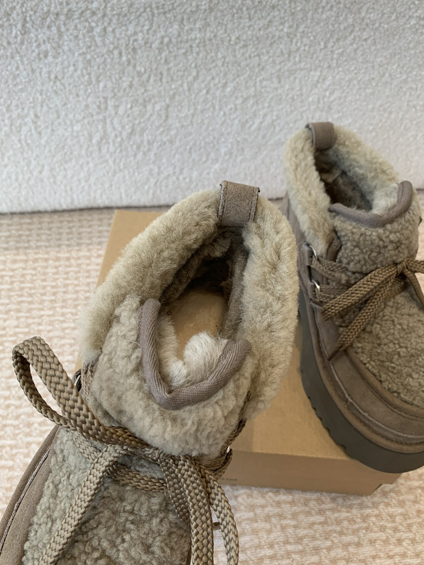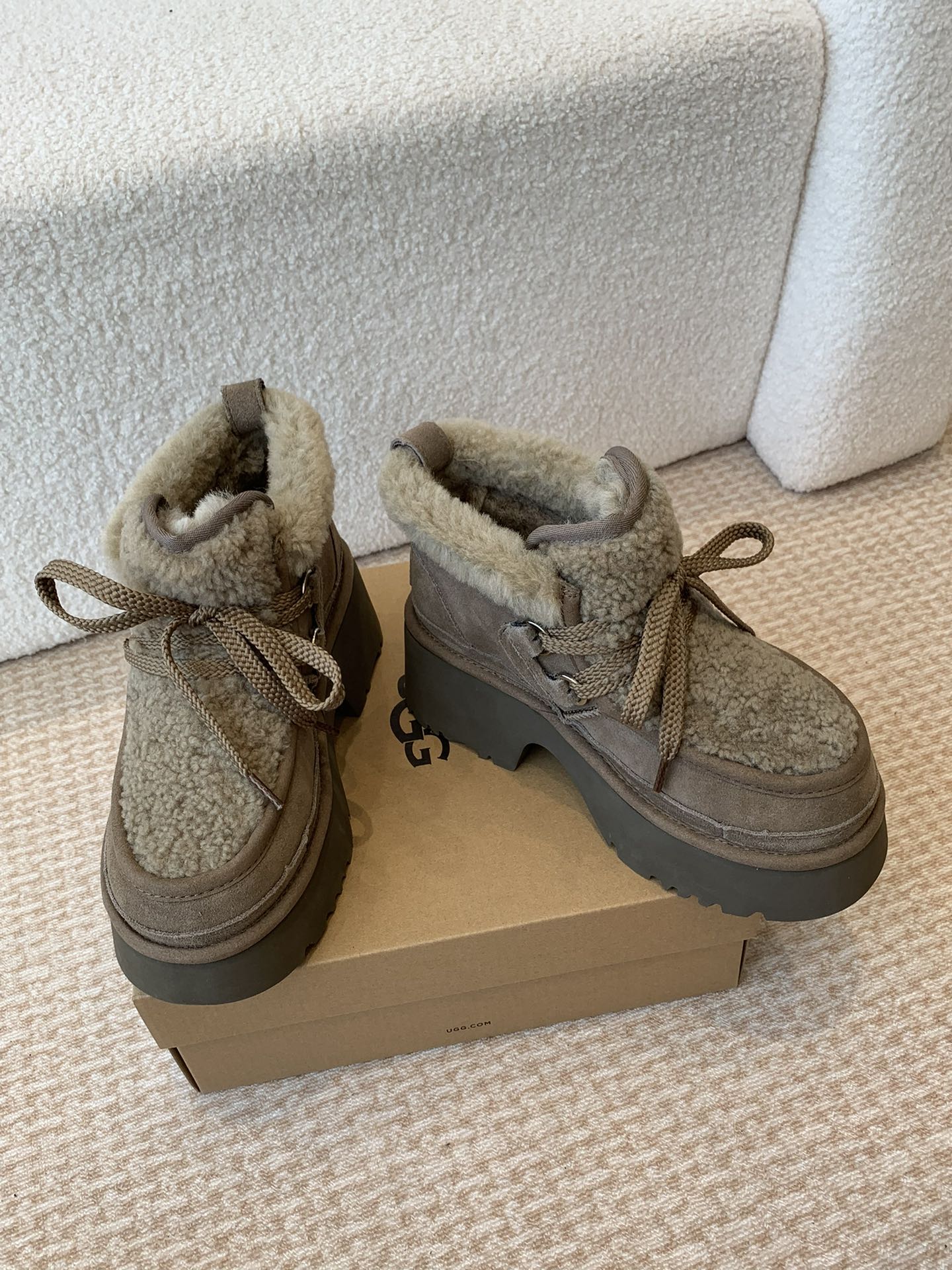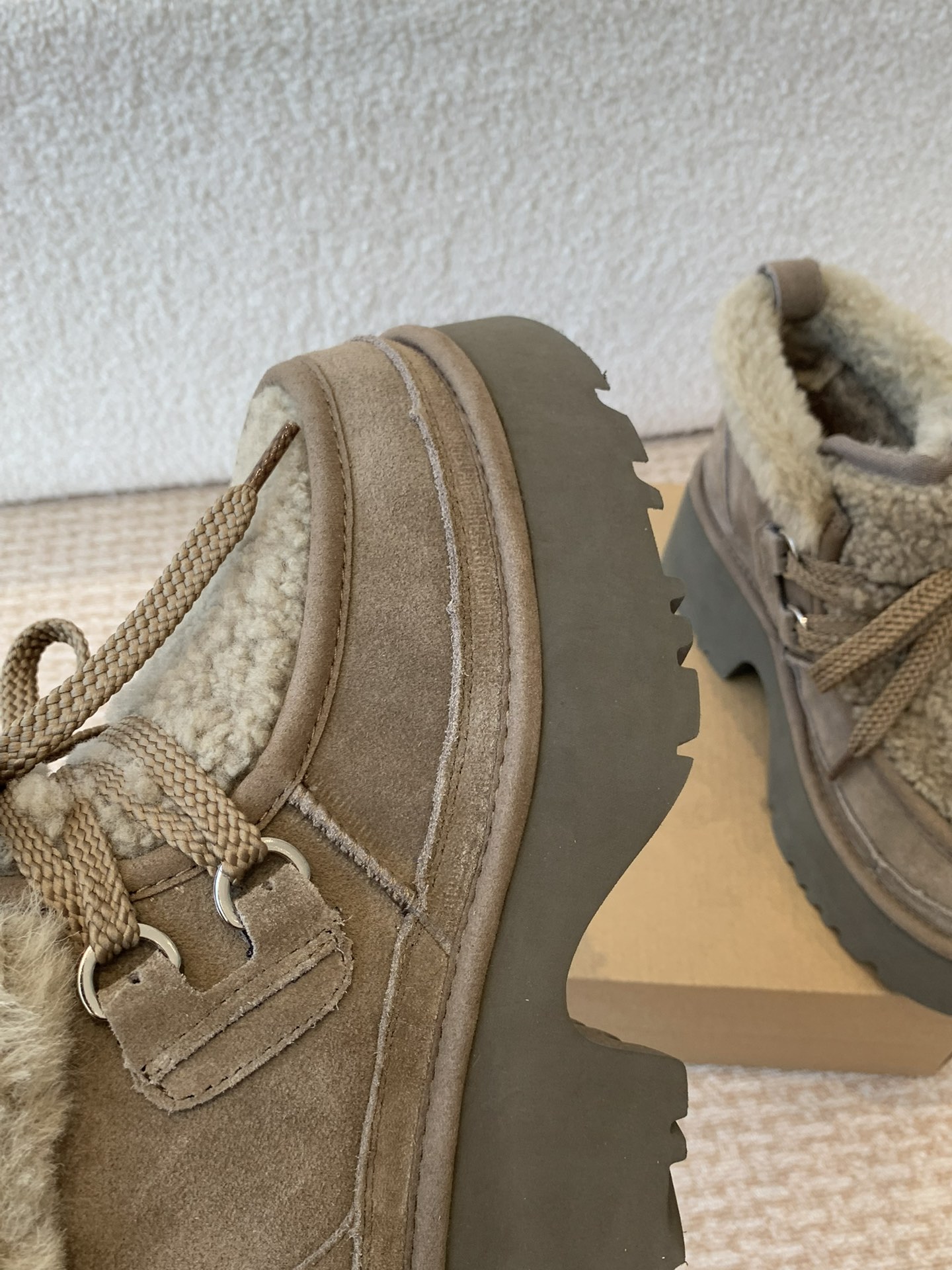 这款鞋子是AAAAA 1:1 质量 (非常棒). 使用了和原版一模一样的材料. 商标部分也保持了和UGG雪地靴一样. 图片拍摄是实物鞋子拍摄, 您所收到的实物保证和我们图片一模一样.