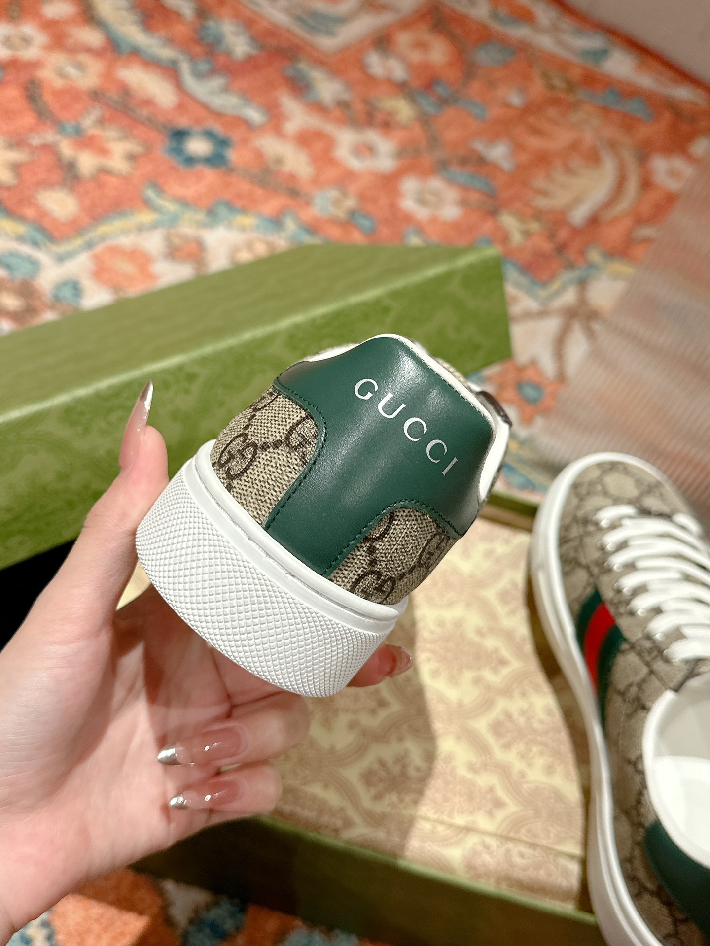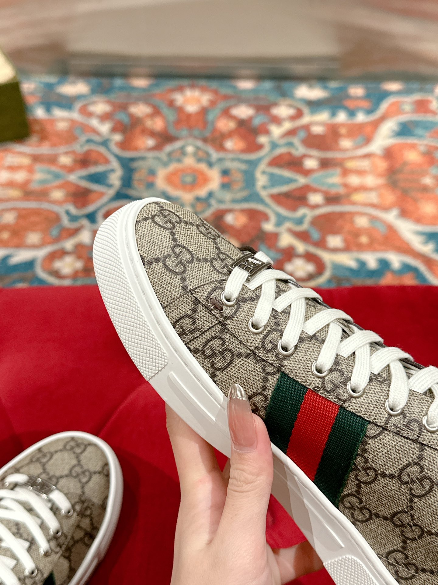 这款鞋子是AAAAA 1:1 质量 (非常棒). 使用了和原版一模一样的材料. 商标部分也保持了和古奇/Gucci一样. 图片拍摄是实物鞋子拍摄, 您所收到的实物保证和我们图片一模一样.