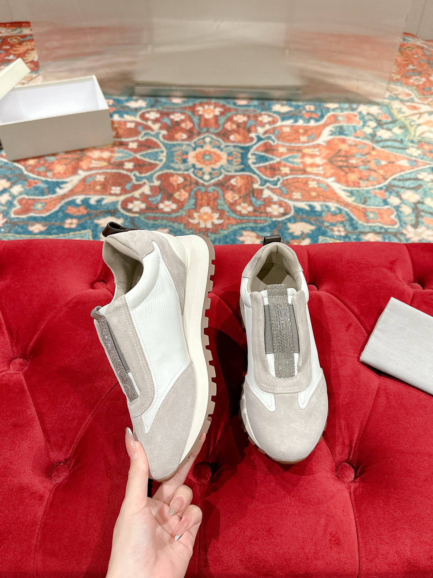 这款鞋子是AAAAA 1:1 质量 (非常棒). 使用了和原版一模一样的材料. 商标部分也保持了和Brunello Cucinelli一样. 图片拍摄是实物鞋子拍摄, 您所收到的实物保证和我们图片一模一样.