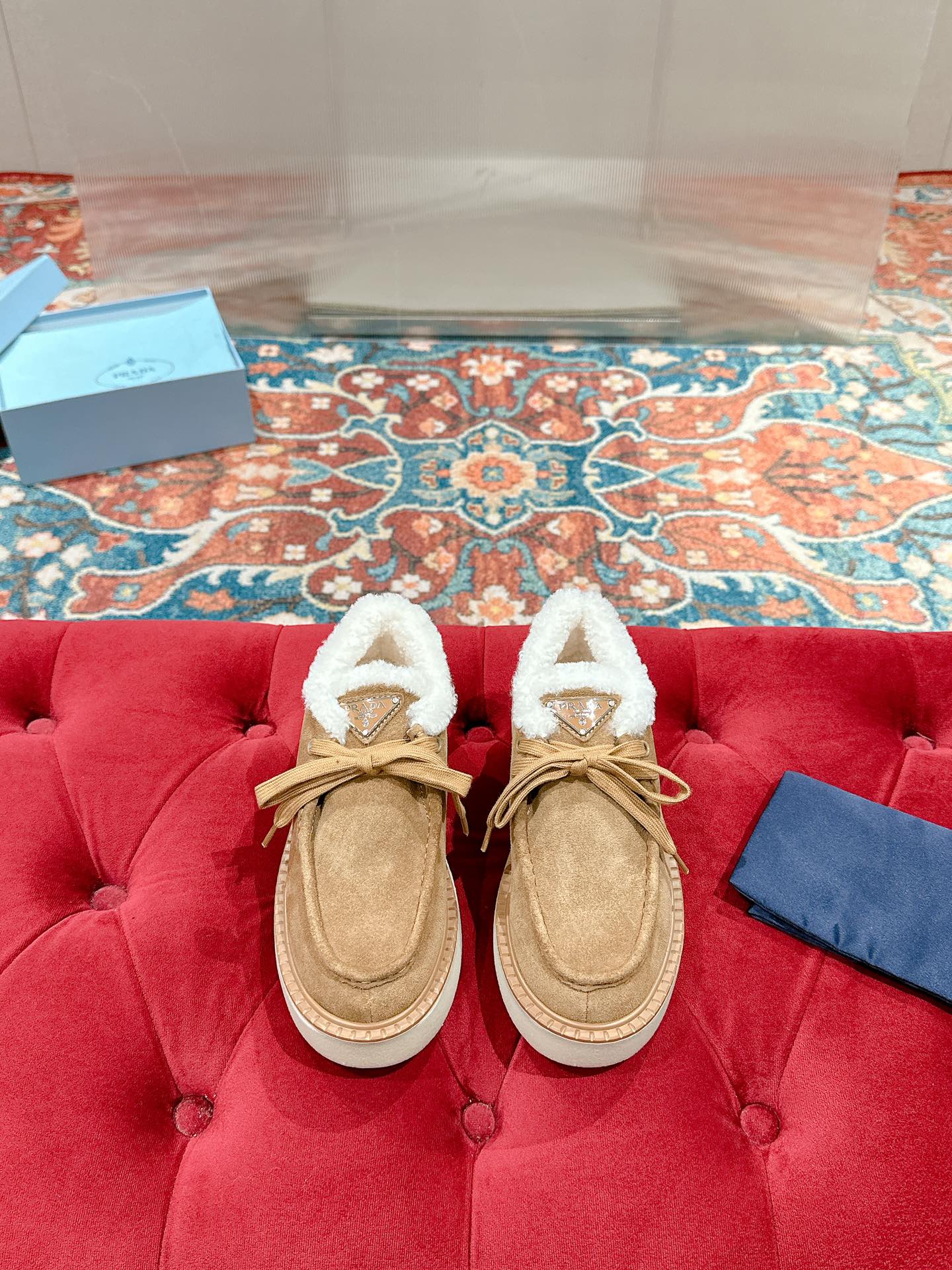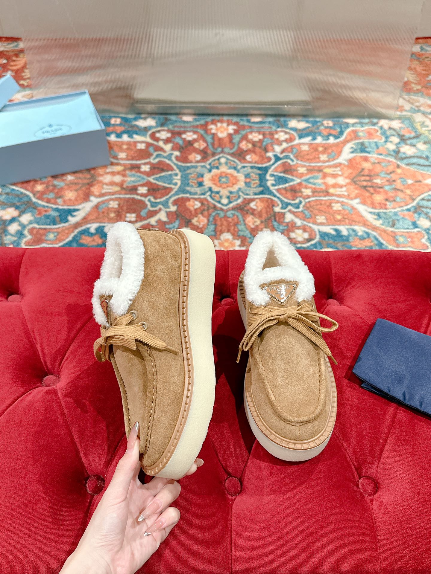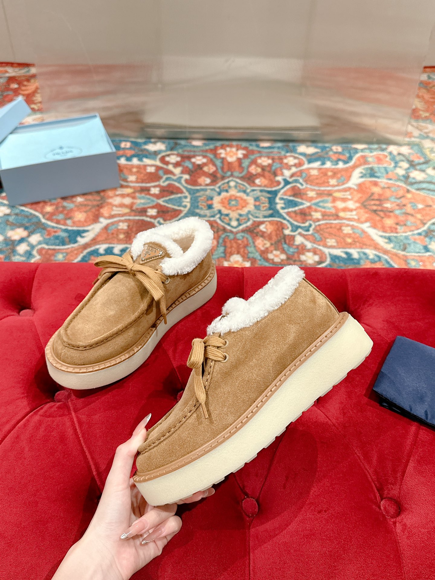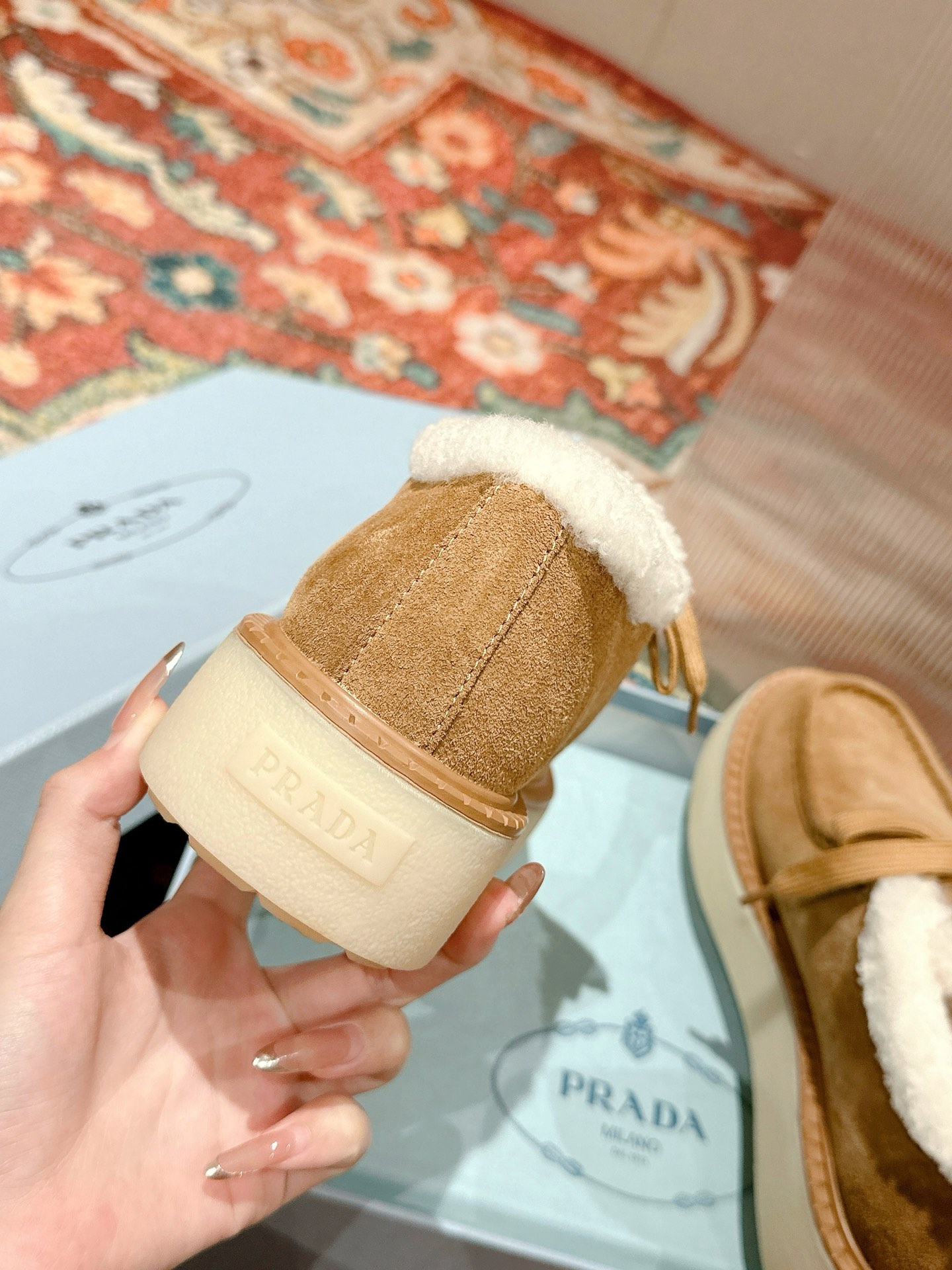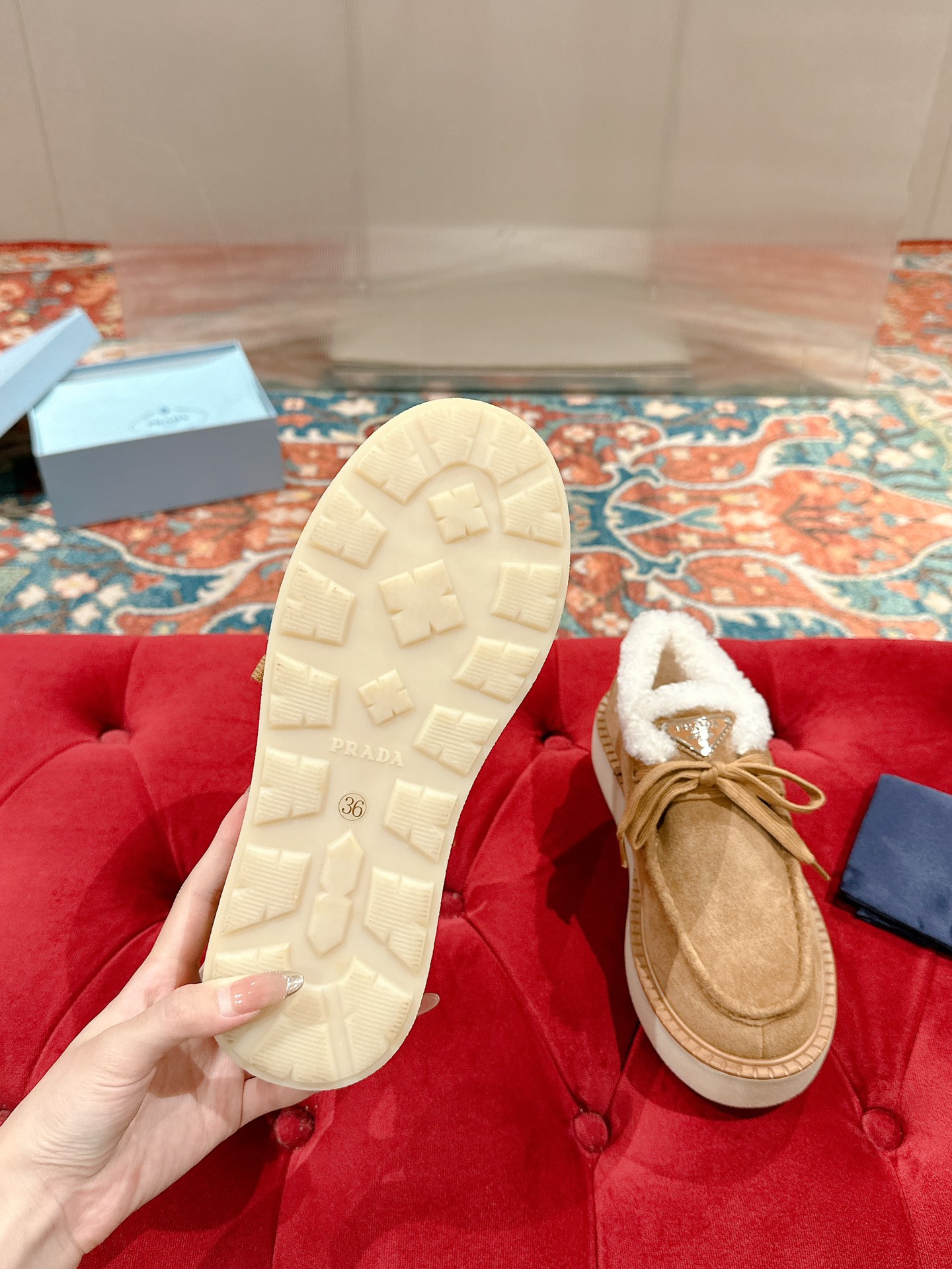 这款鞋子是AAAAA 1:1 质量 (非常棒). 使用了和原版一模一样的材料. 商标部分也保持了和普拉达/Prada一样. 图片拍摄是实物鞋子拍摄, 您所收到的实物保证和我们图片一模一样.