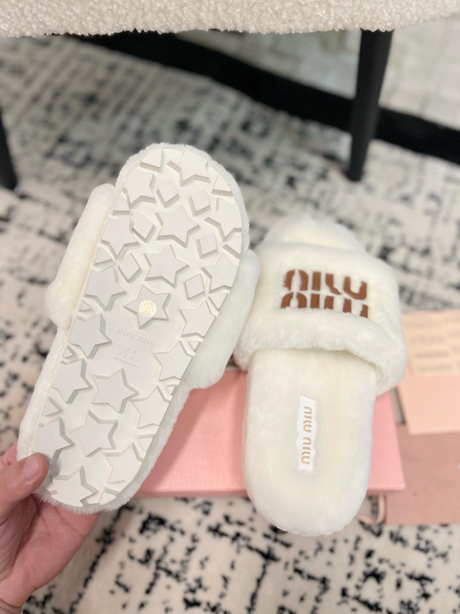 这款鞋子是AAAAA 1:1 质量 (非常棒). 使用了和原版一模一样的材料. 商标部分也保持了和缪缪/Miu Miu一样. 图片拍摄是实物鞋子拍摄, 您所收到的实物保证和我们图片一模一样.
