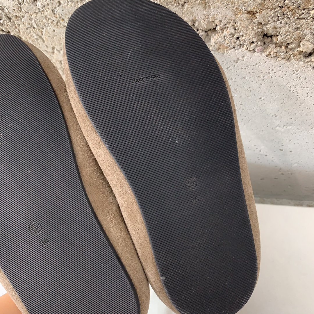 这款鞋子是AAAAA 1:1 质量 (非常棒). 使用了和原版一模一样的材料. 商标部分也保持了和The Row一样. 图片拍摄是实物鞋子拍摄, 您所收到的实物保证和我们图片一模一样.