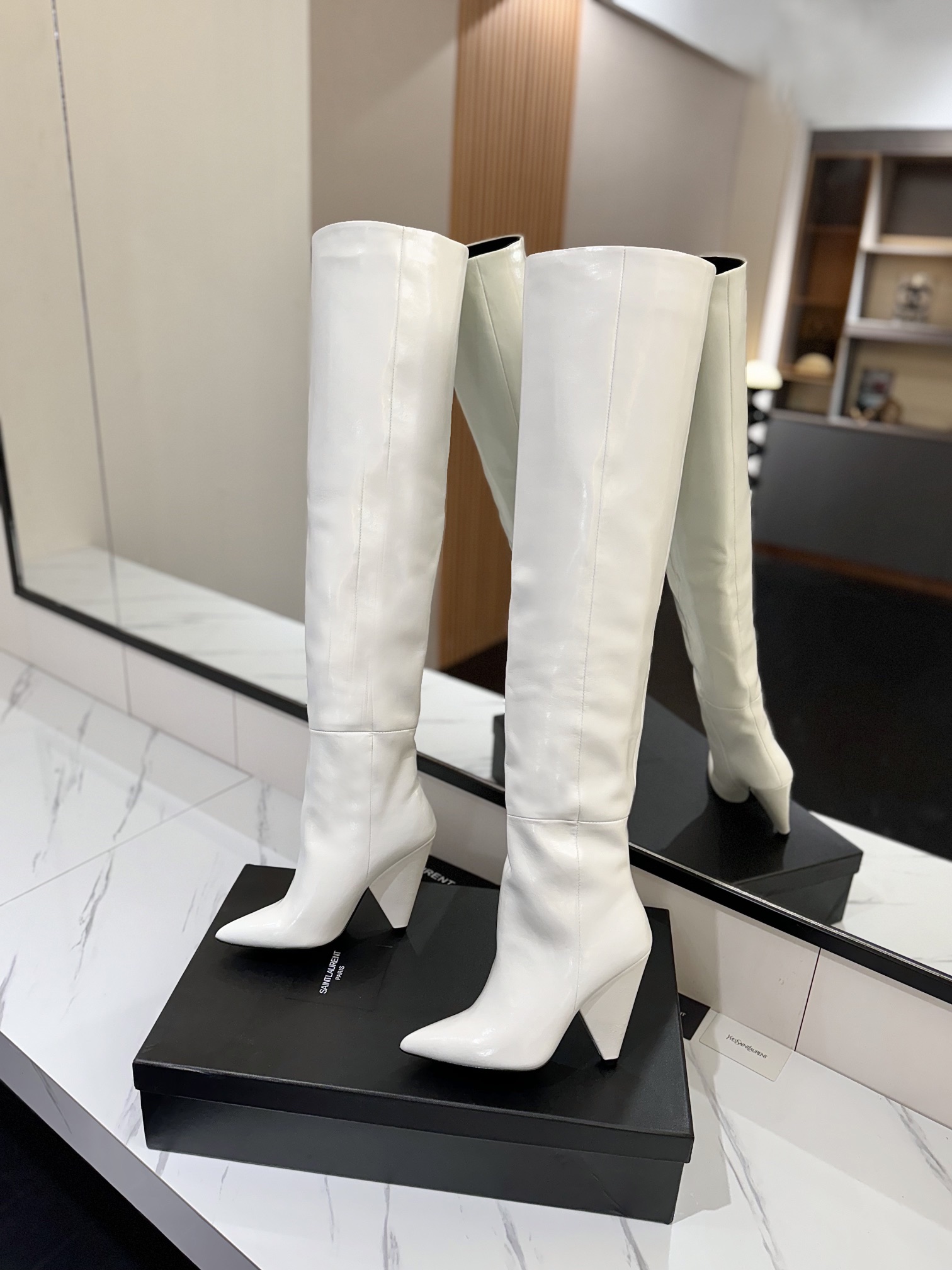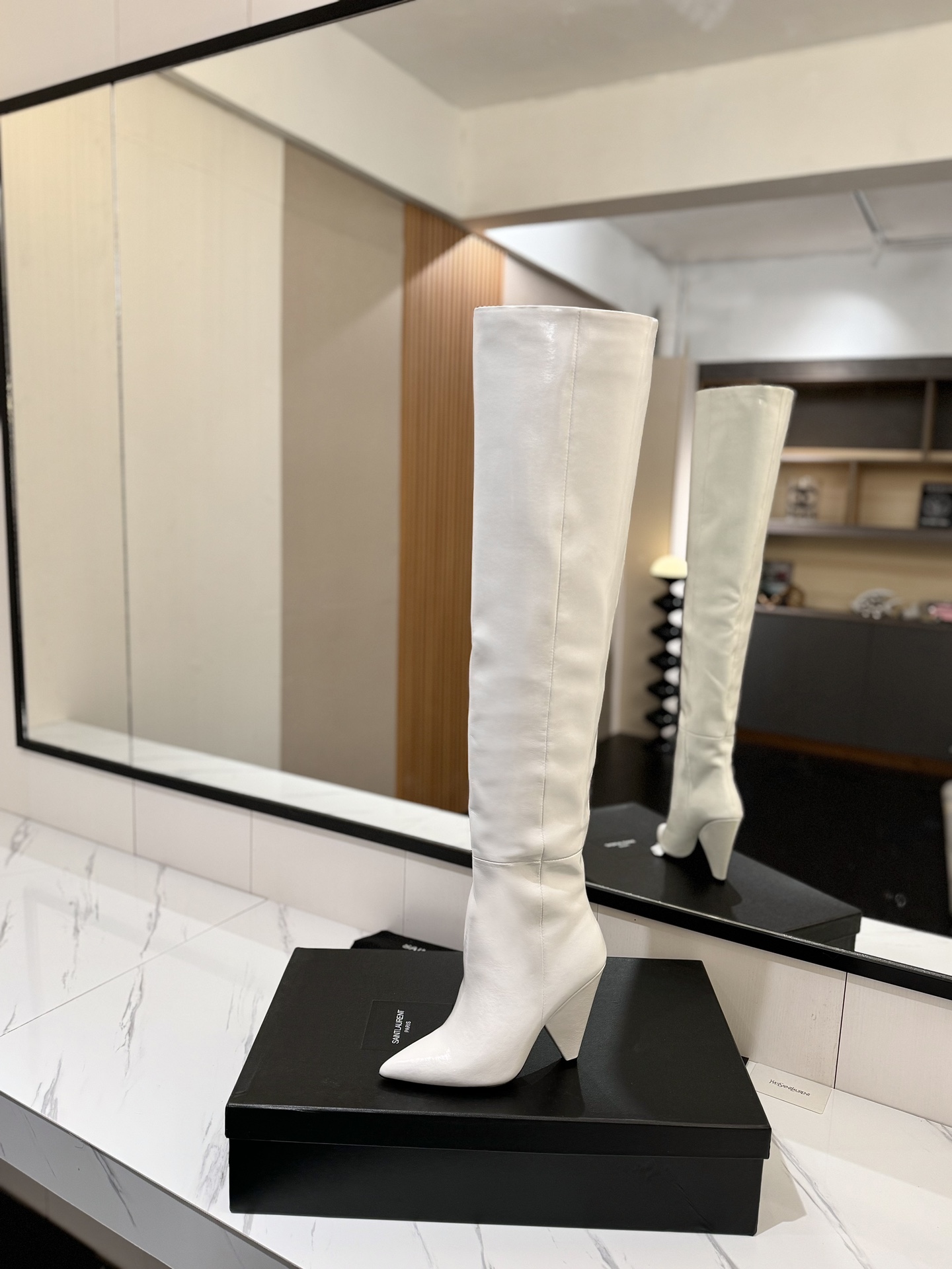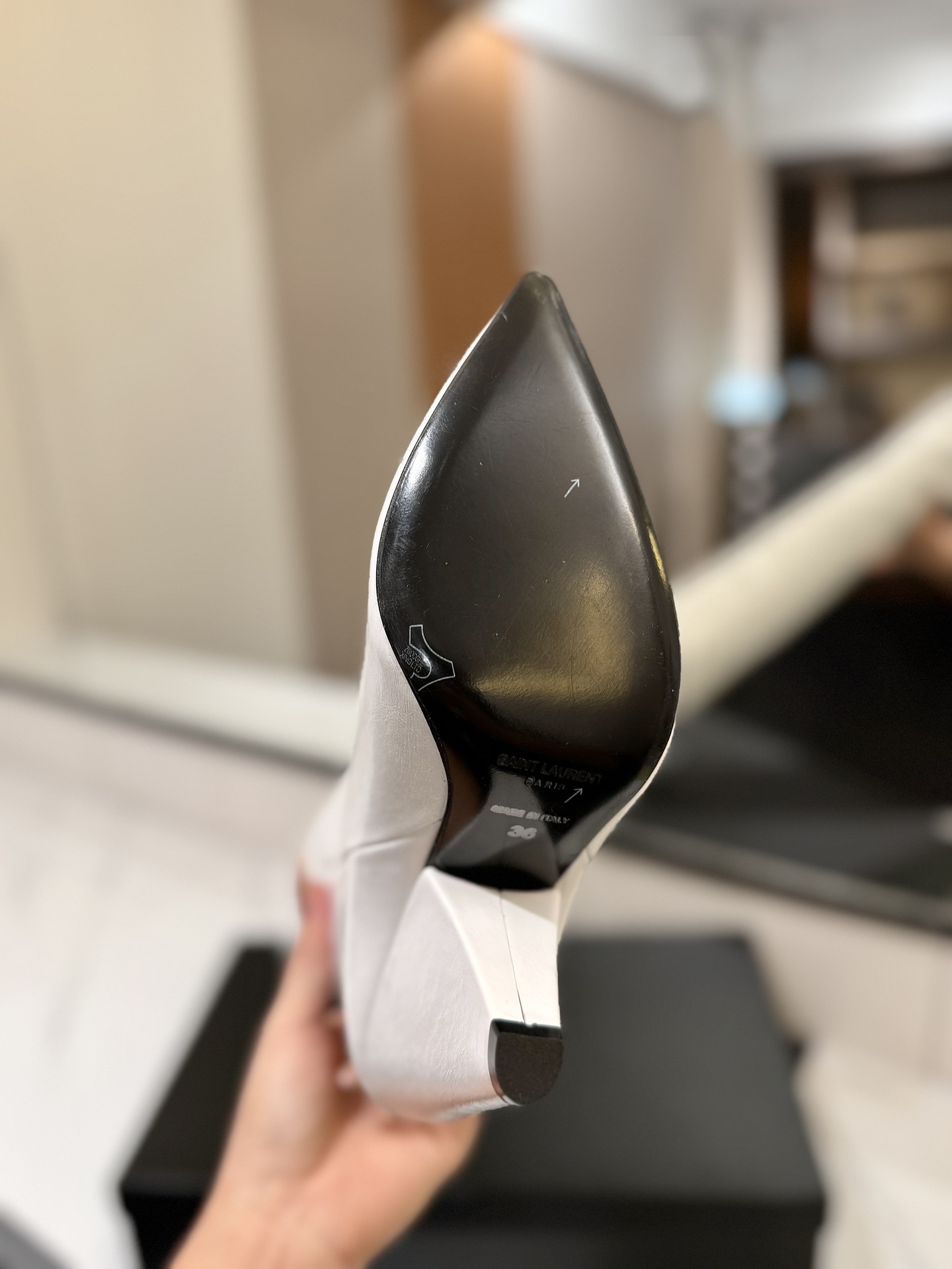 这款鞋子是AAAAA 1:1 质量 (非常棒). 使用了和原版一模一样的材料. 商标部分也保持了和圣罗兰/Saint Laurent一样. 图片拍摄是实物鞋子拍摄, 您所收到的实物保证和我们图片一模一样.