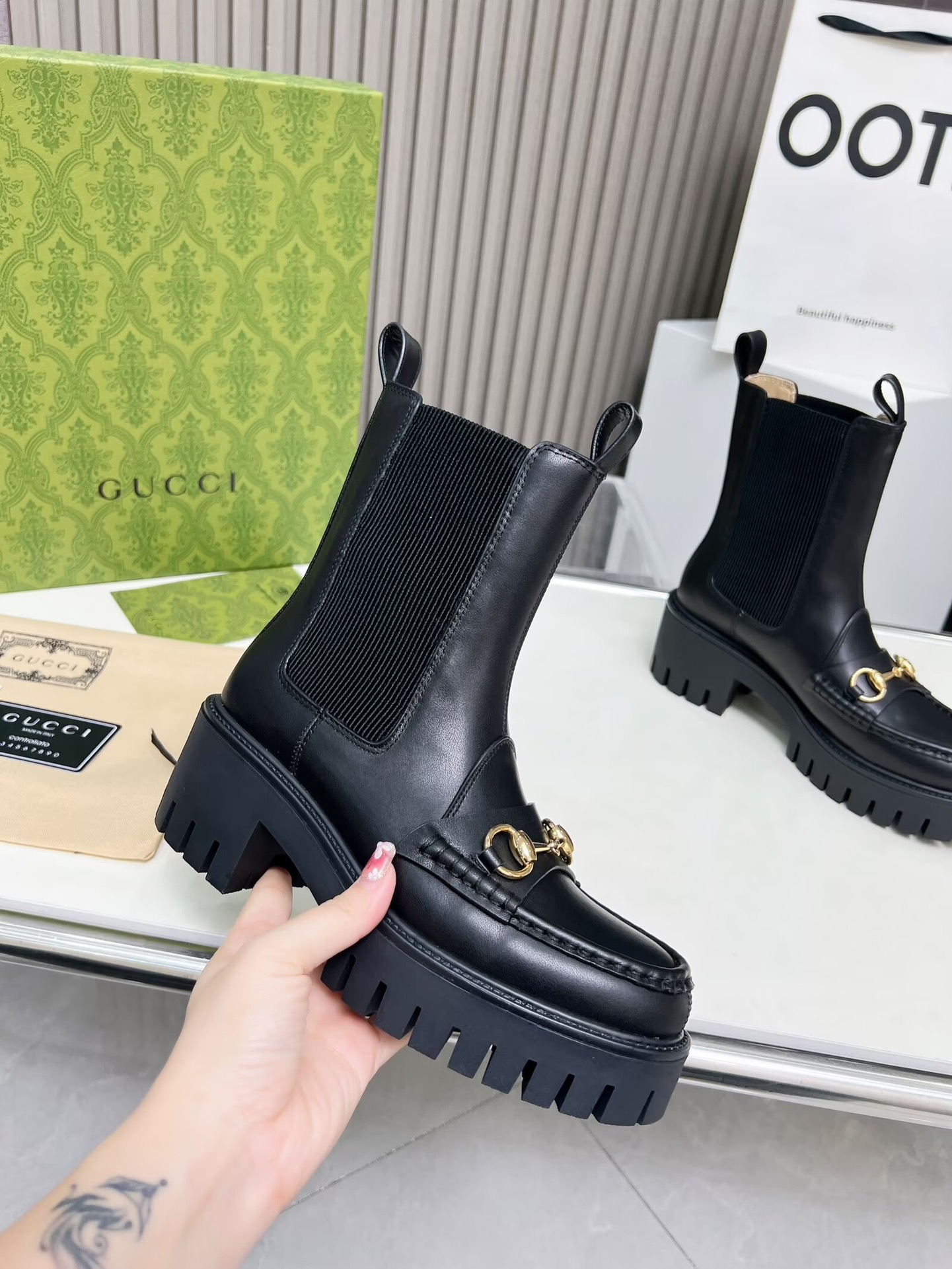 这款鞋子是AAAAA 1:1 质量 (非常棒). 使用了和原版一模一样的材料. 商标部分也保持了和古奇/Gucci一样. 图片拍摄是实物鞋子拍摄, 您所收到的实物保证和我们图片一模一样.