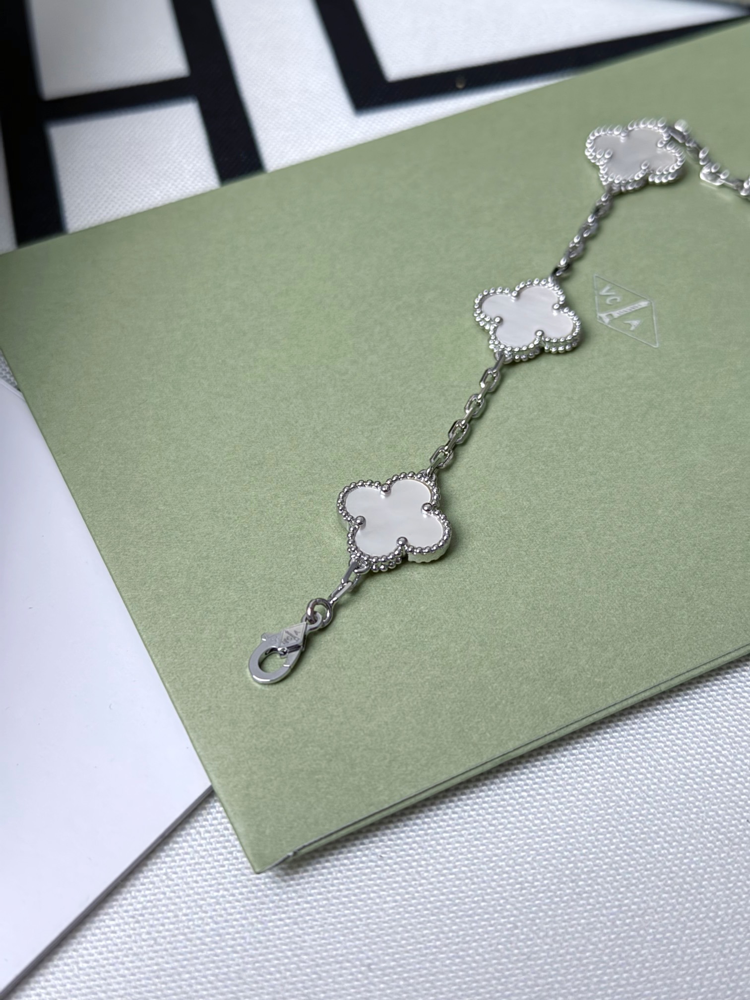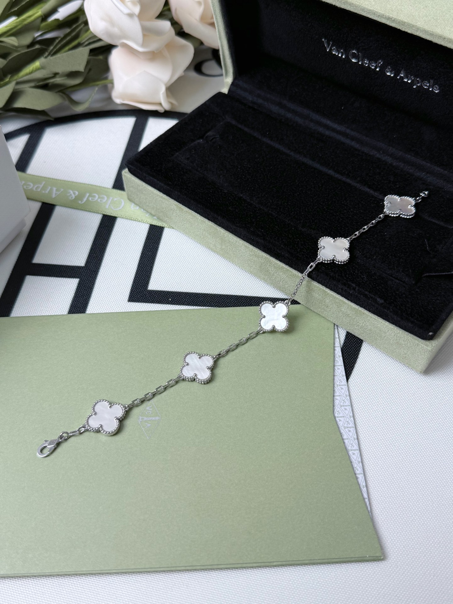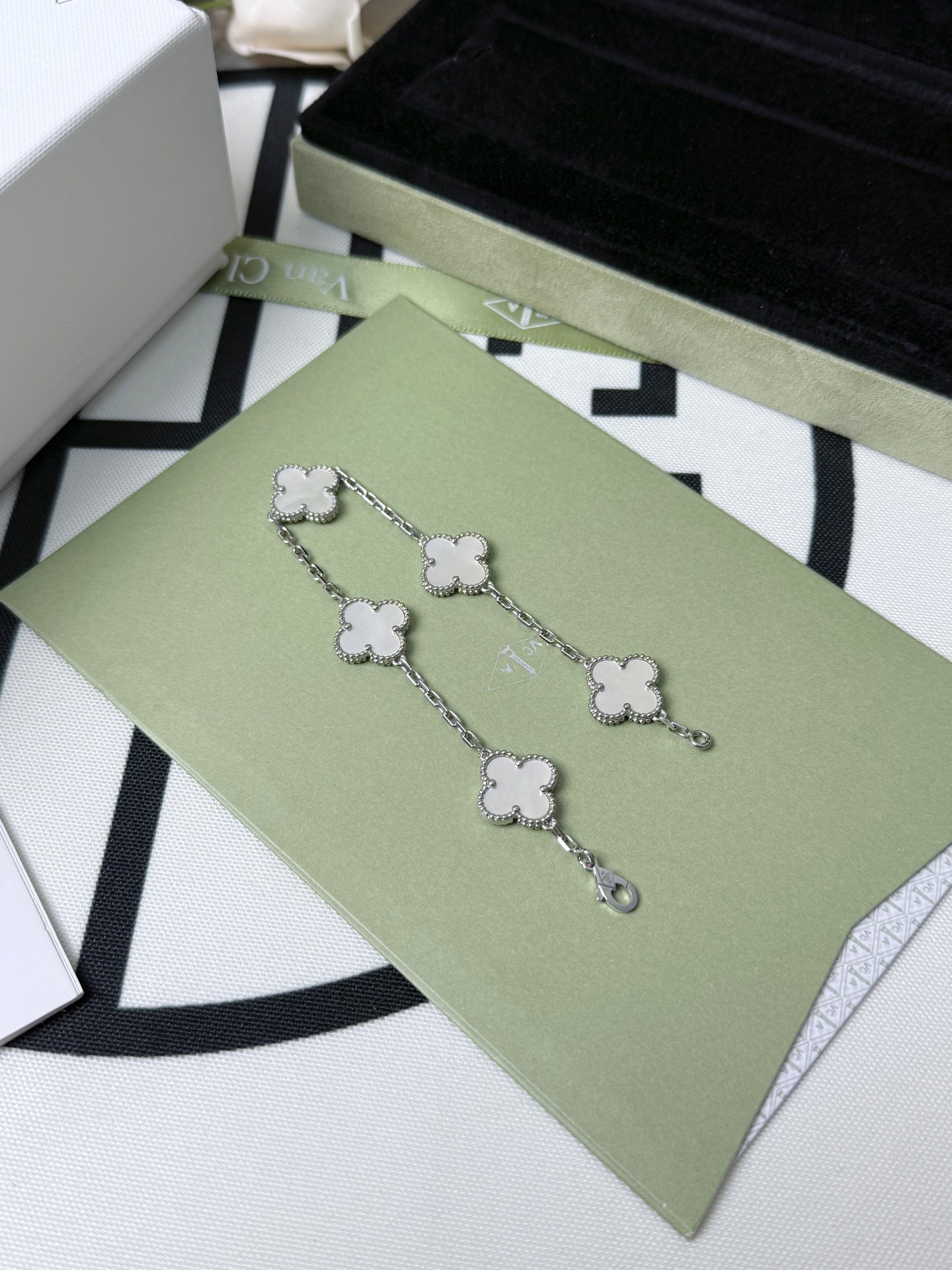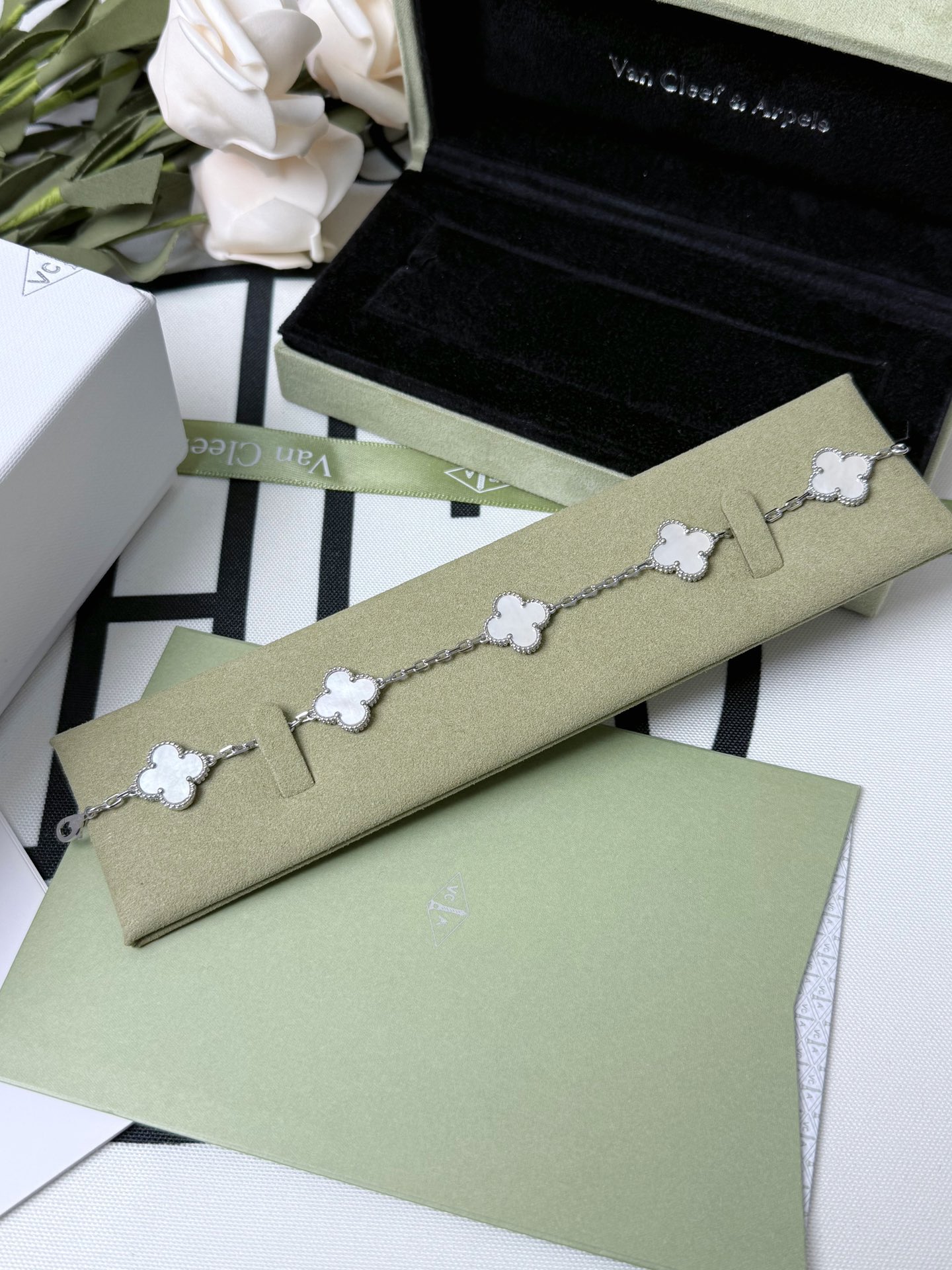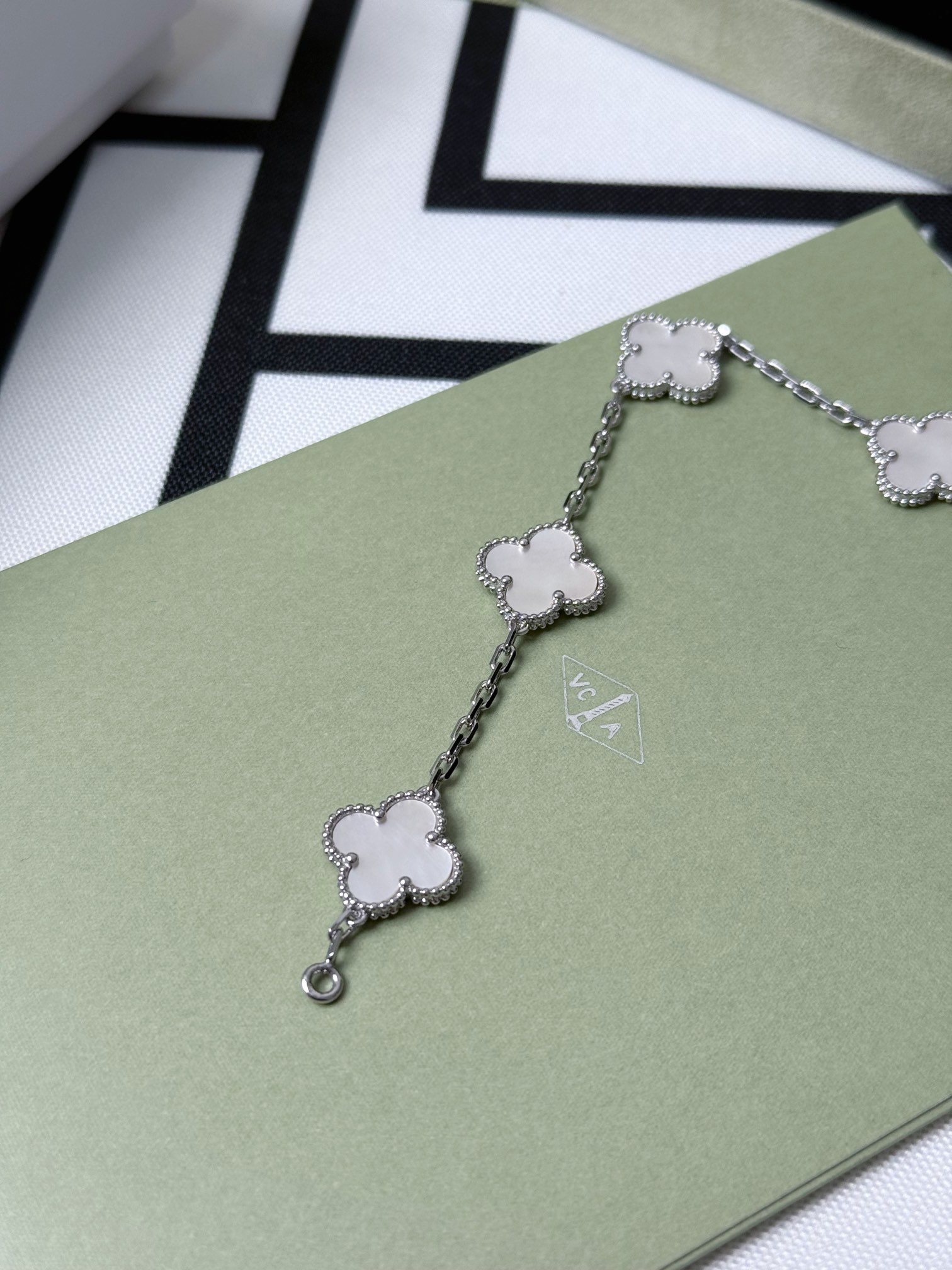 这款首饰是AAAAA 1:1 质量 (非常棒). 使用了和原版一模一样的材料. 商标部分也保持了和梵克雅宝/Van Cleef & Arpels一样. 图片拍摄是实物首饰拍摄, 您所收到的实物保证和我们图片一模一样.