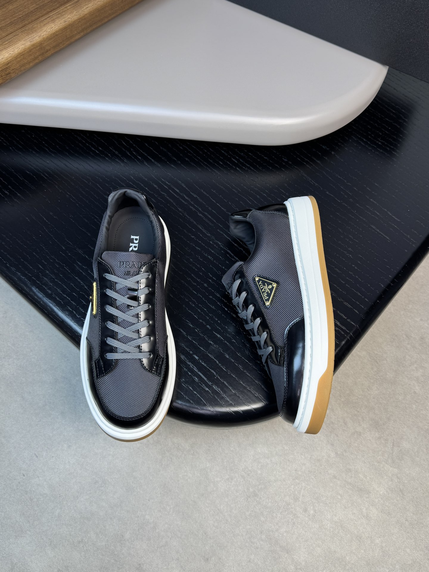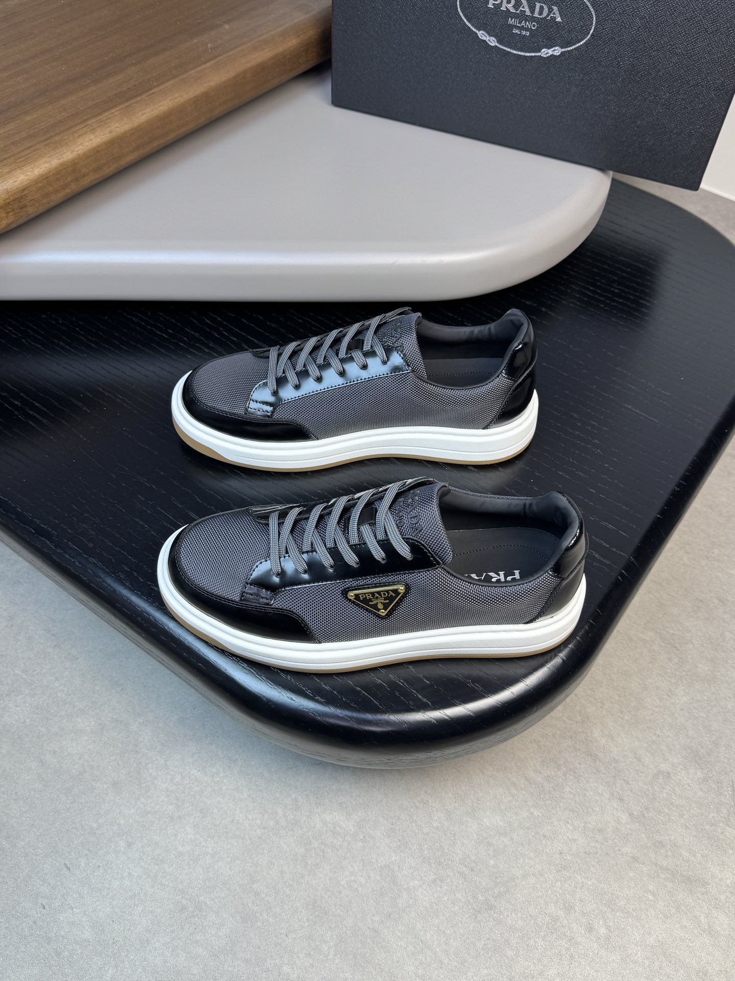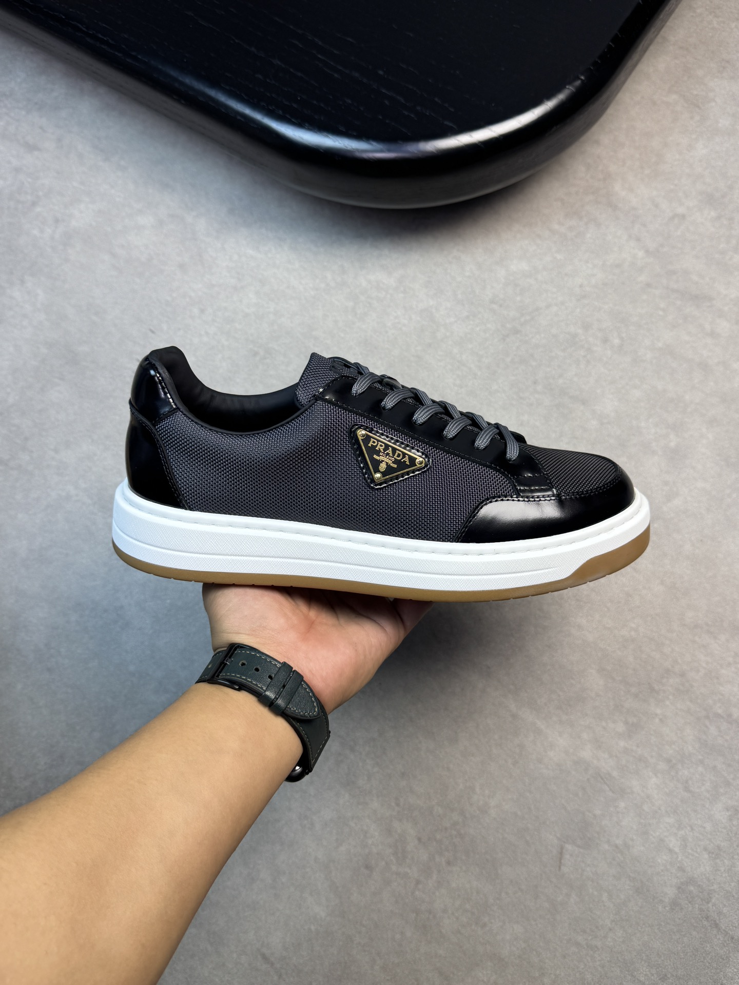 这款鞋子是AAAAA 1:1 质量 (非常棒). 使用了和原版一模一样的材料. 商标部分也保持了和普拉达/Prada一样. 图片拍摄是实物鞋子拍摄, 您所收到的实物保证和我们图片一模一样.