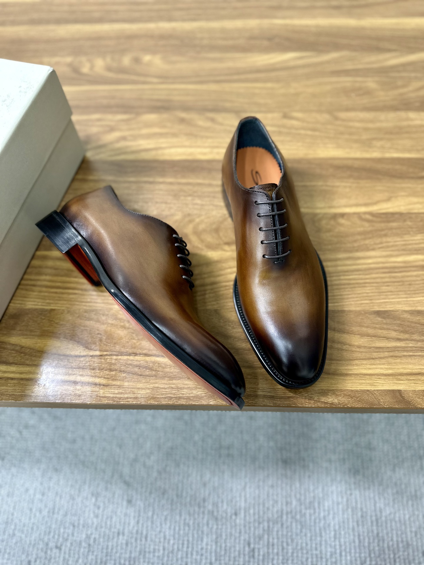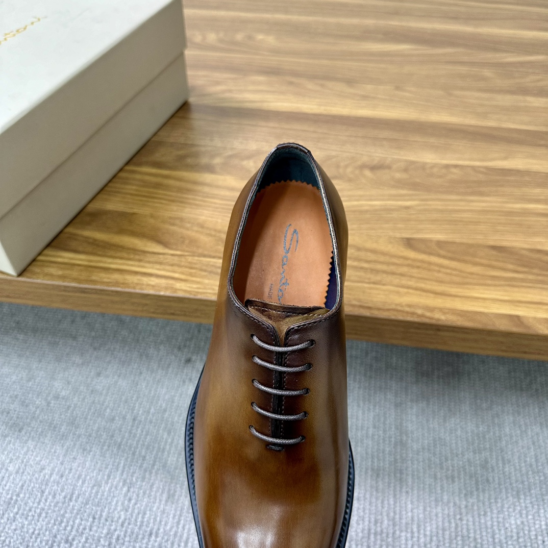 这款鞋子是AAAAA 1:1 质量 (非常棒). 使用了和原版一模一样的材料. 商标部分也保持了和Santoni一样. 图片拍摄是实物鞋子拍摄, 您所收到的实物保证和我们图片一模一样.