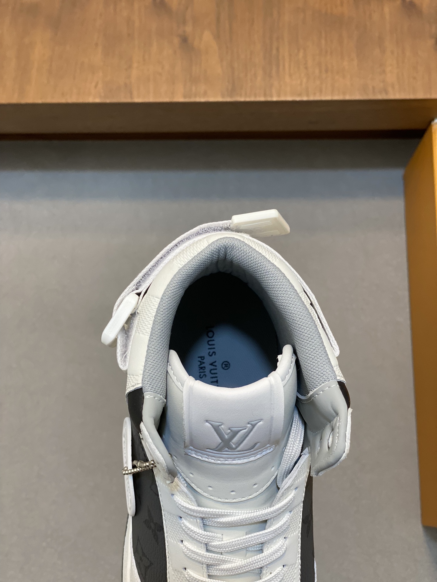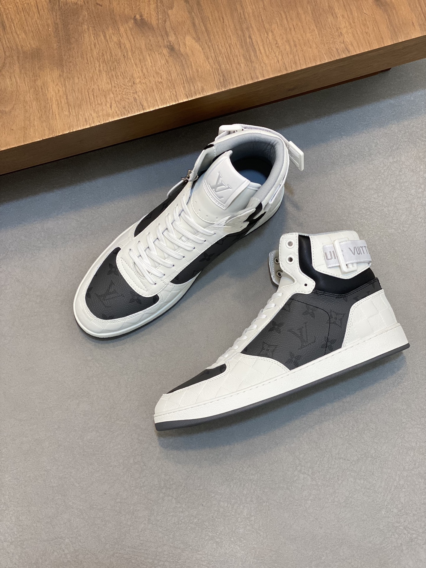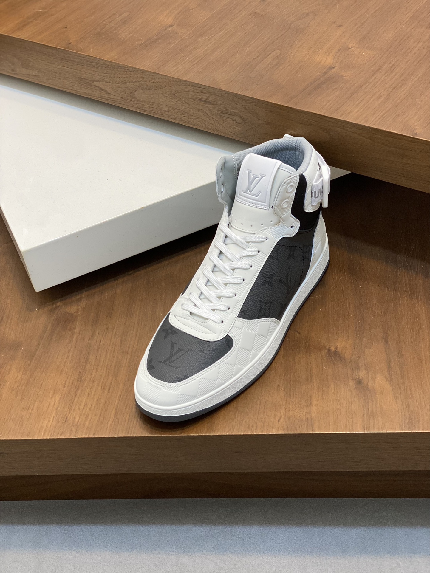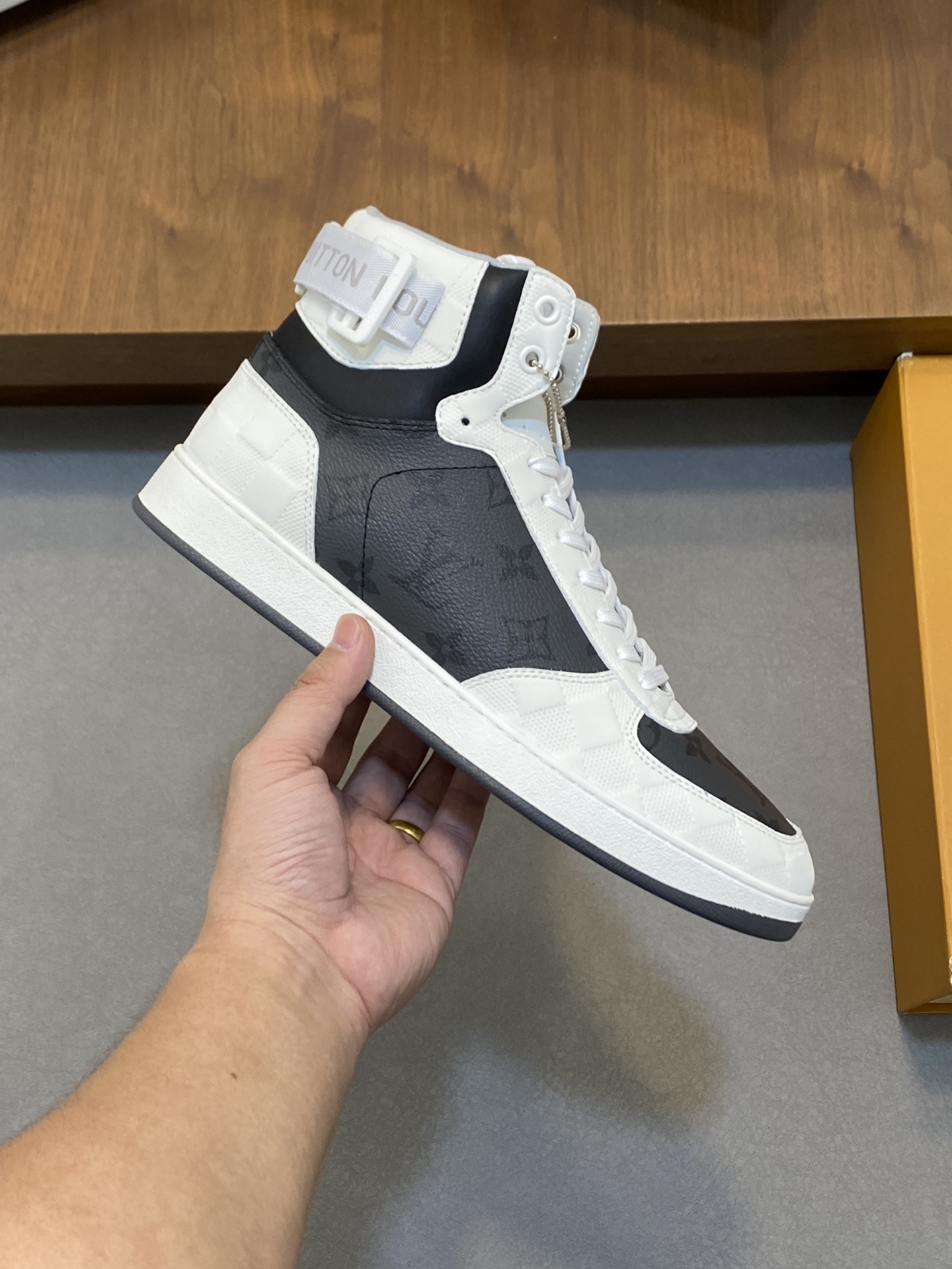 这款鞋子是AAAAA 1:1 质量 (非常棒). 使用了和原版一模一样的材料. 商标部分也保持了和路易威登/Louis Vuitton一样. 图片拍摄是实物鞋子拍摄, 您所收到的实物保证和我们图片一模一样.