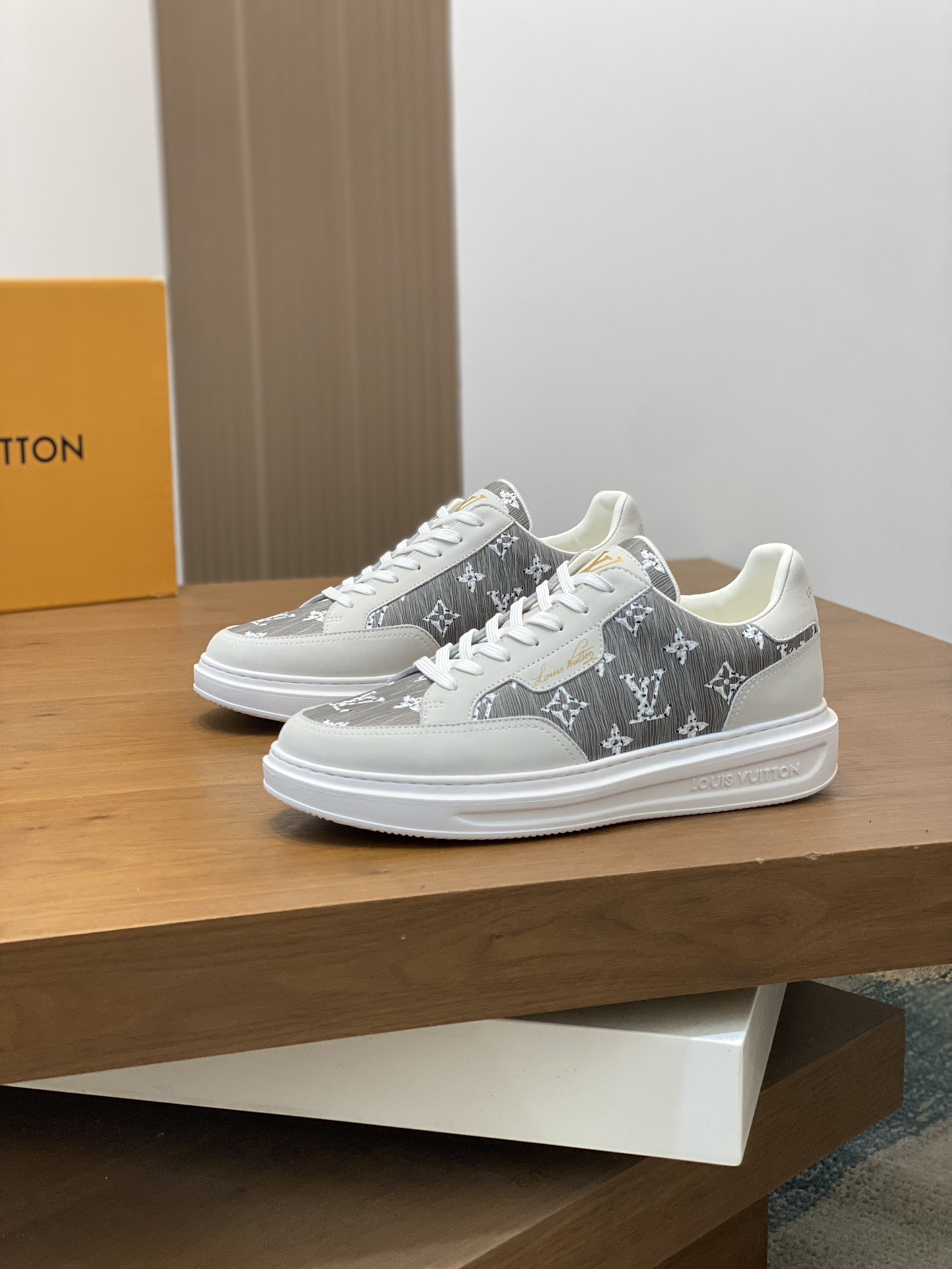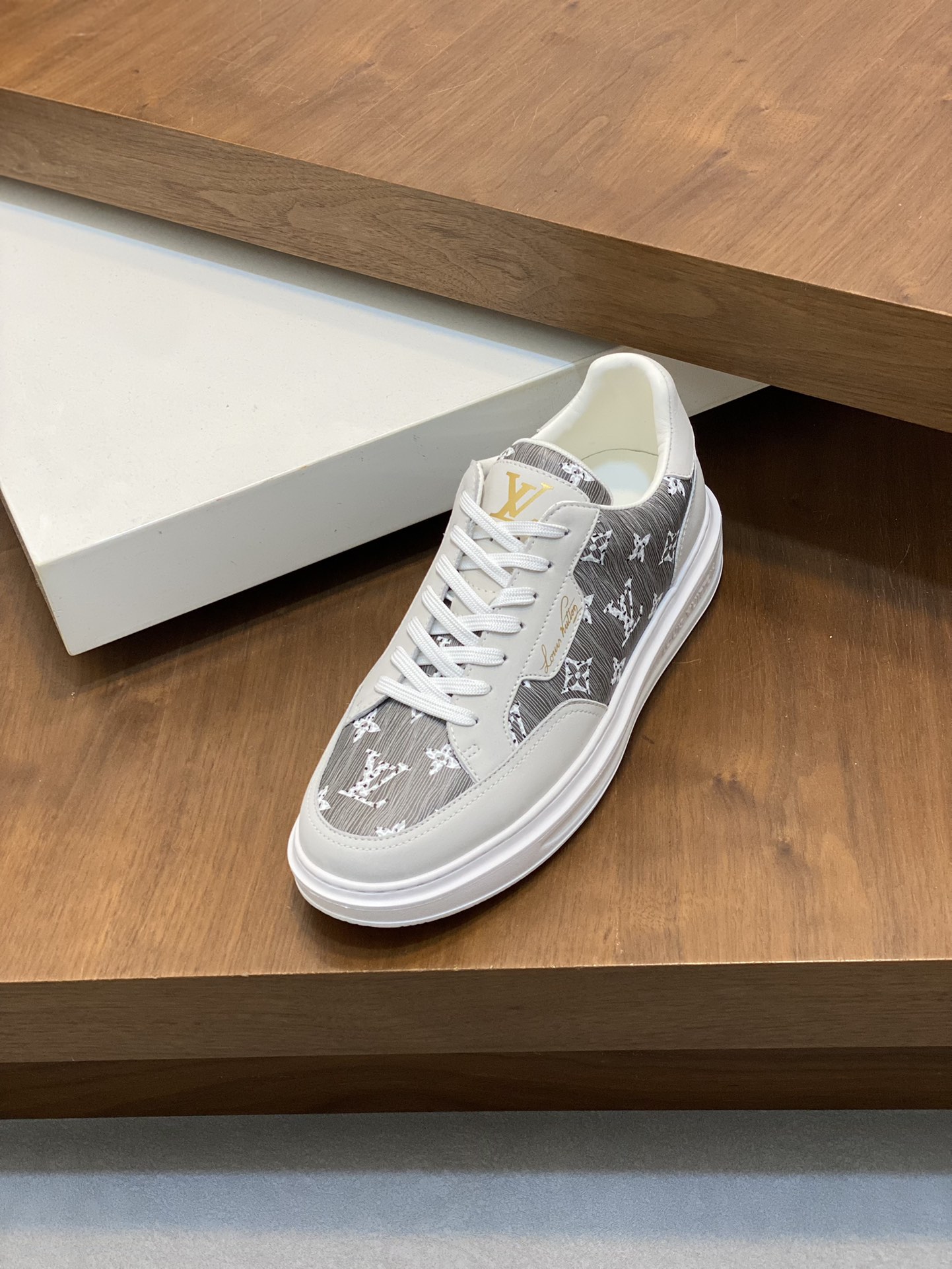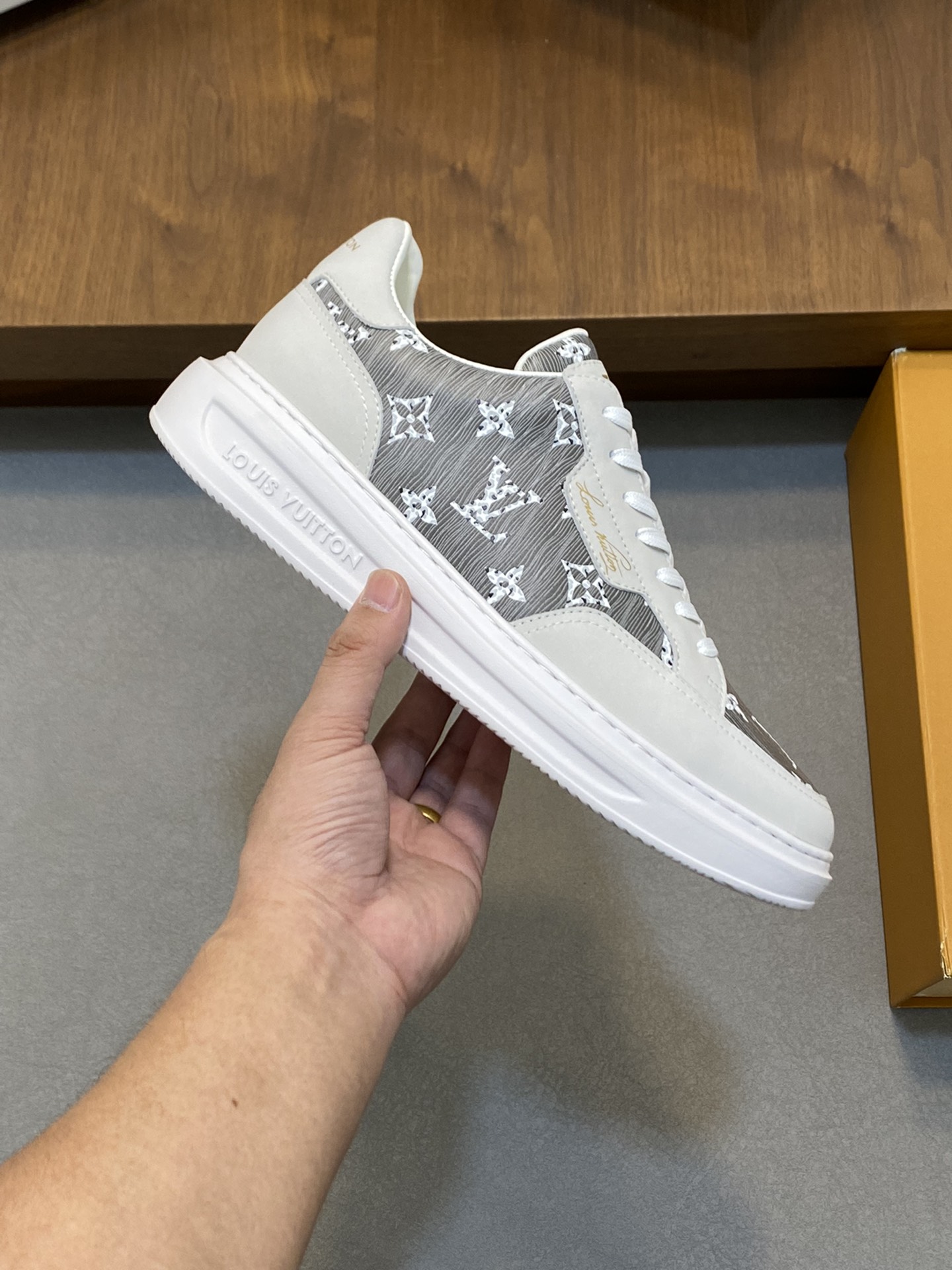 这款鞋子是AAAAA 1:1 质量 (非常棒). 使用了和原版一模一样的材料. 商标部分也保持了和路易威登/Louis Vuitton一样. 图片拍摄是实物鞋子拍摄, 您所收到的实物保证和我们图片一模一样.