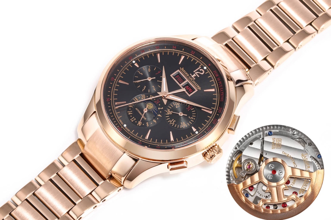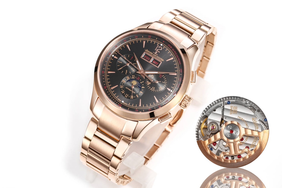 这款手表是AAAAA 1:1 质量 (非常棒). 使用了和原版一模一样的材料. 商标部分也保持了和Jaeger Lecoultre一样. 图片拍摄是实物手表拍摄, 您所收到的实物保证和我们图片一模一样.