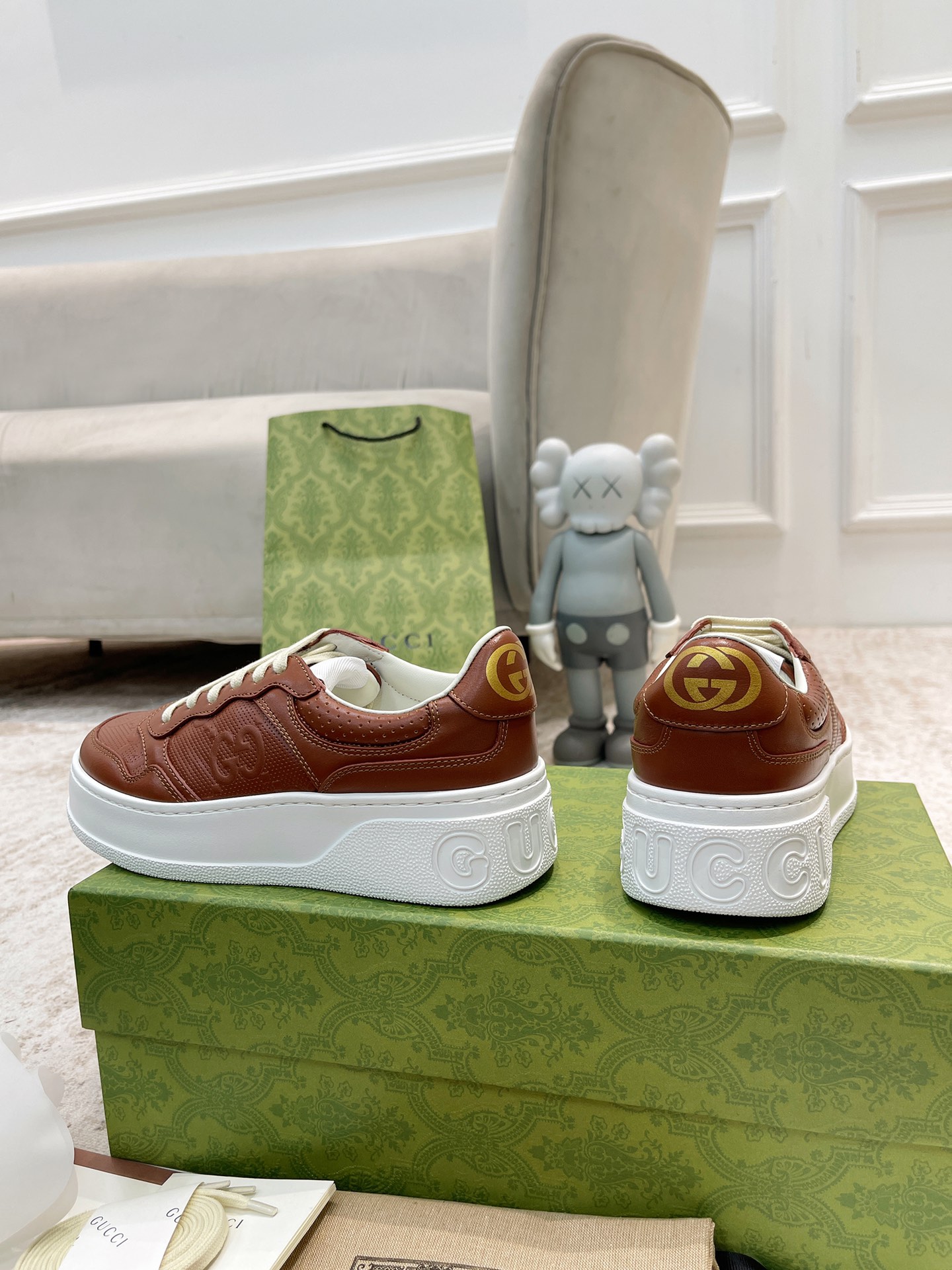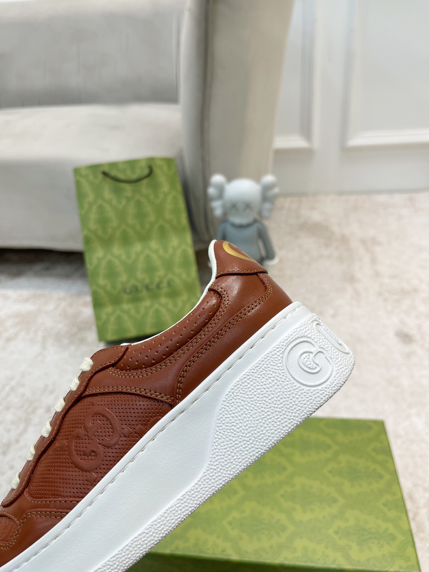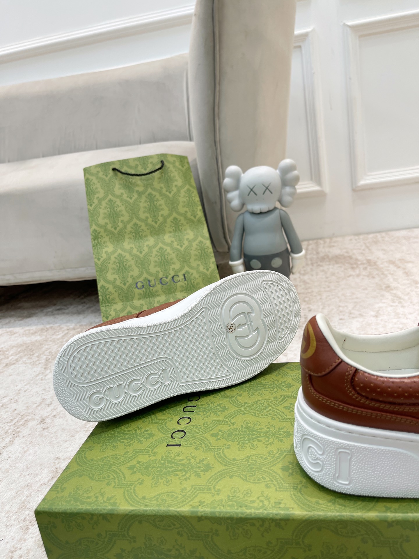 这款鞋子是AAAAA 1:1 质量 (非常棒). 使用了和原版一模一样的材料. 商标部分也保持了和古奇/Gucci一样. 图片拍摄是实物鞋子拍摄, 您所收到的实物保证和我们图片一模一样.