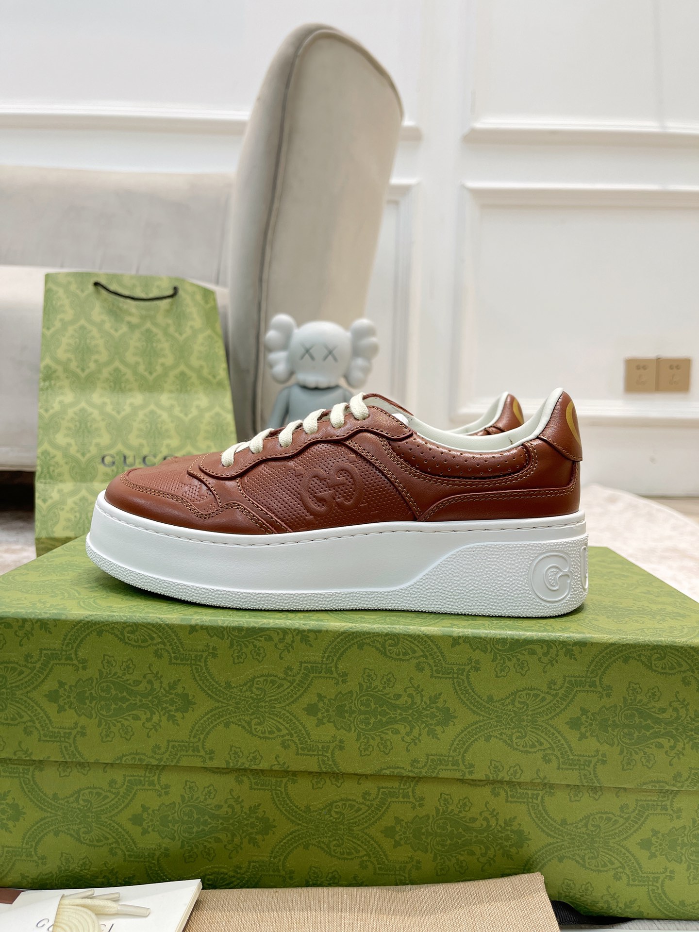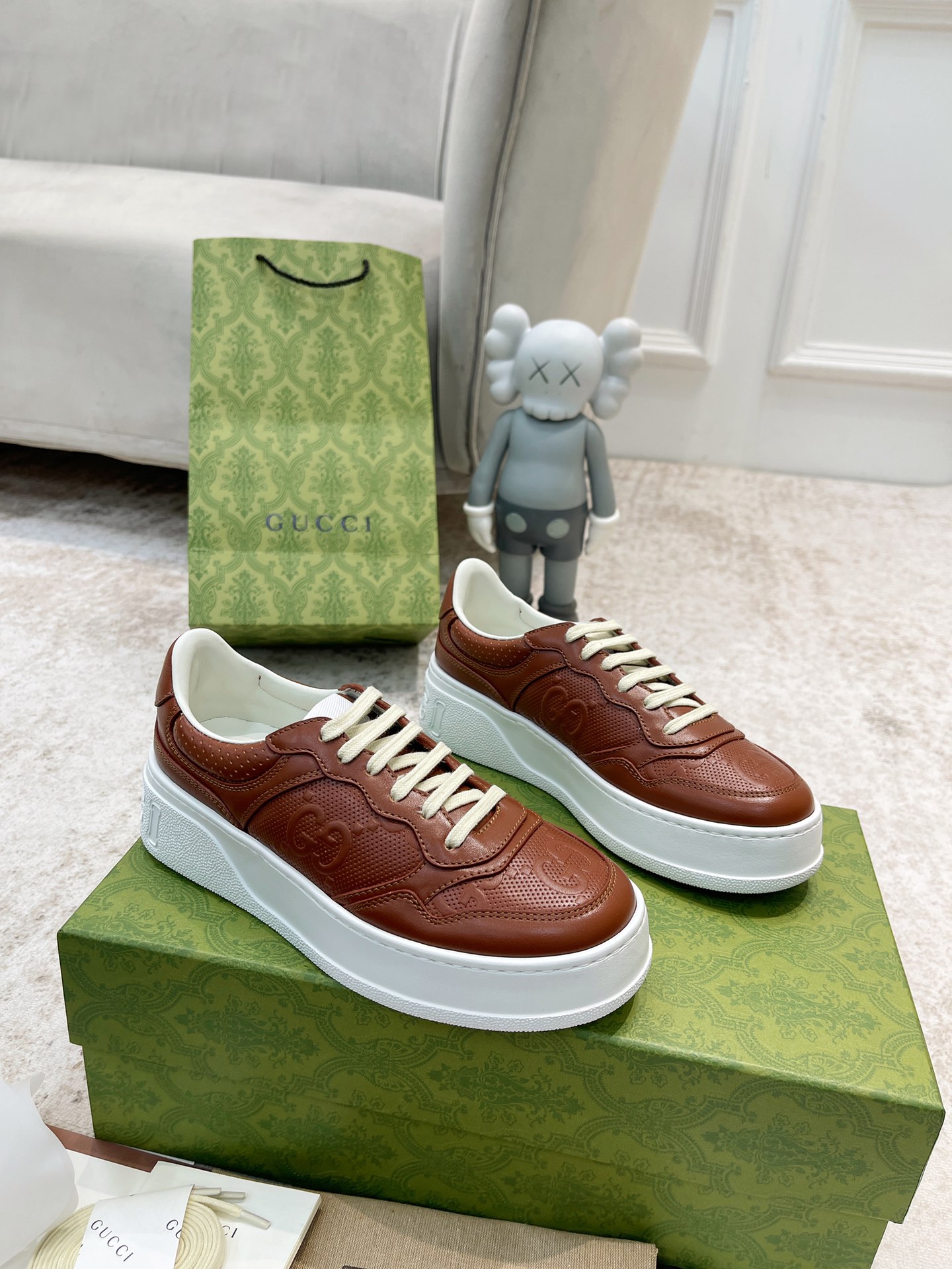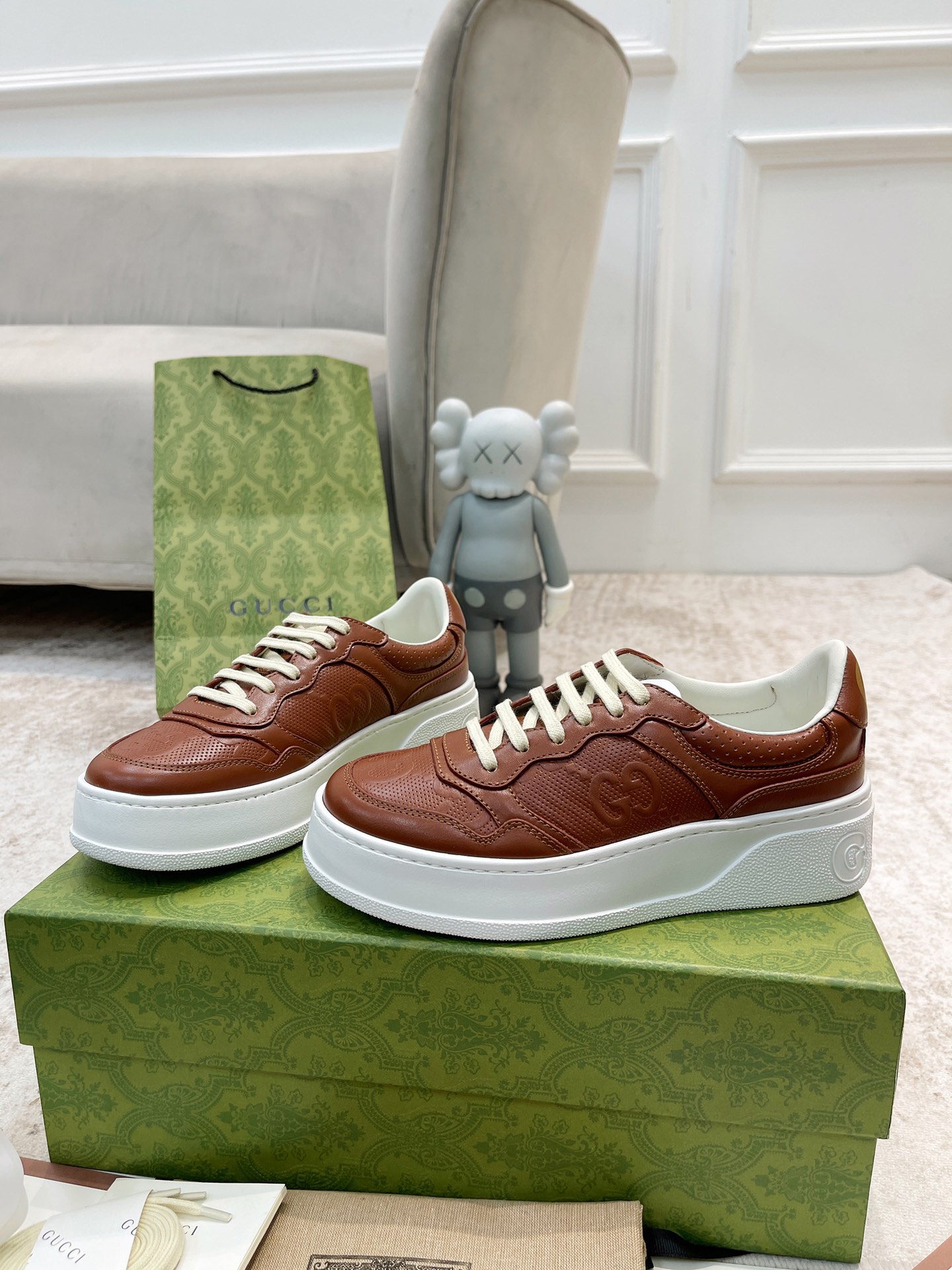 这款鞋子是AAAAA 1:1 质量 (非常棒). 使用了和原版一模一样的材料. 商标部分也保持了和古奇/Gucci一样. 图片拍摄是实物鞋子拍摄, 您所收到的实物保证和我们图片一模一样.