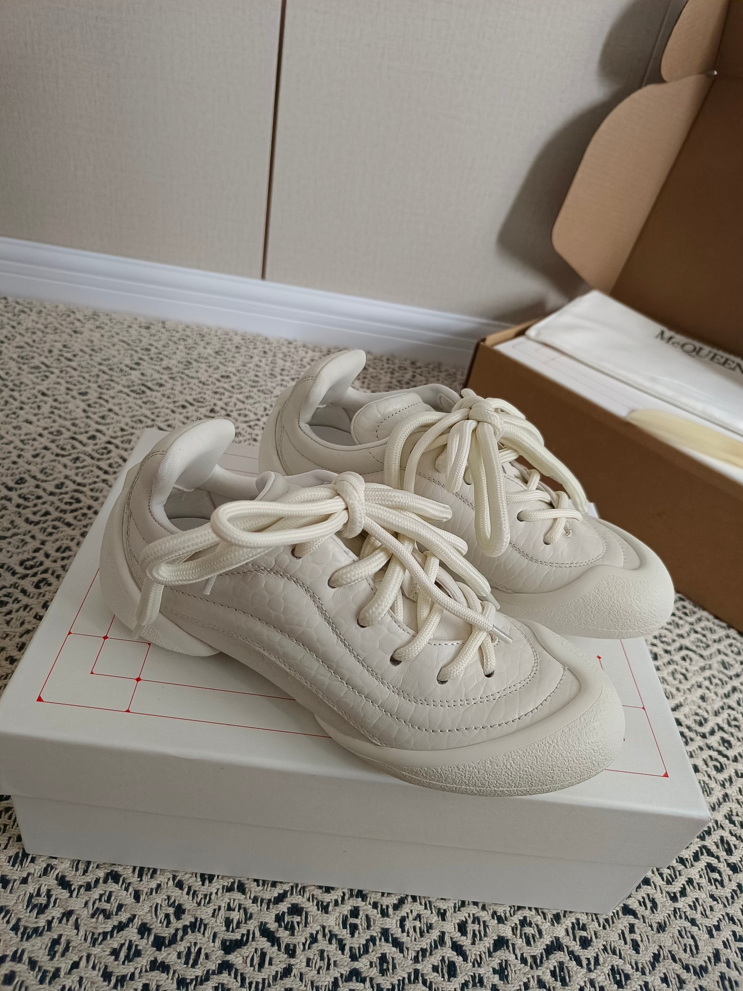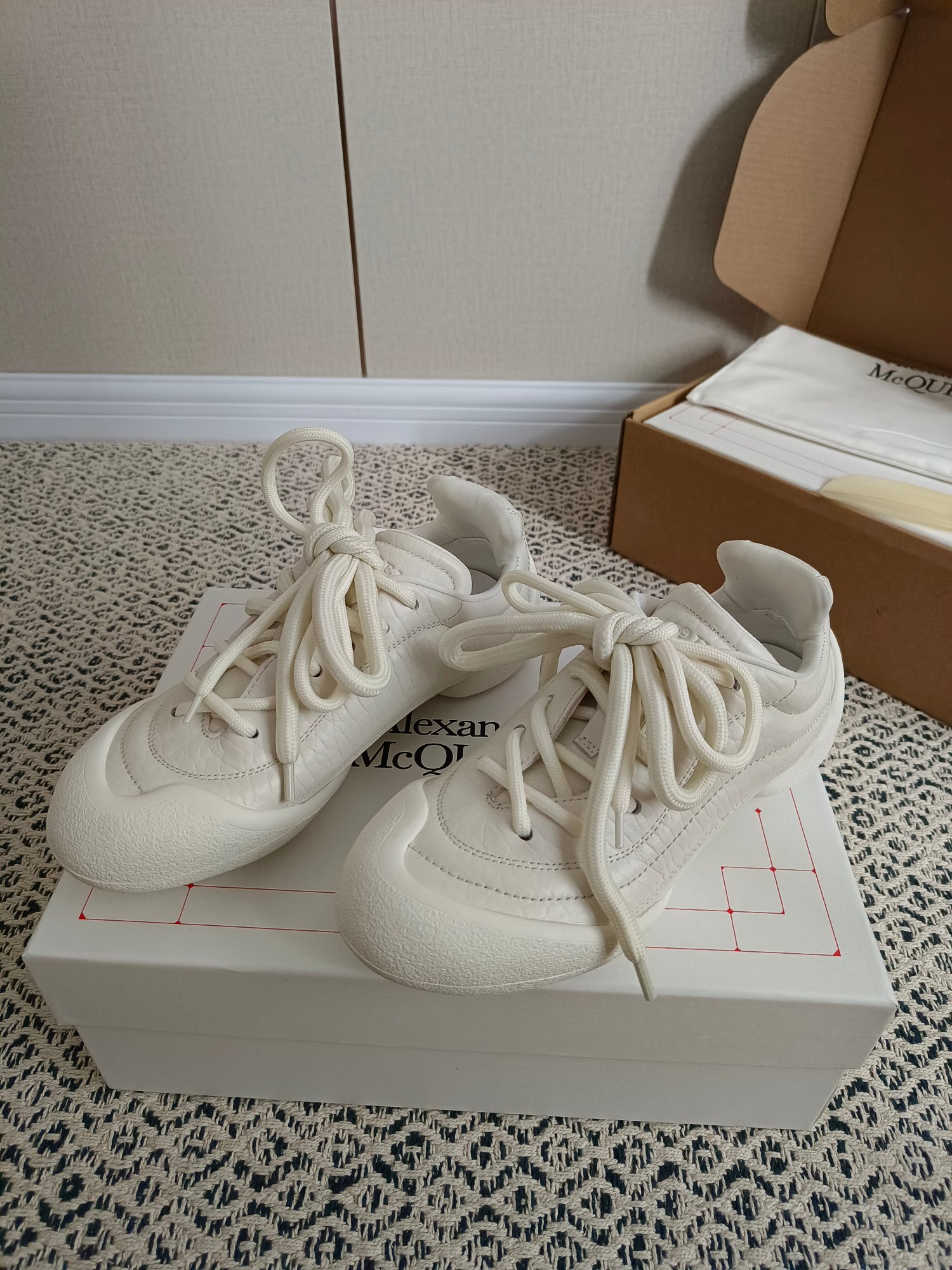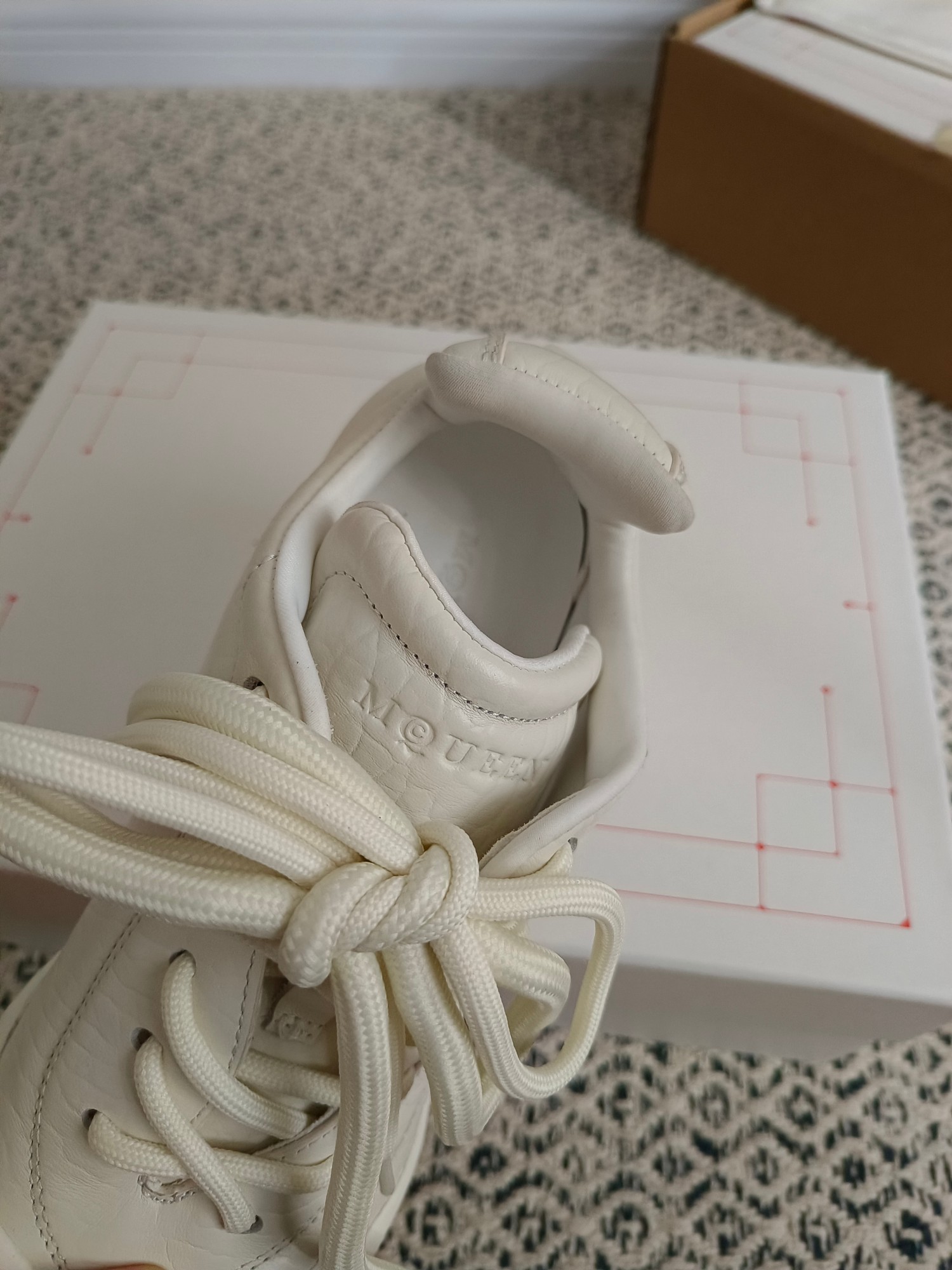 这款鞋子是AAAAA 1:1 质量 (非常棒). 使用了和原版一模一样的材料. 商标部分也保持了和亚历山大·麦昆/McQueen一样. 图片拍摄是实物鞋子拍摄, 您所收到的实物保证和我们图片一模一样.