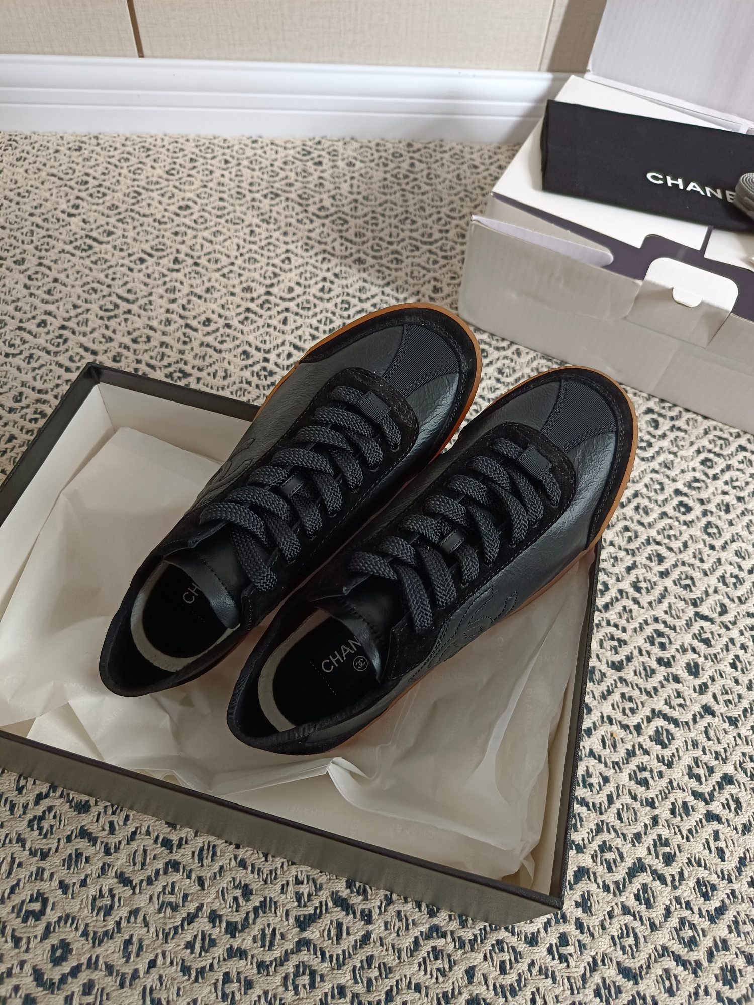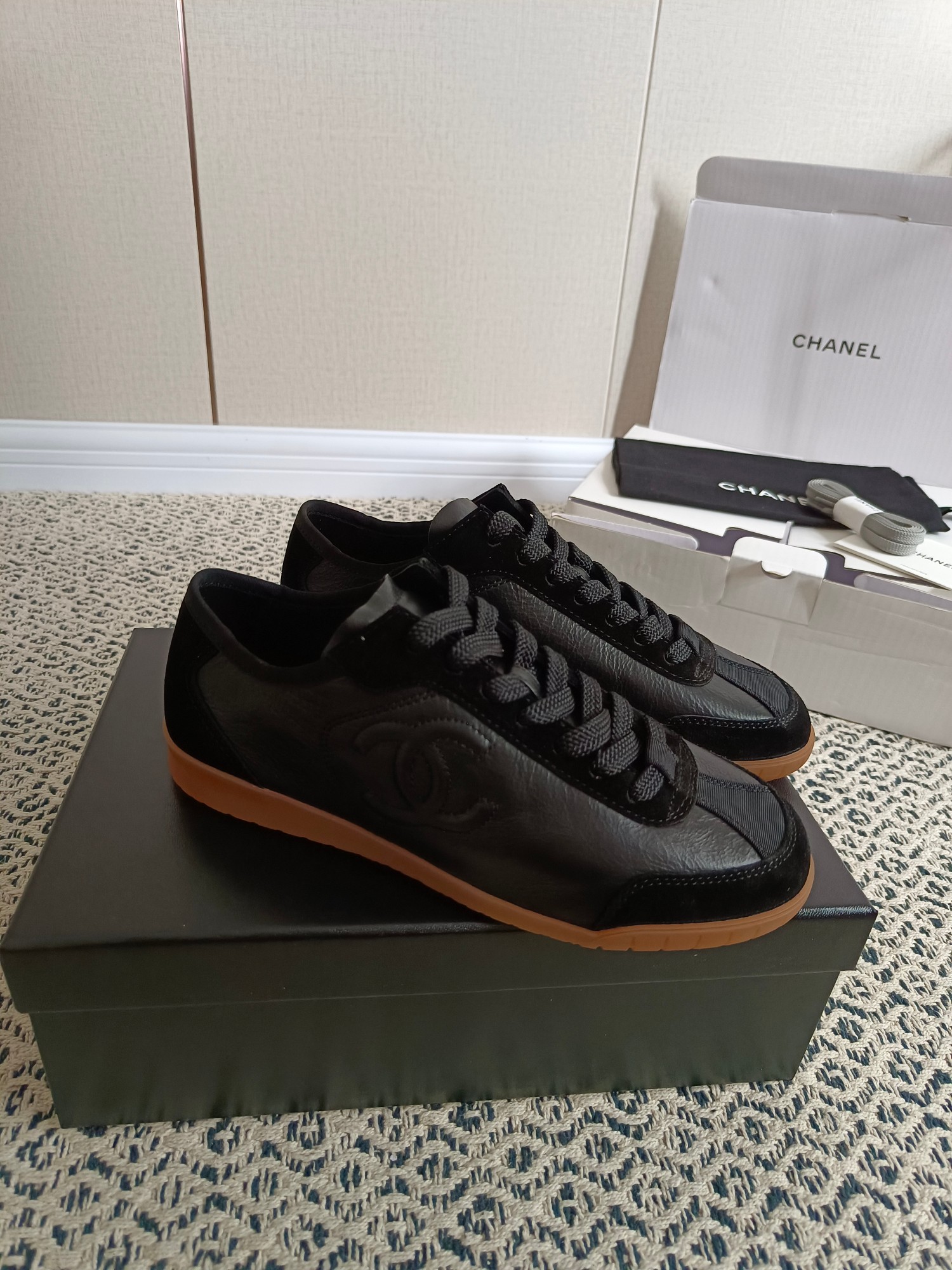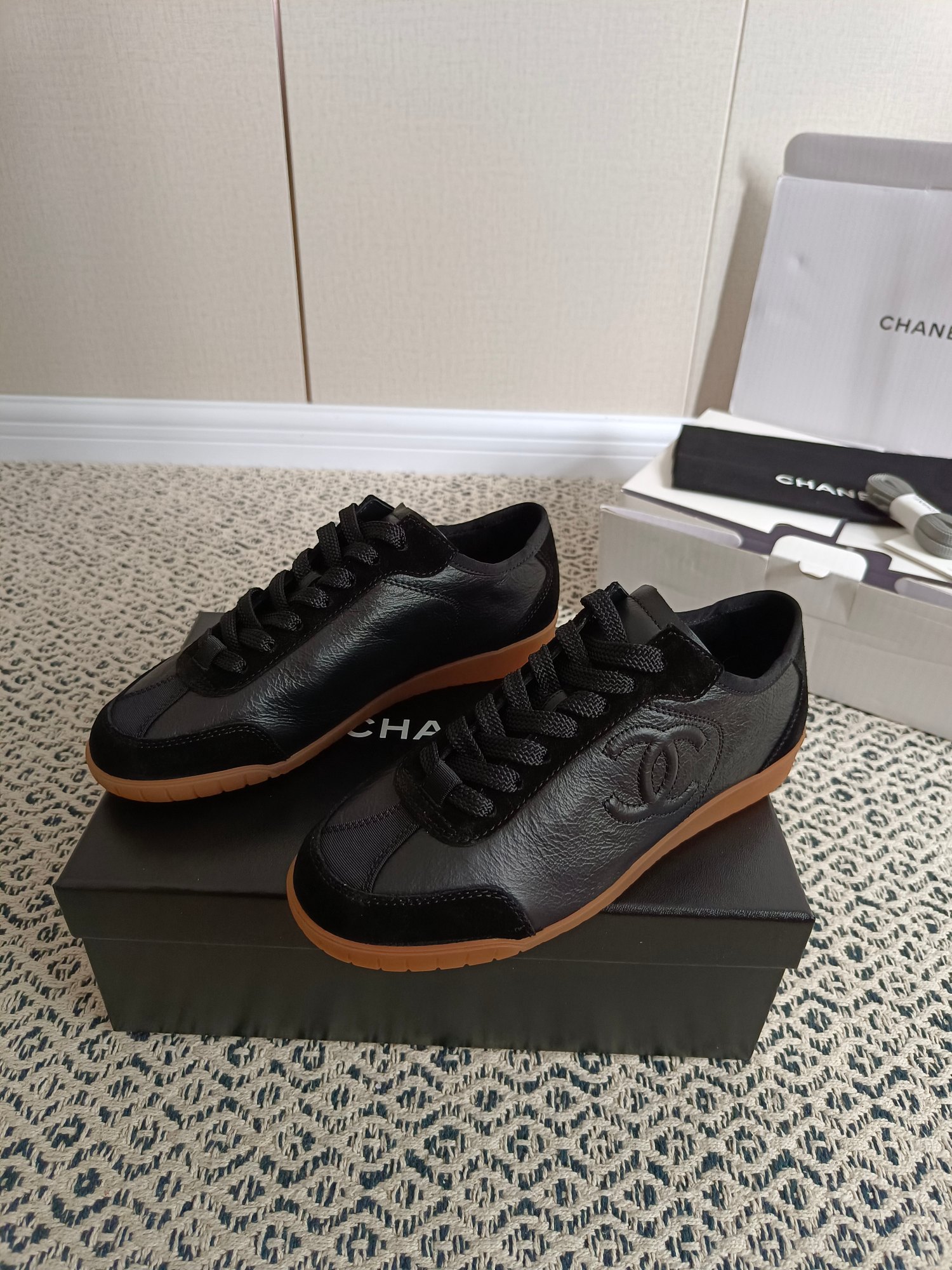 这款鞋子是AAAAA 1:1 质量 (非常棒). 使用了和原版一模一样的材料. 商标部分也保持了和香奈儿/Chanel一样. 图片拍摄是实物鞋子拍摄, 您所收到的实物保证和我们图片一模一样.