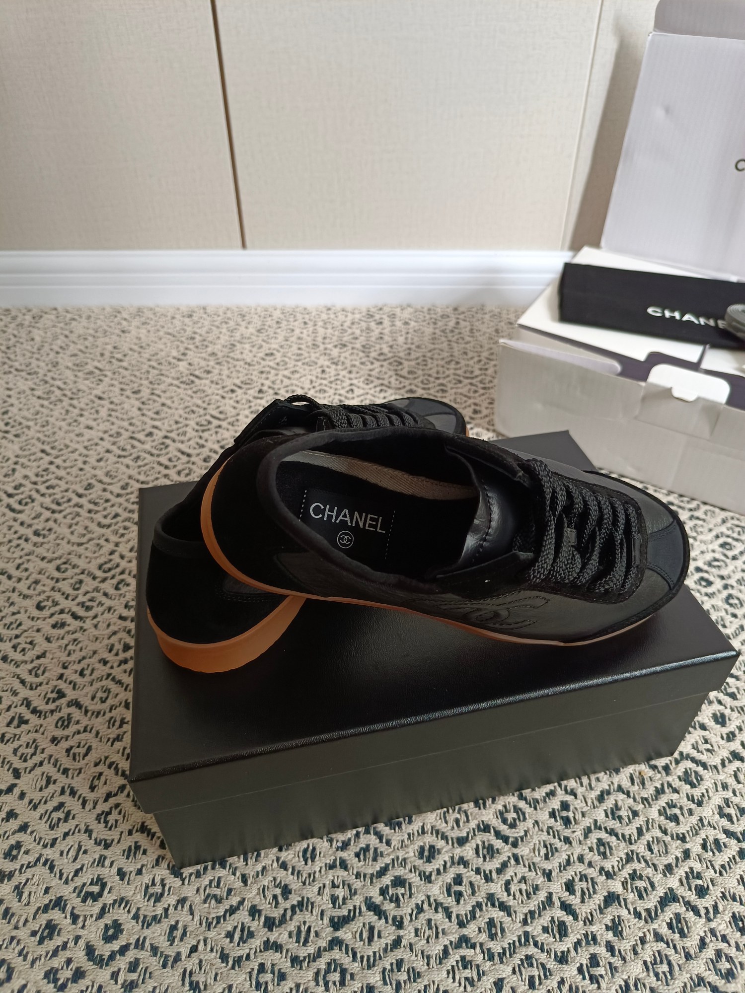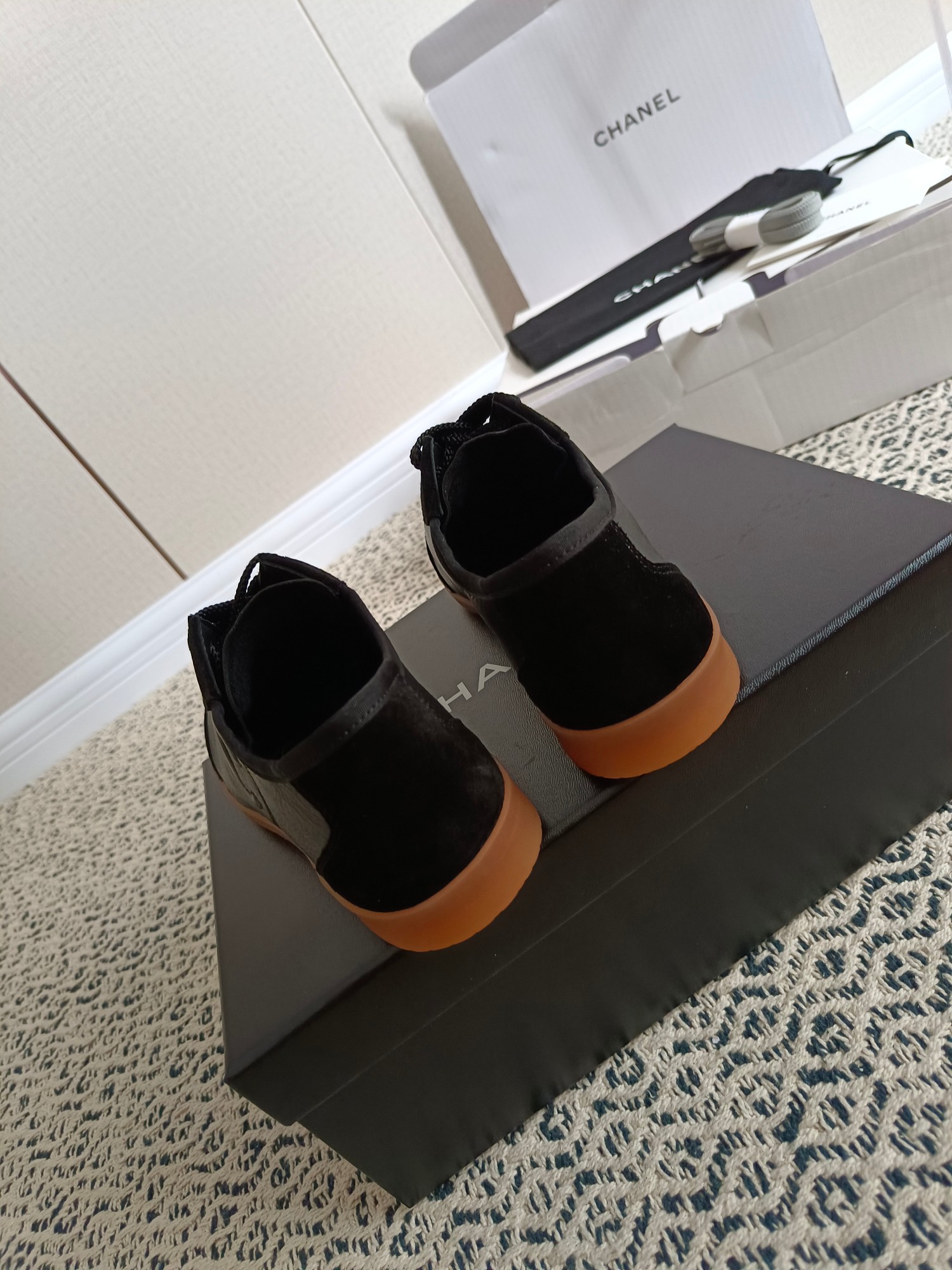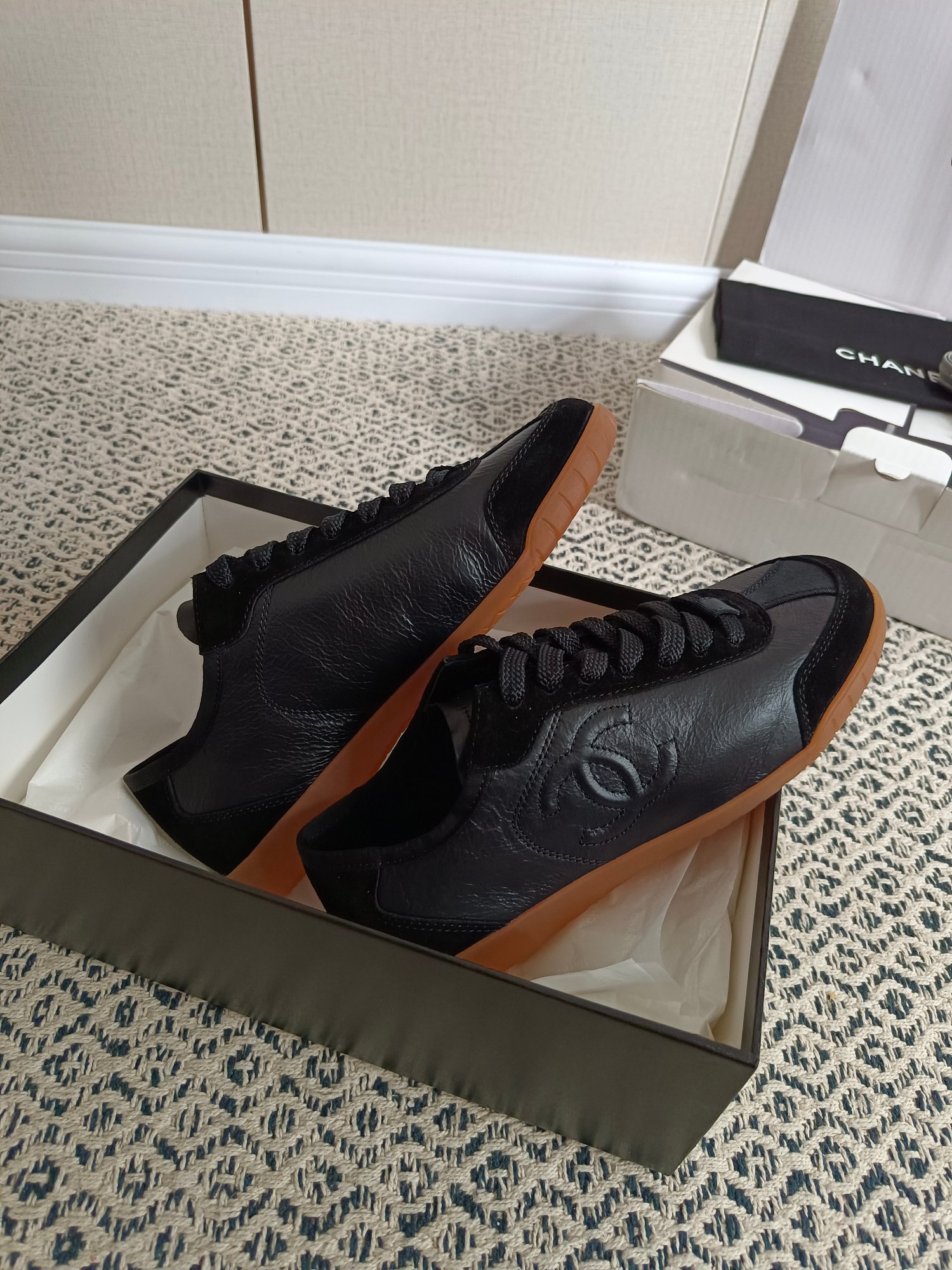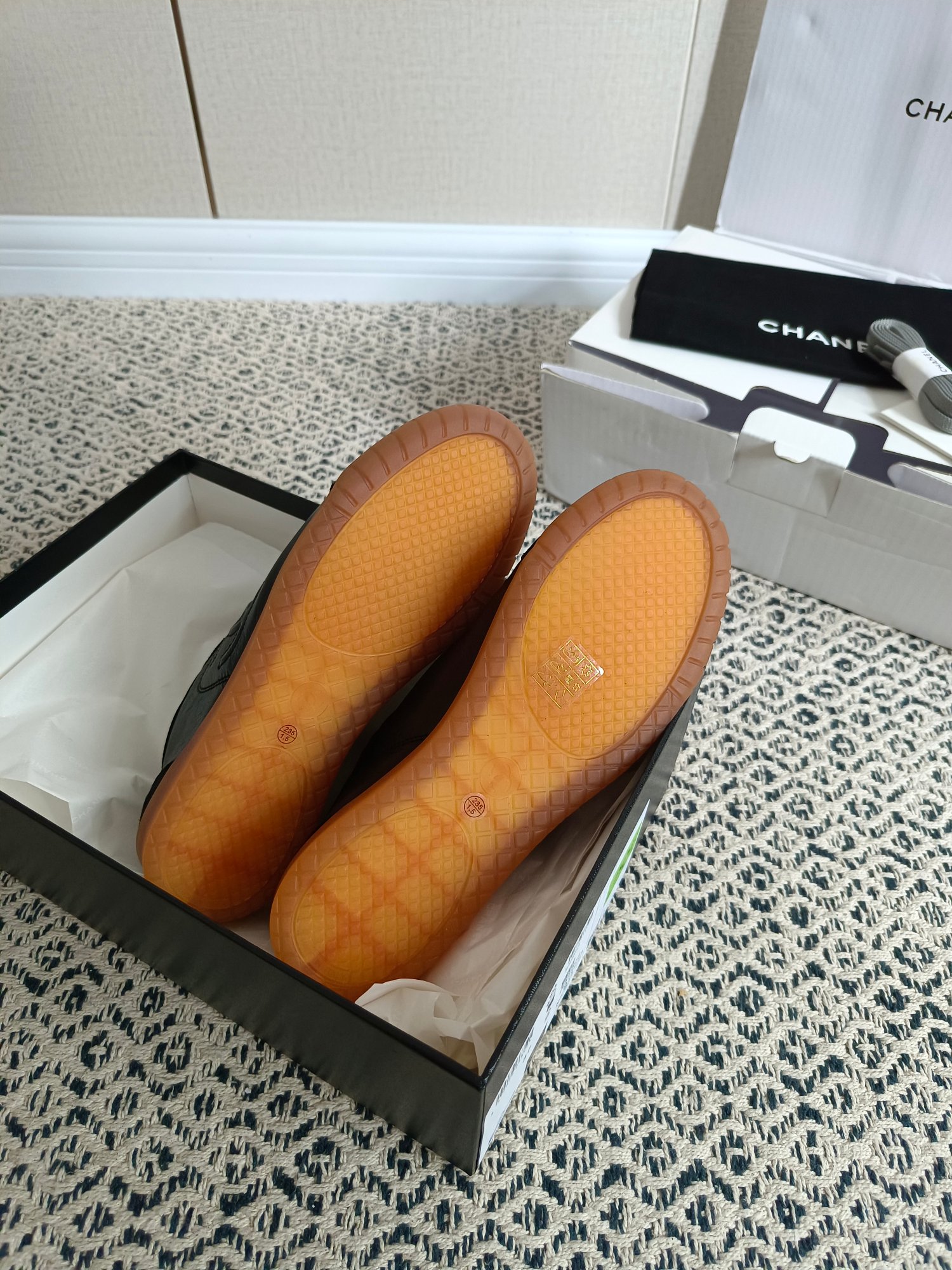 这款鞋子是AAAAA 1:1 质量 (非常棒). 使用了和原版一模一样的材料. 商标部分也保持了和香奈儿/Chanel一样. 图片拍摄是实物鞋子拍摄, 您所收到的实物保证和我们图片一模一样.