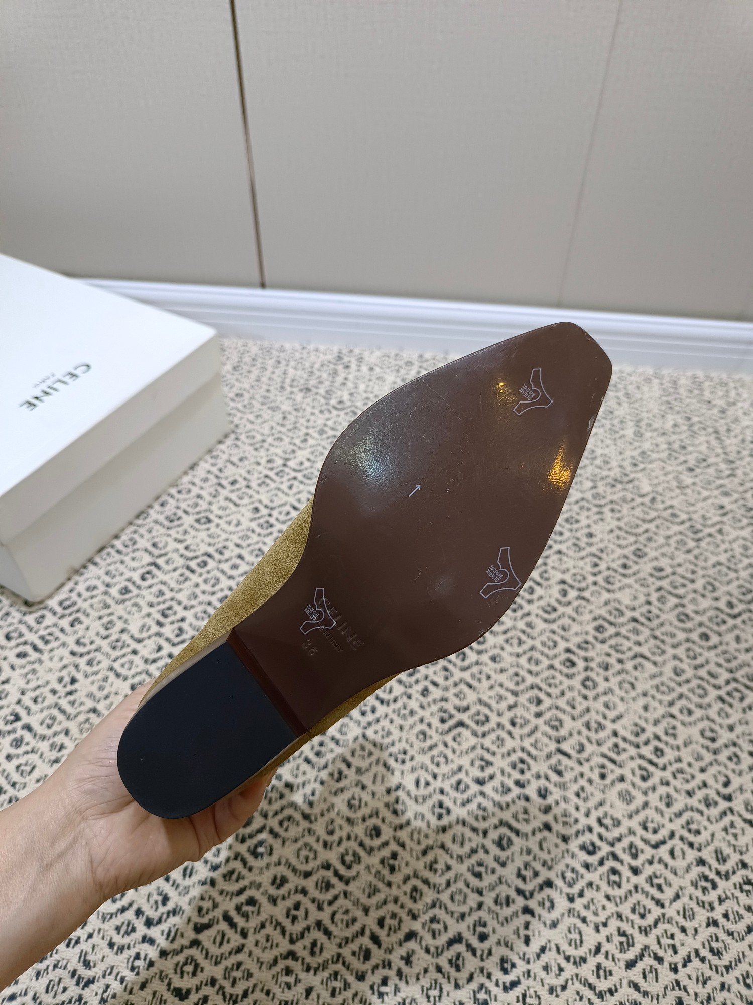 这款鞋子是AAAAA 1:1 质量 (非常棒). 使用了和原版一模一样的材料. 商标部分也保持了和思琳/Celine一样. 图片拍摄是实物鞋子拍摄, 您所收到的实物保证和我们图片一模一样.