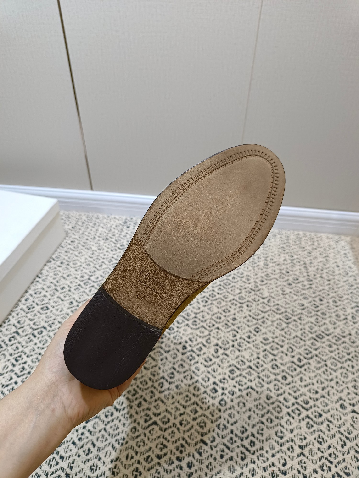 这款鞋子是AAAAA 1:1 质量 (非常棒). 使用了和原版一模一样的材料. 商标部分也保持了和思琳/Celine一样. 图片拍摄是实物鞋子拍摄, 您所收到的实物保证和我们图片一模一样.