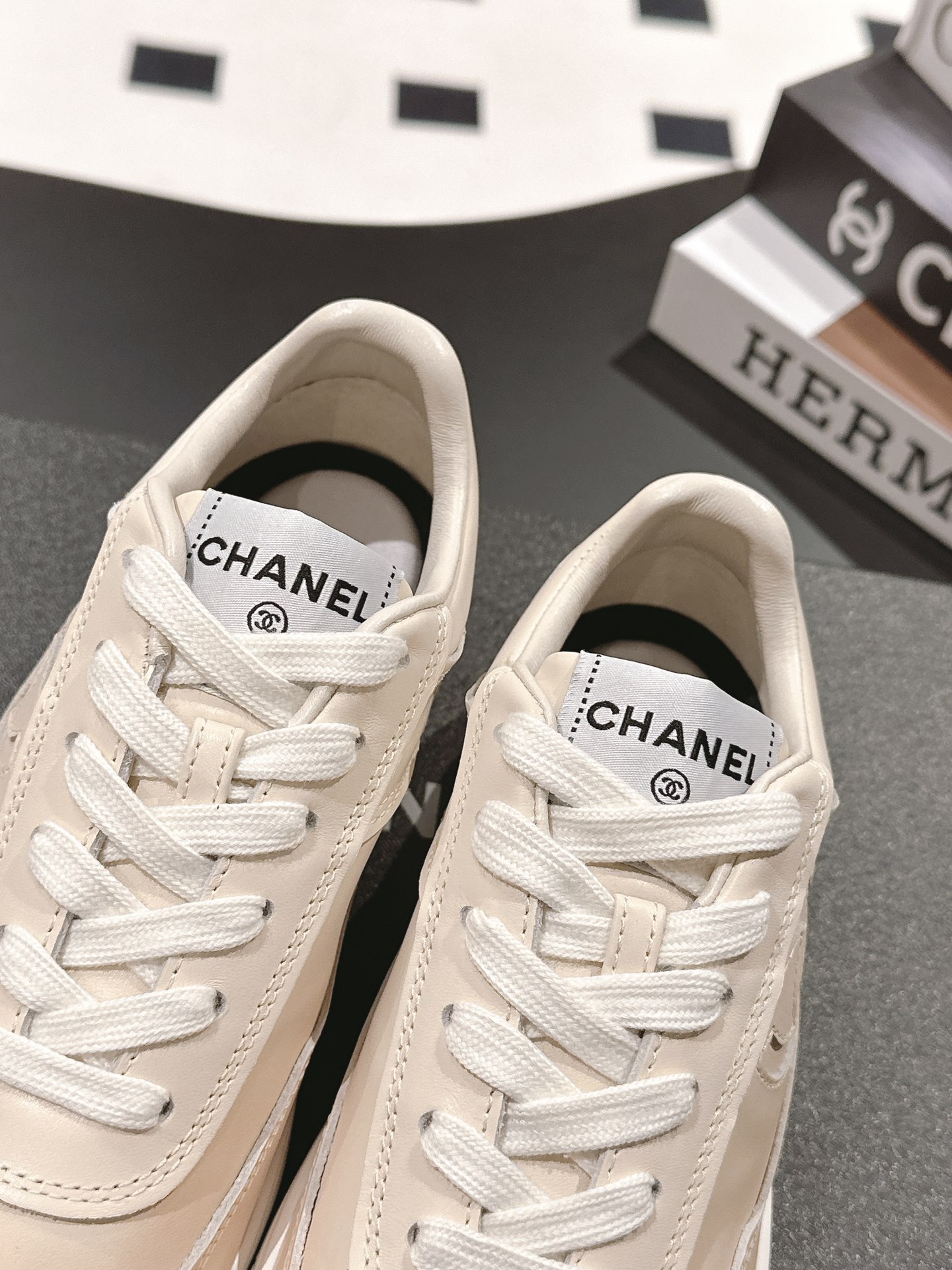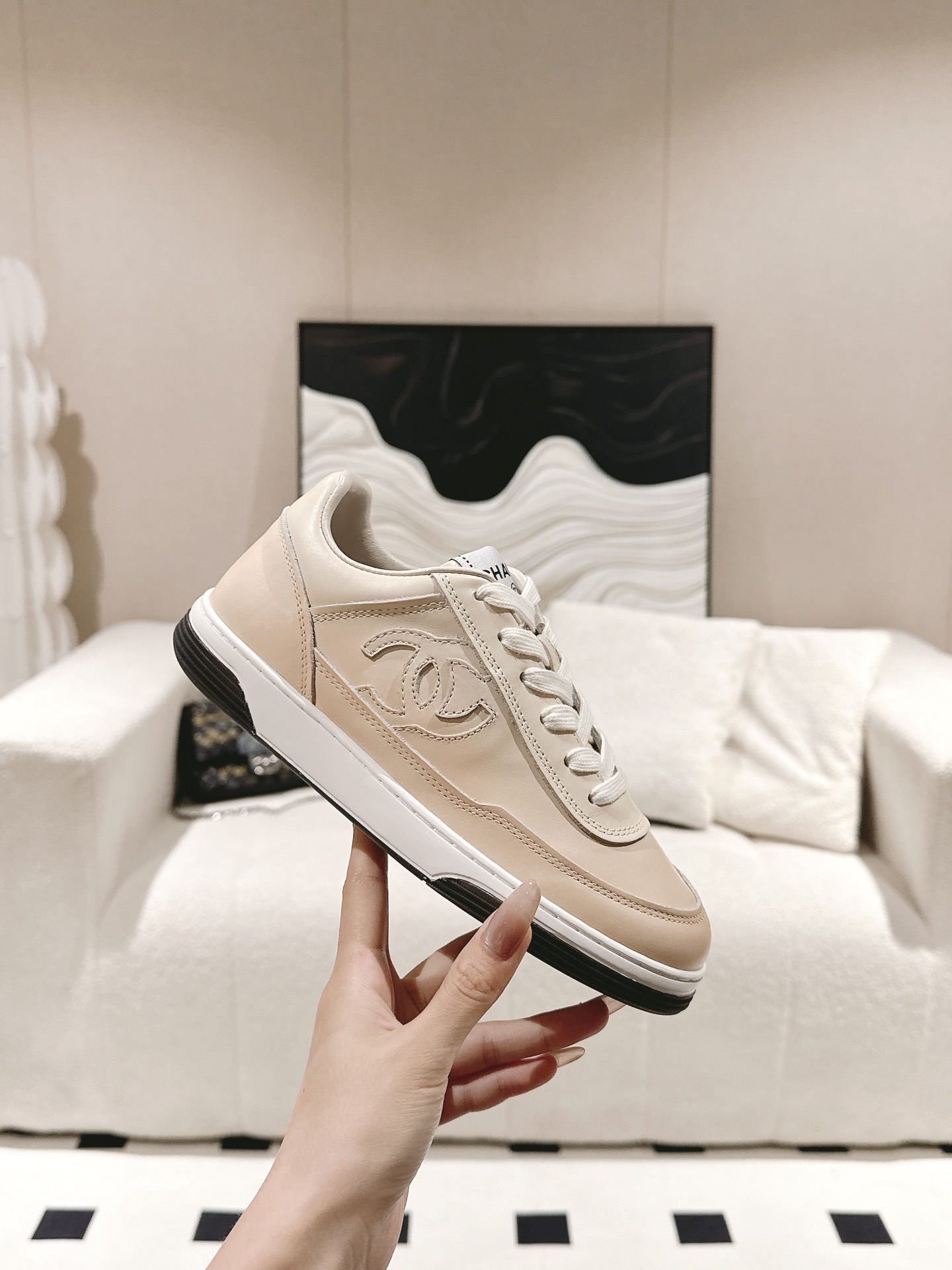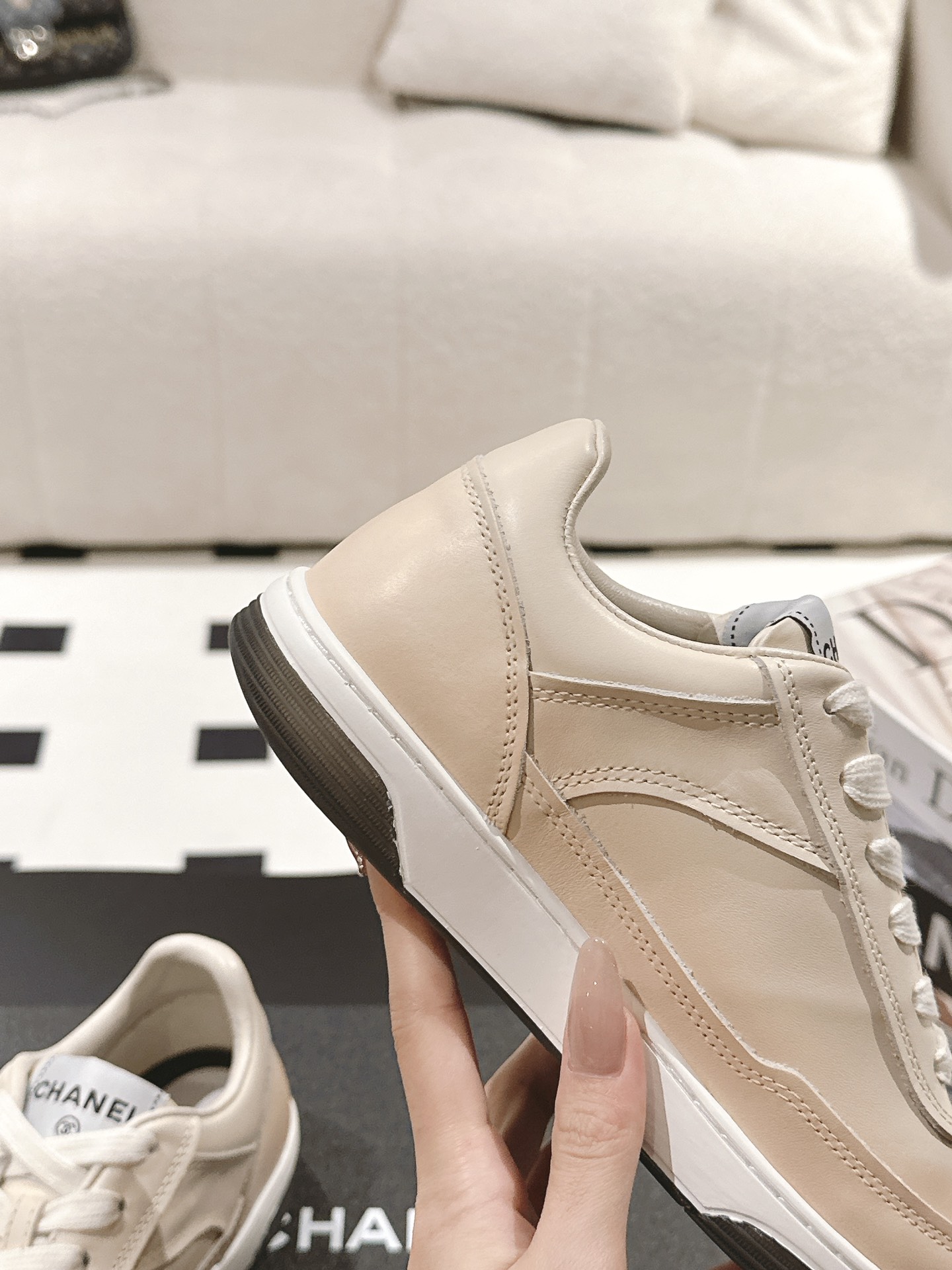 这款鞋子是AAAAA 1:1 质量 (非常棒). 使用了和原版一模一样的材料. 商标部分也保持了和香奈儿/Chanel一样. 图片拍摄是实物鞋子拍摄, 您所收到的实物保证和我们图片一模一样.