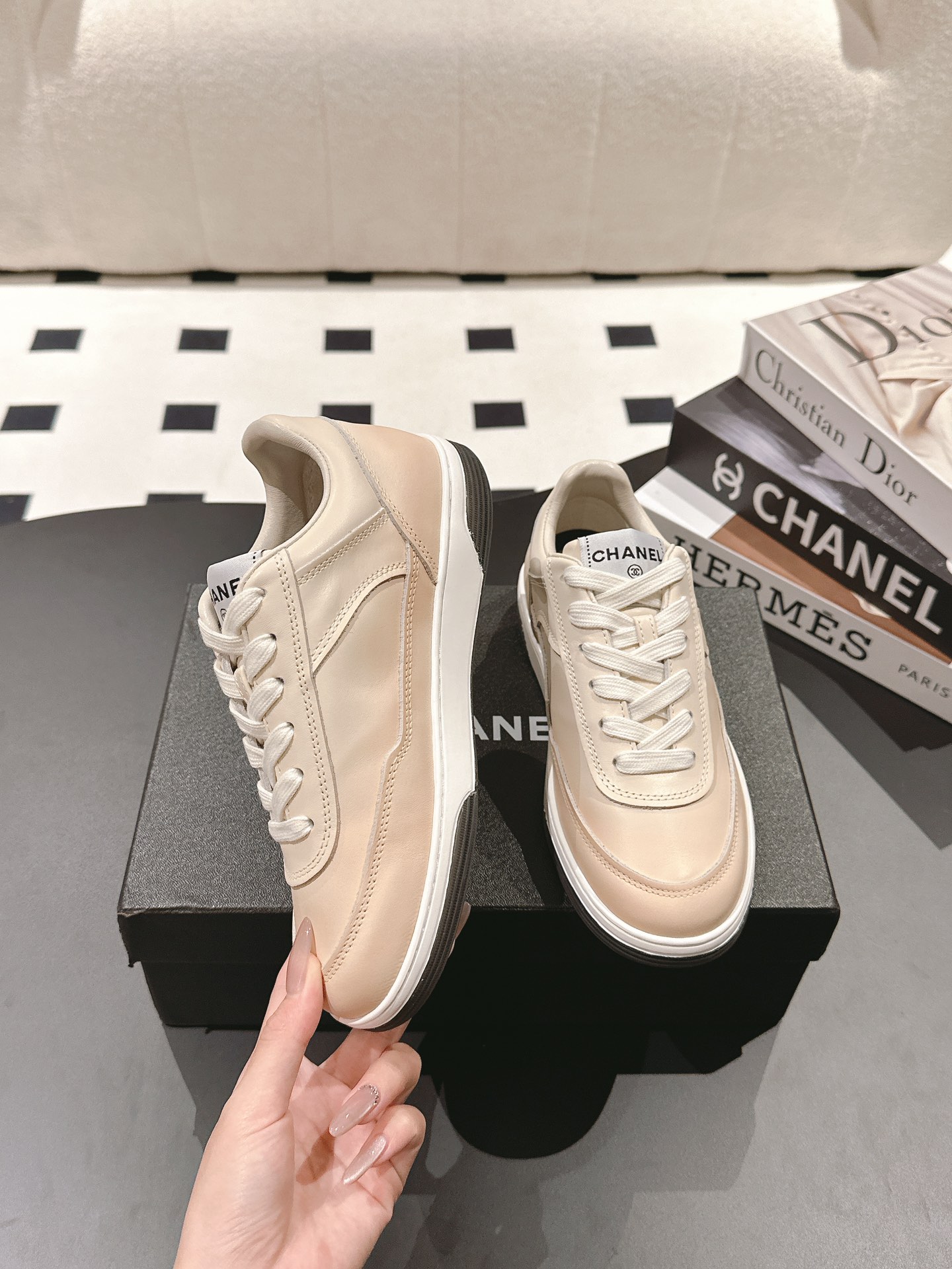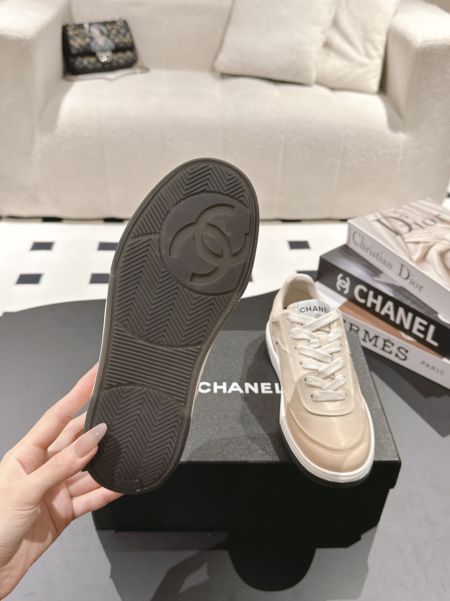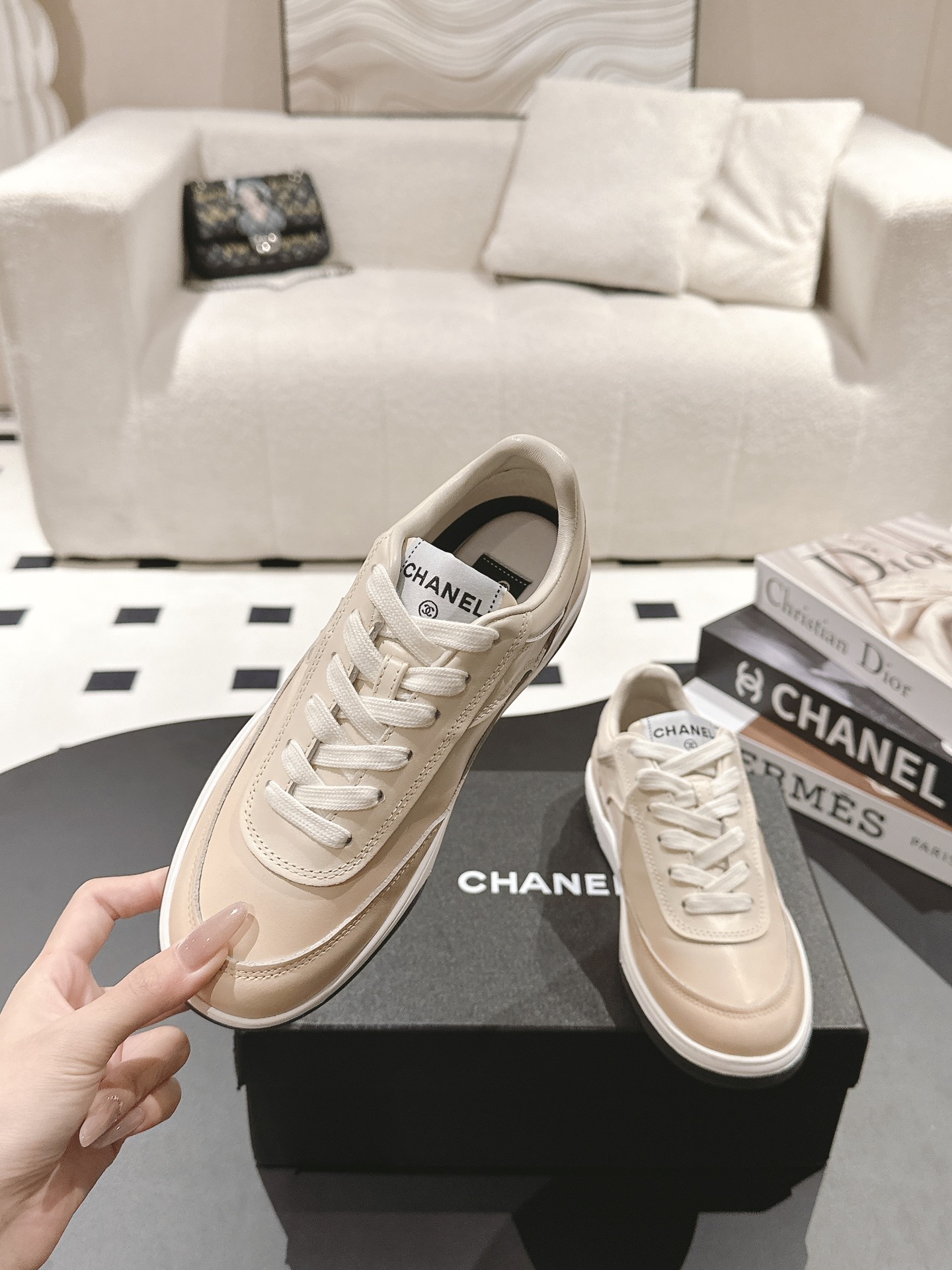 这款鞋子是AAAAA 1:1 质量 (非常棒). 使用了和原版一模一样的材料. 商标部分也保持了和香奈儿/Chanel一样. 图片拍摄是实物鞋子拍摄, 您所收到的实物保证和我们图片一模一样.