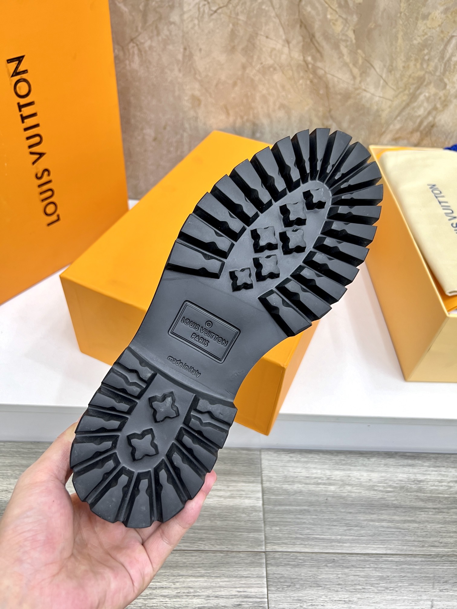 这款鞋子是AAAAA 1:1 质量 (非常棒). 使用了和原版一模一样的材料. 商标部分也保持了和路易威登/Louis Vuitton一样. 图片拍摄是实物鞋子拍摄, 您所收到的实物保证和我们图片一模一样.