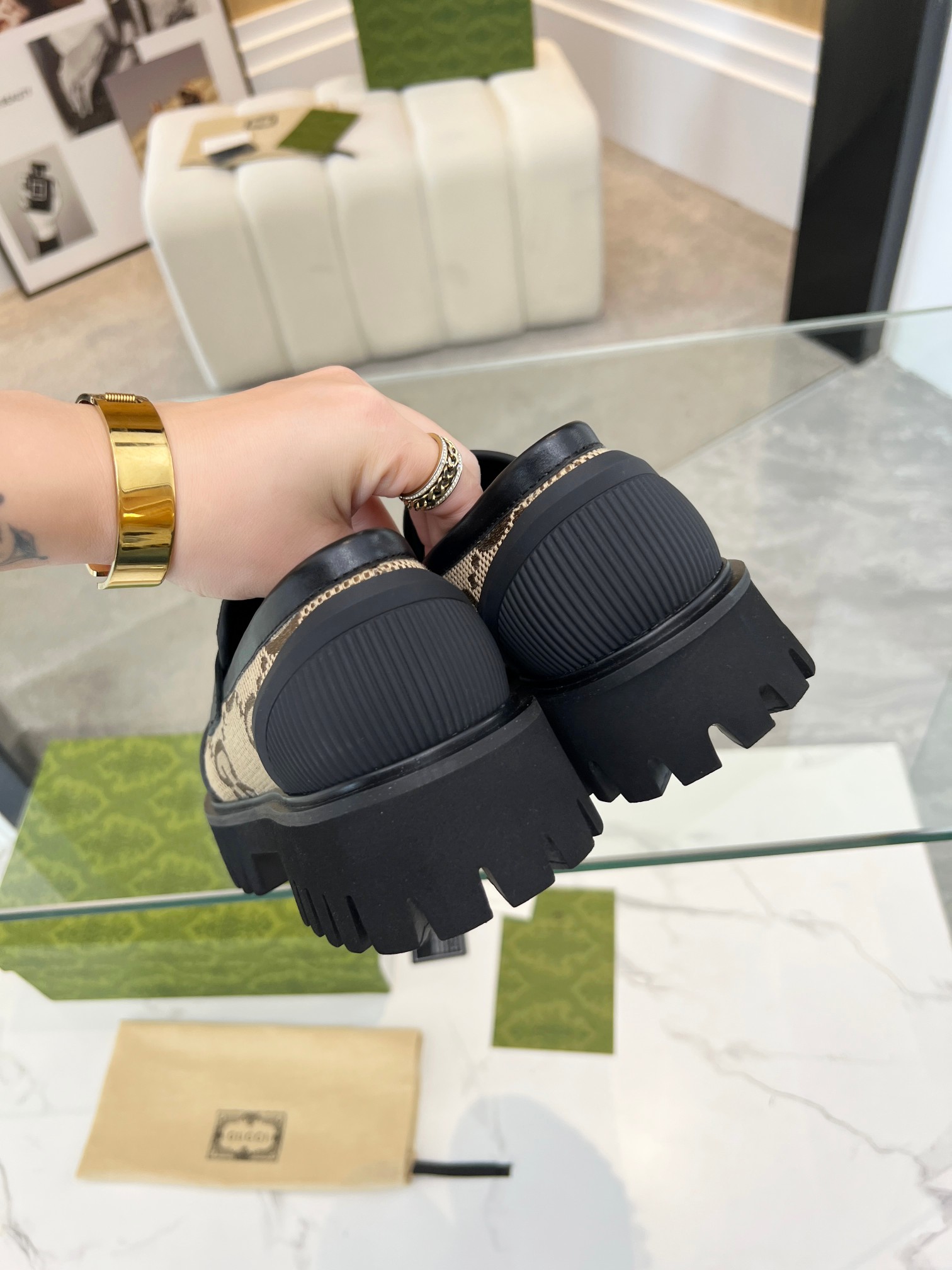 这款鞋子是AAAAA 1:1 质量 (非常棒). 使用了和原版一模一样的材料. 商标部分也保持了和古奇/Gucci一样. 图片拍摄是实物鞋子拍摄, 您所收到的实物保证和我们图片一模一样.