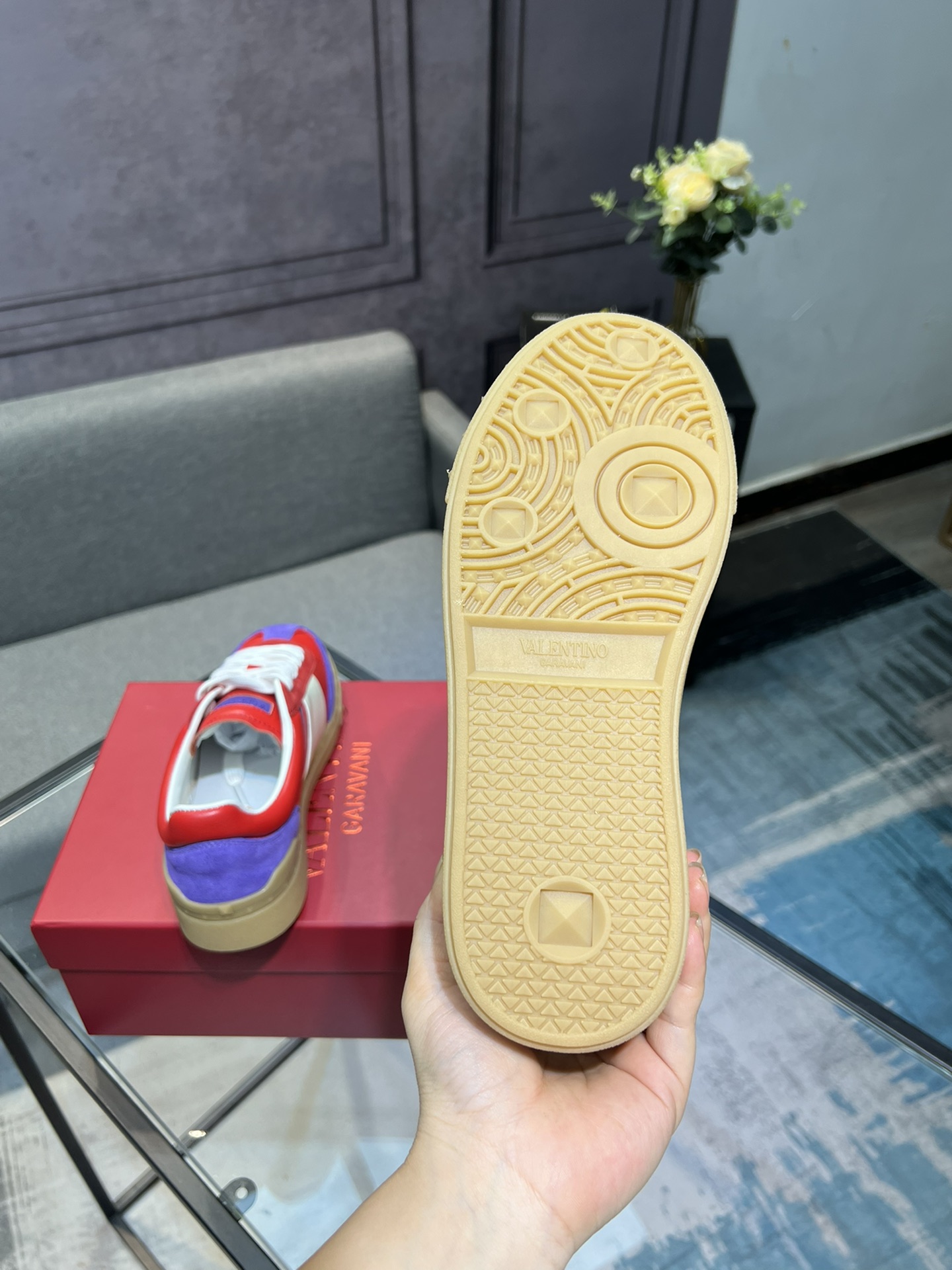 这款鞋子是AAAAA 1:1 质量 (非常棒). 使用了和原版一模一样的材料. 商标部分也保持了和范思哲/Versace一样. 图片拍摄是实物鞋子拍摄, 您所收到的实物保证和我们图片一模一样.