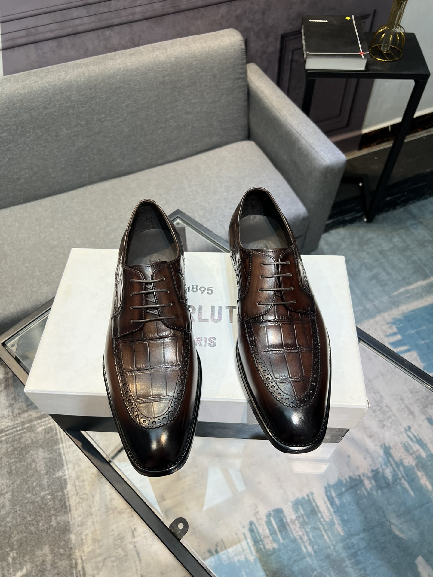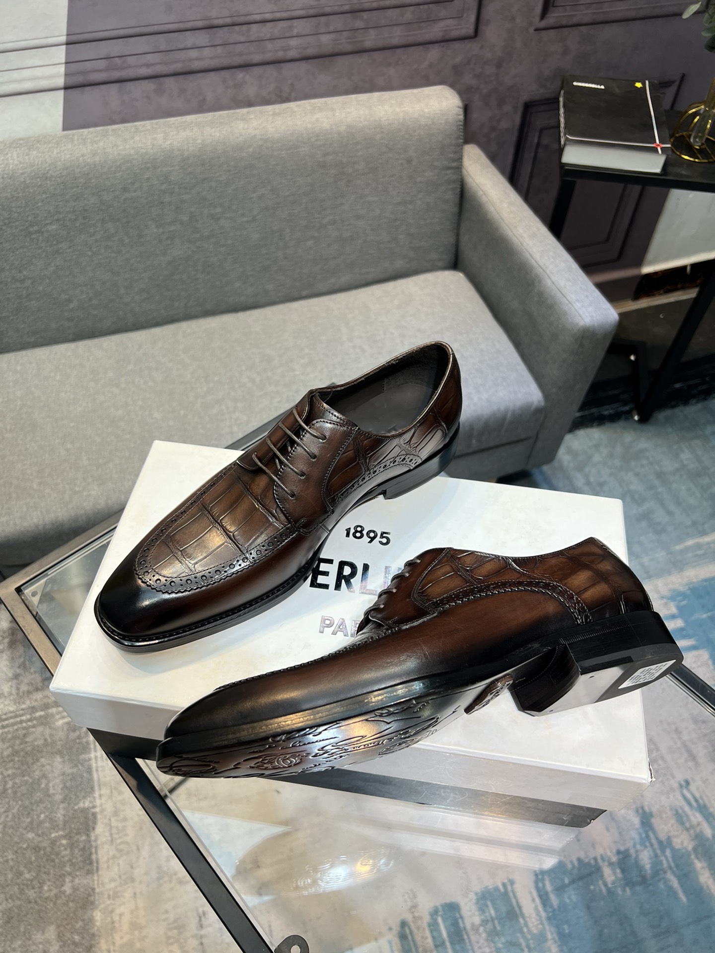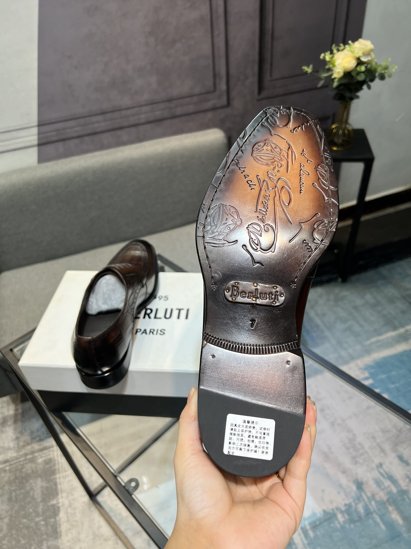 这款鞋子是AAAAA 1:1 质量 (非常棒). 使用了和原版一模一样的材料. 商标部分也保持了和Berluti一样. 图片拍摄是实物鞋子拍摄, 您所收到的实物保证和我们图片一模一样.