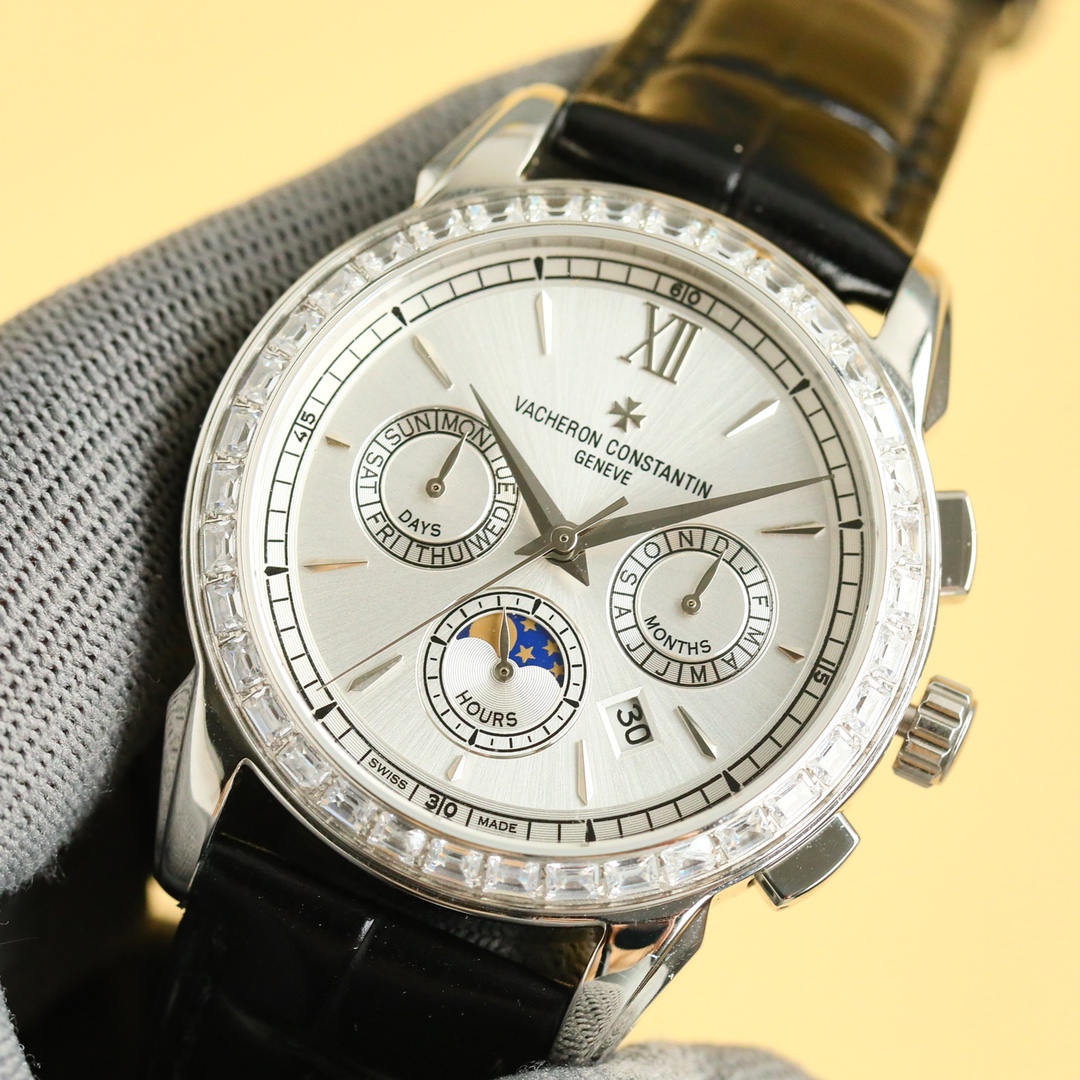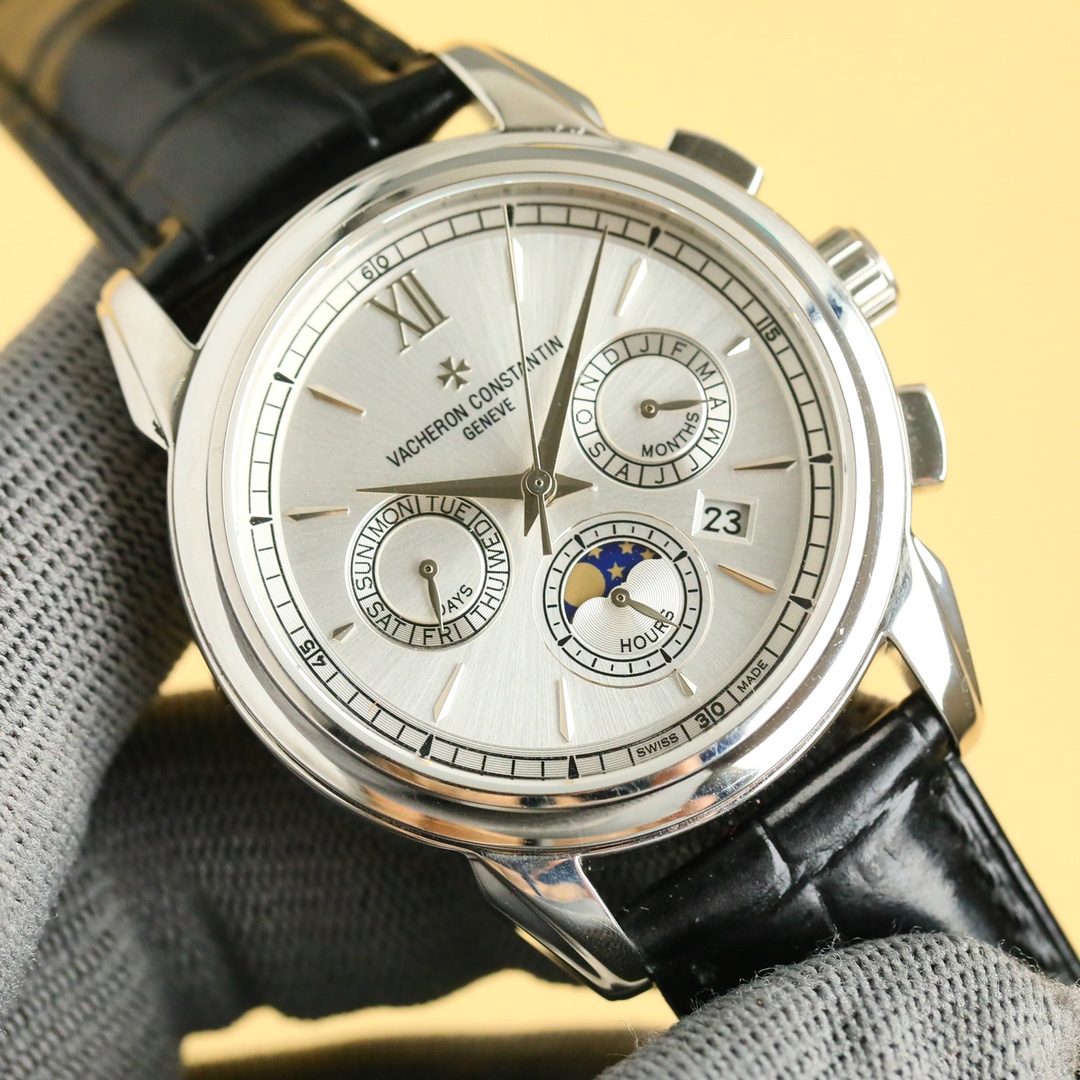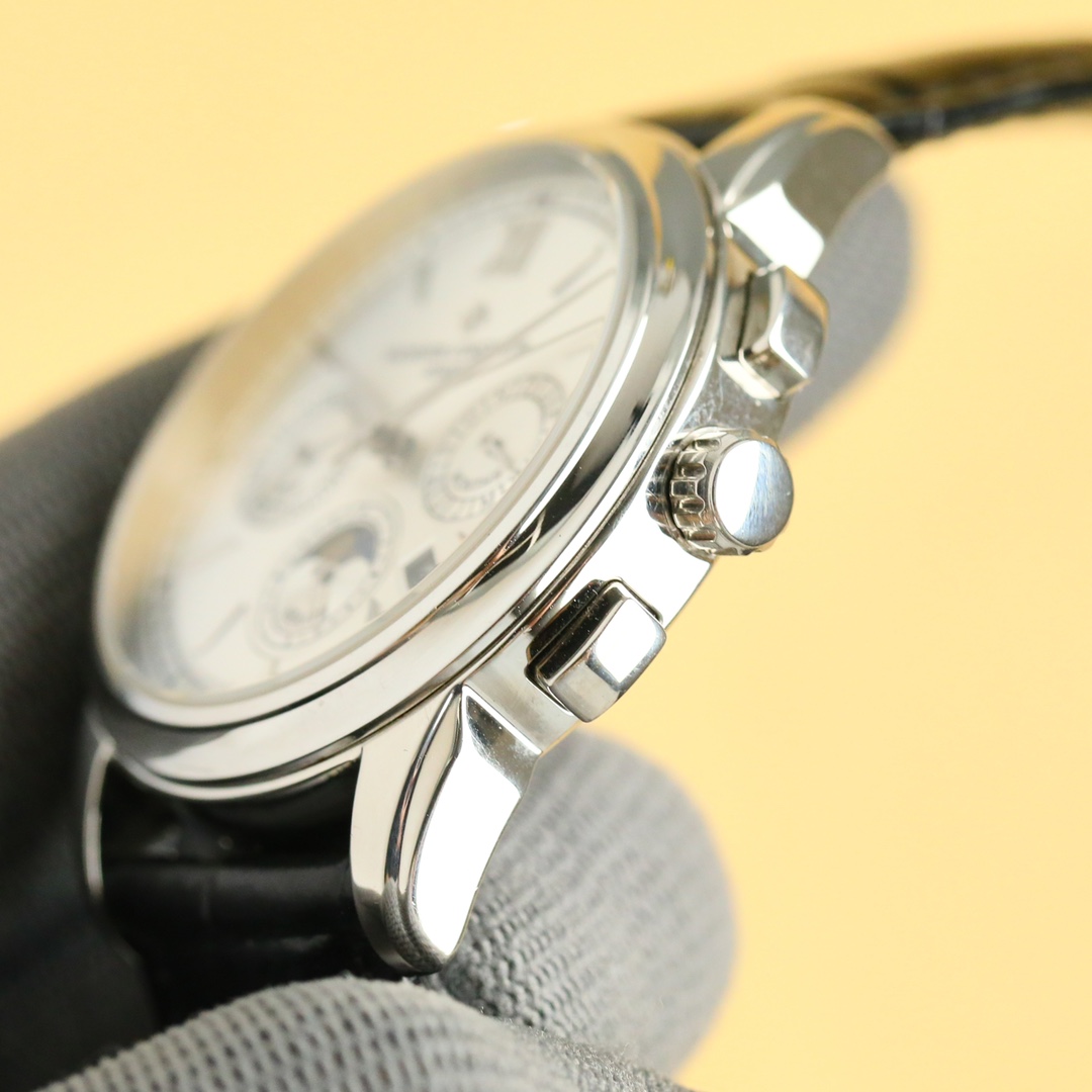 这款手表是AAAAA 1:1 质量 (非常棒). 使用了和原版一模一样的材料. 商标部分也保持了和江诗丹顿/Vacheron Constantin一样. 图片拍摄是实物手表拍摄, 您所收到的实物保证和我们图片一模一样.