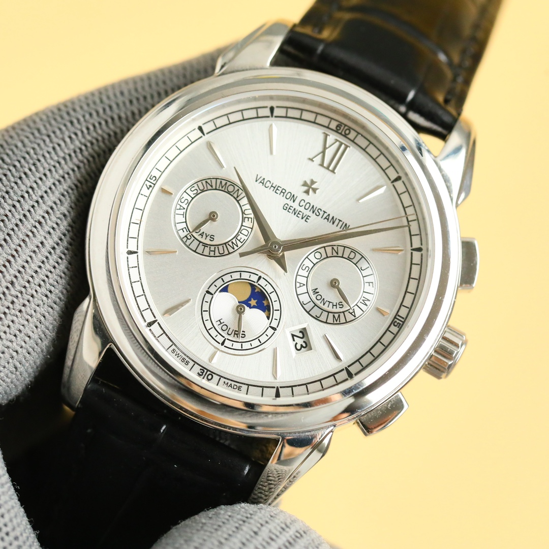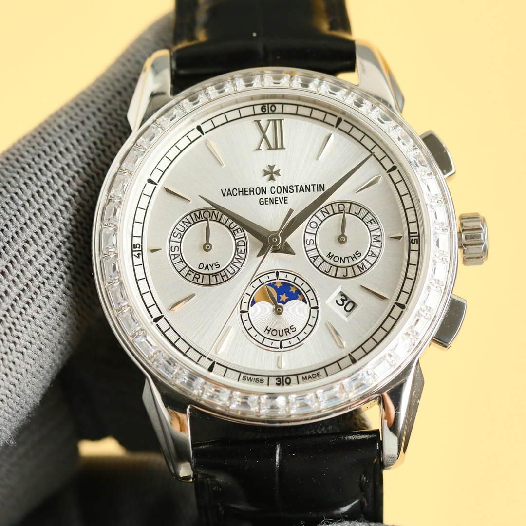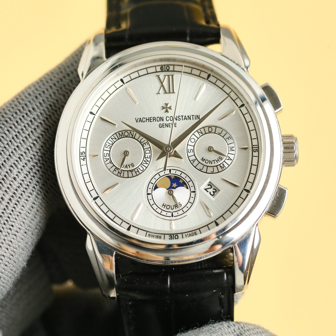 这款手表是AAAAA 1:1 质量 (非常棒). 使用了和原版一模一样的材料. 商标部分也保持了和江诗丹顿/Vacheron Constantin一样. 图片拍摄是实物手表拍摄, 您所收到的实物保证和我们图片一模一样.