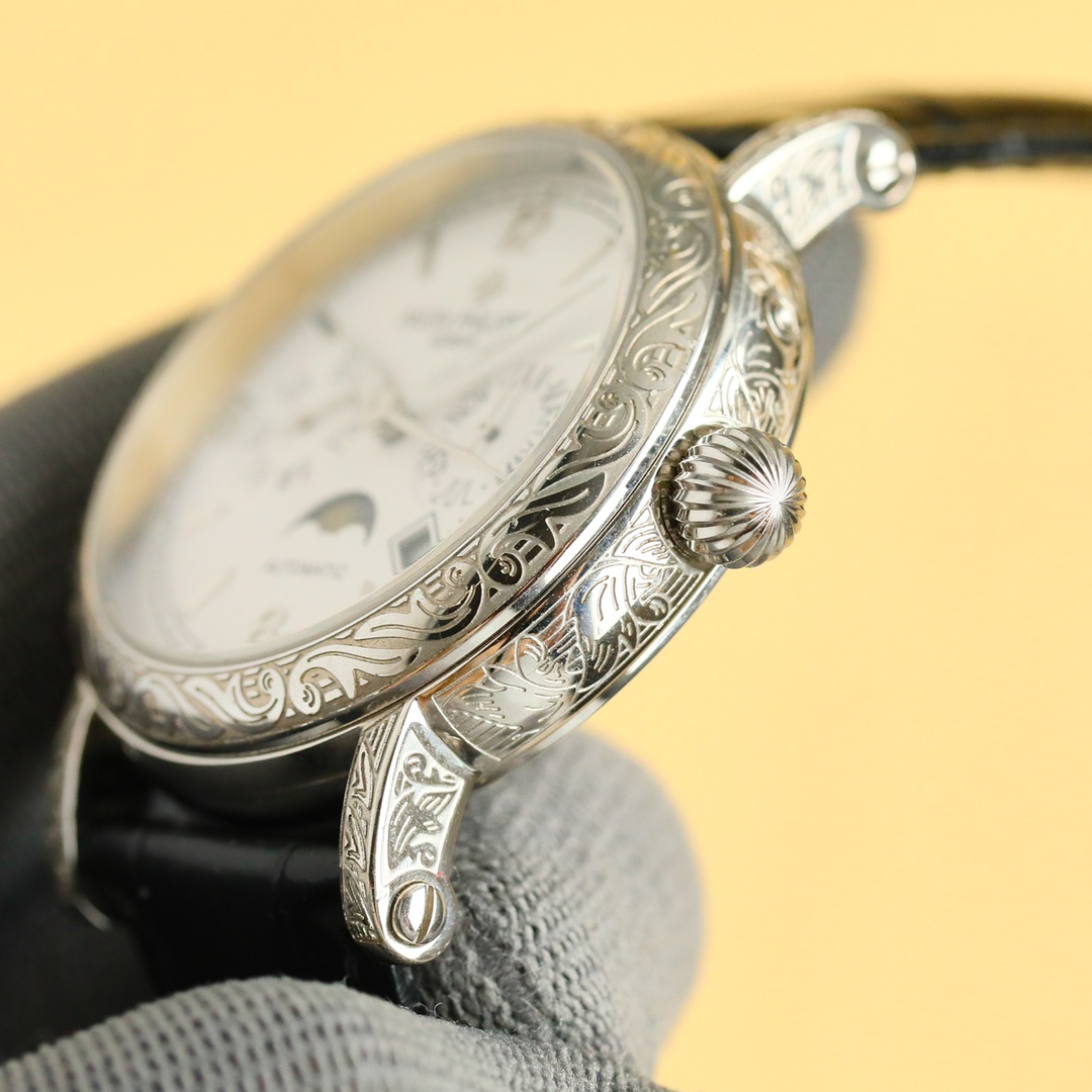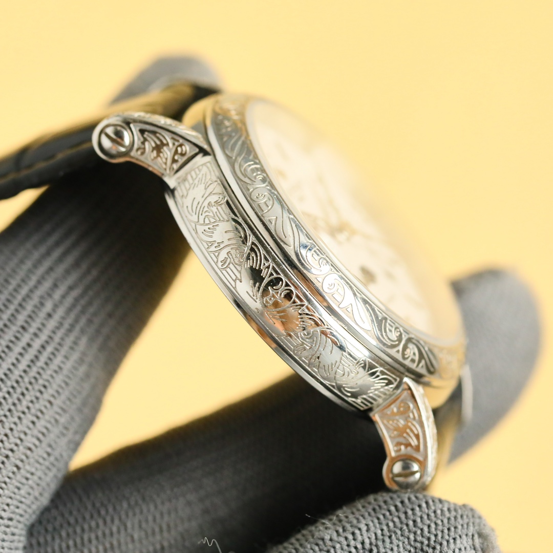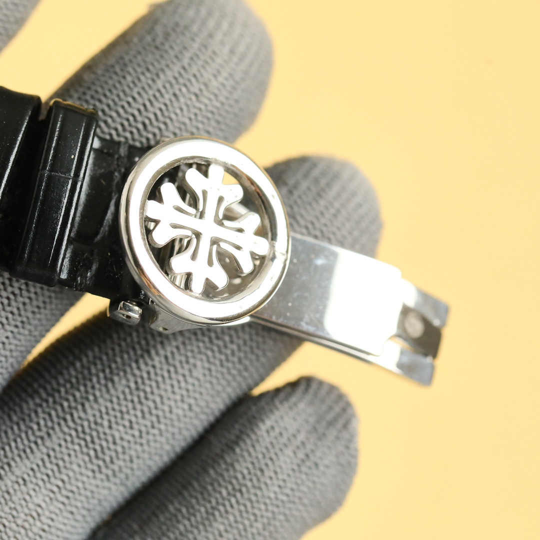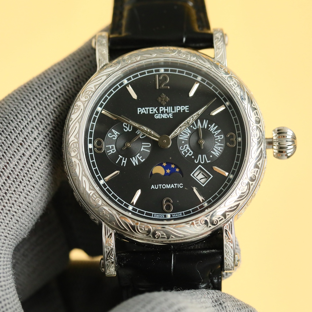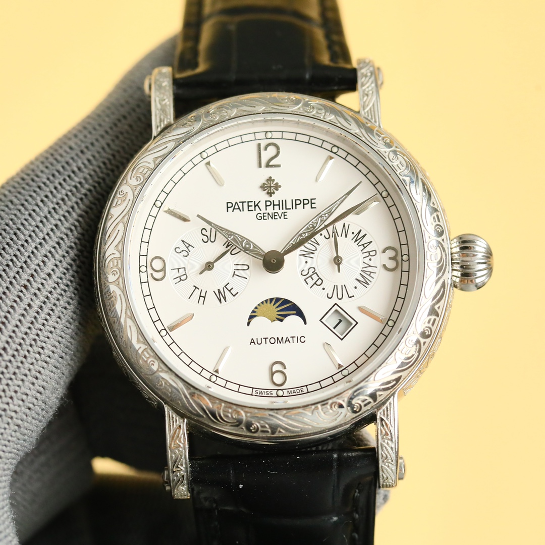 这款手表是AAAAA 1:1 质量 (非常棒). 使用了和原版一模一样的材料. 商标部分也保持了和百达翡丽/Patek Philippe一样. 图片拍摄是实物手表拍摄, 您所收到的实物保证和我们图片一模一样.