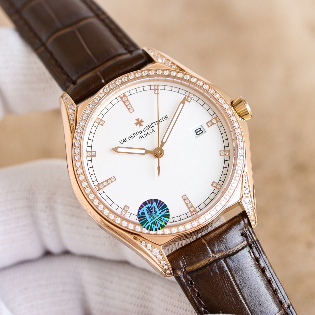 这款手表是AAAAA 1:1 质量 (非常棒). 使用了和原版一模一样的材料. 商标部分也保持了和江诗丹顿/Vacheron Constantin一样. 图片拍摄是实物手表拍摄, 您所收到的实物保证和我们图片一模一样.