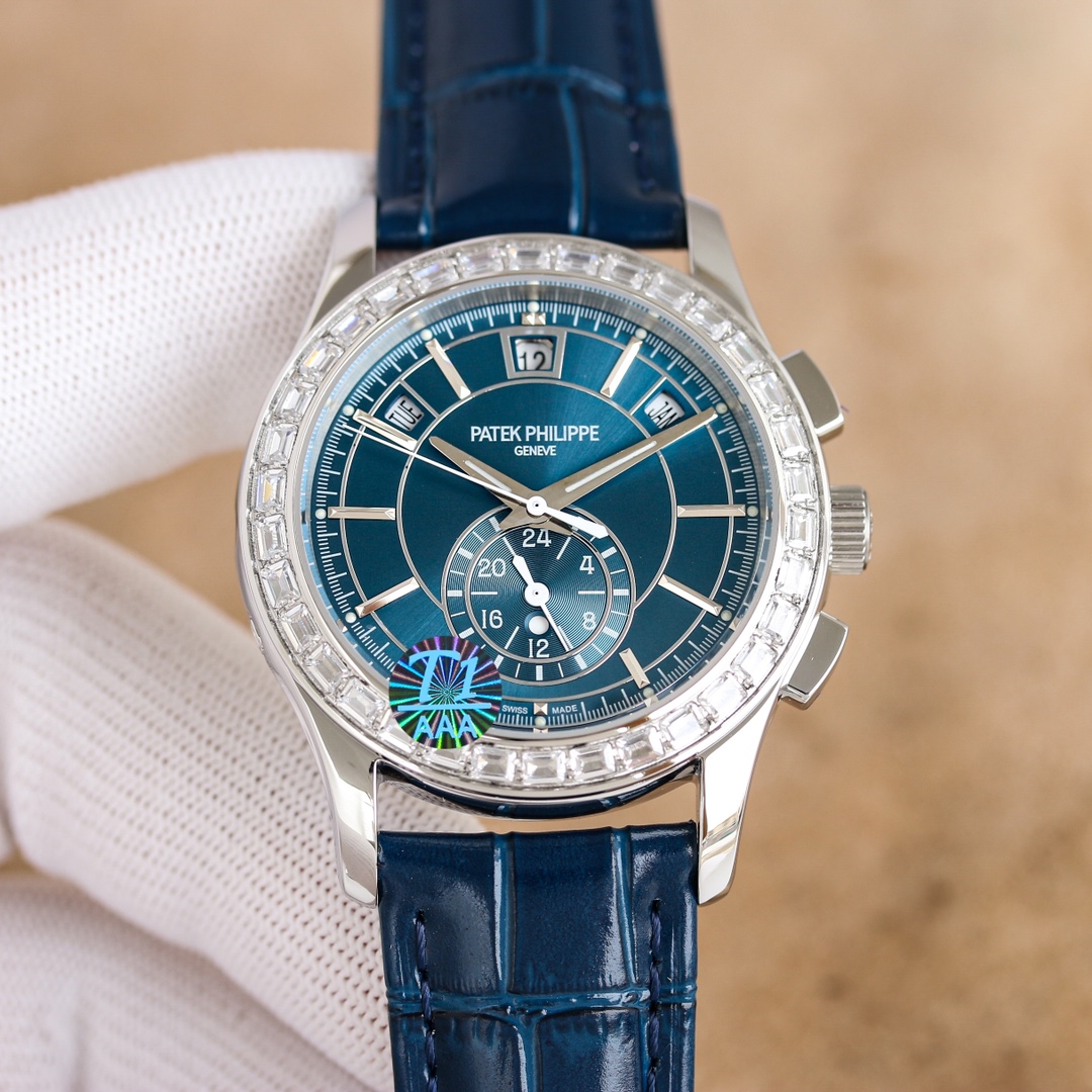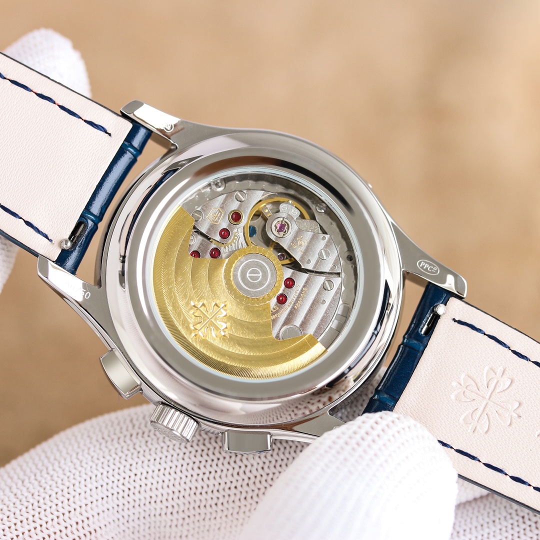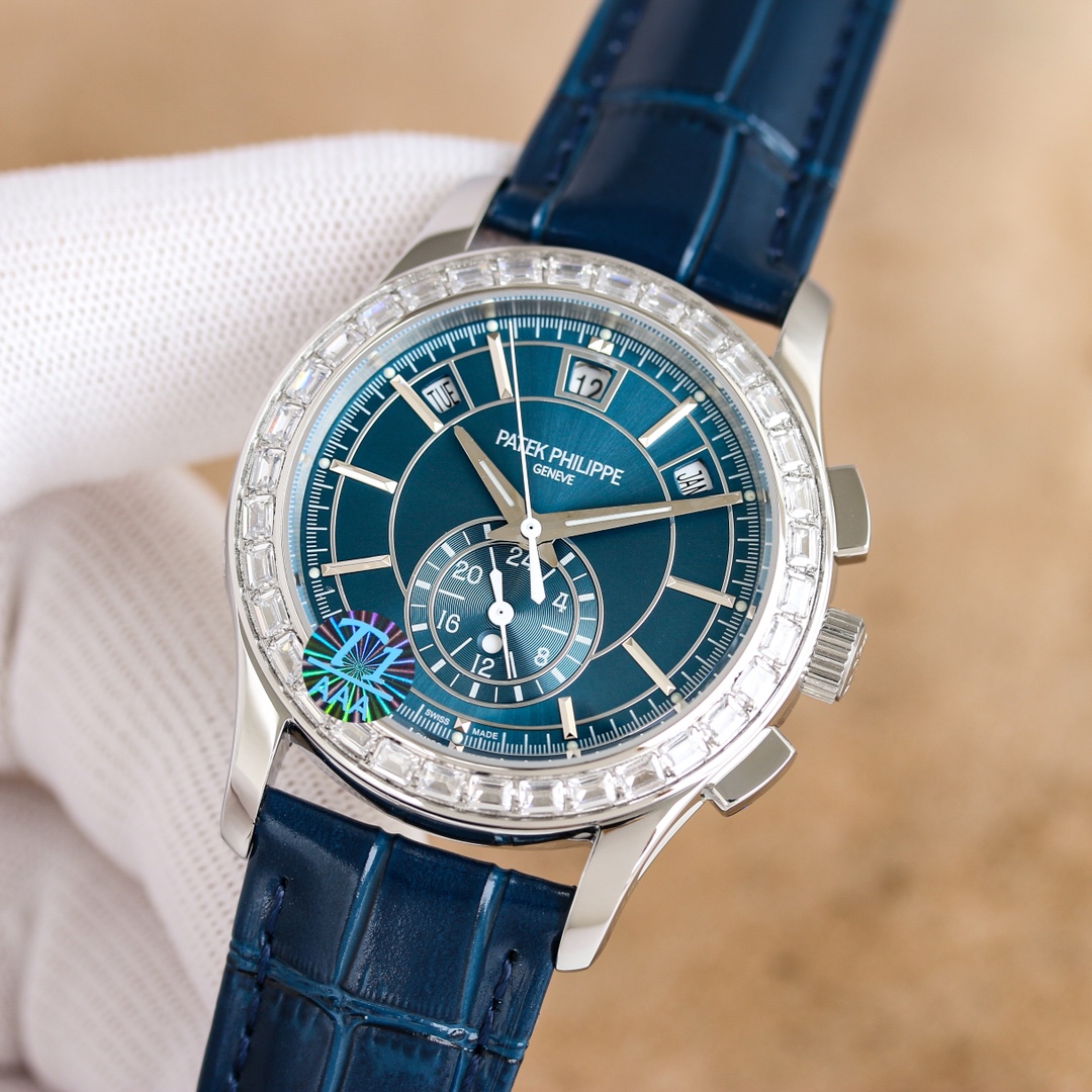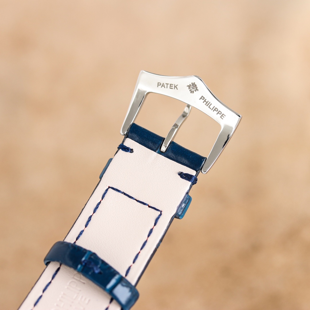 这款手表是AAAAA 1:1 质量 (非常棒). 使用了和原版一模一样的材料. 商标部分也保持了和百达翡丽/Patek Philippe一样. 图片拍摄是实物手表拍摄, 您所收到的实物保证和我们图片一模一样.