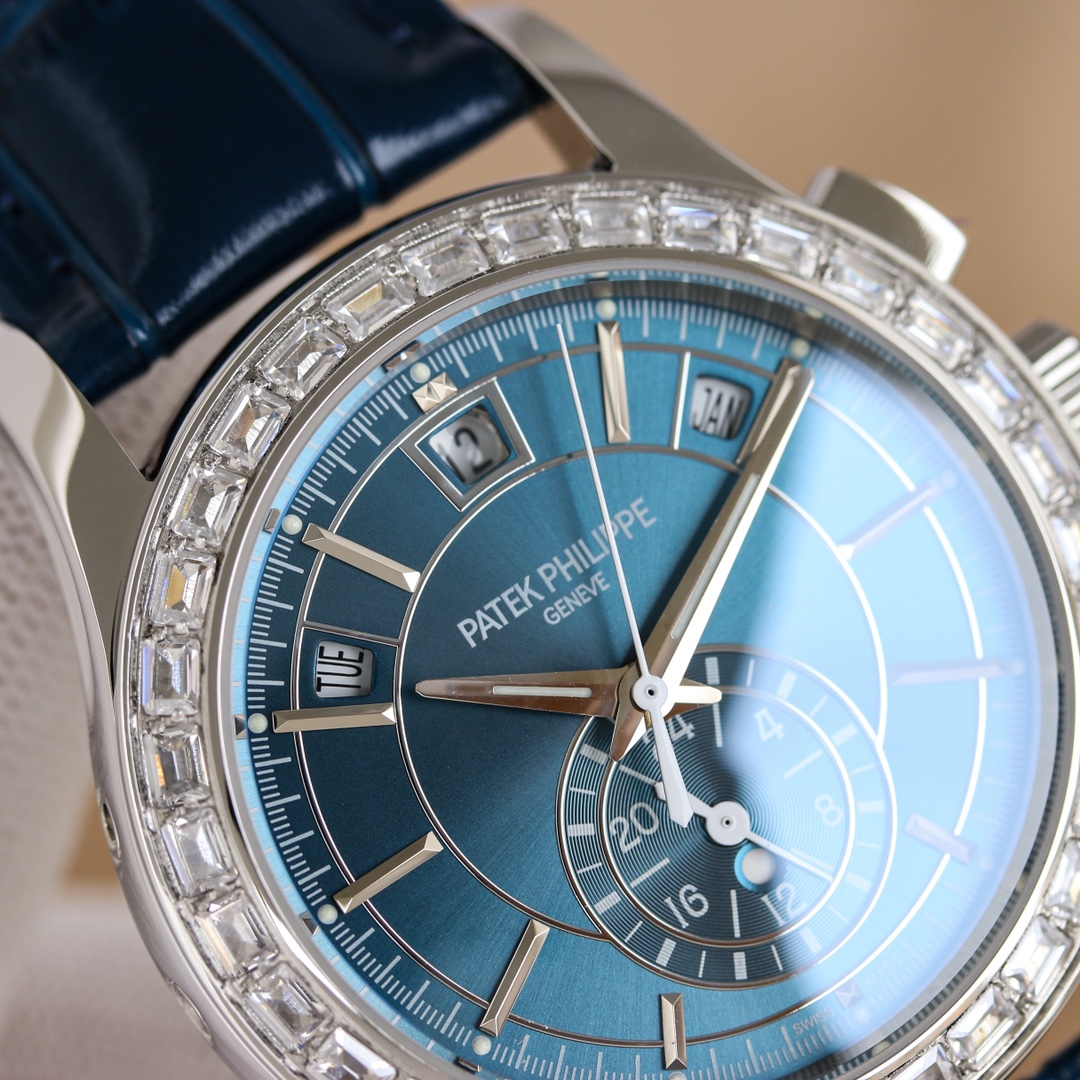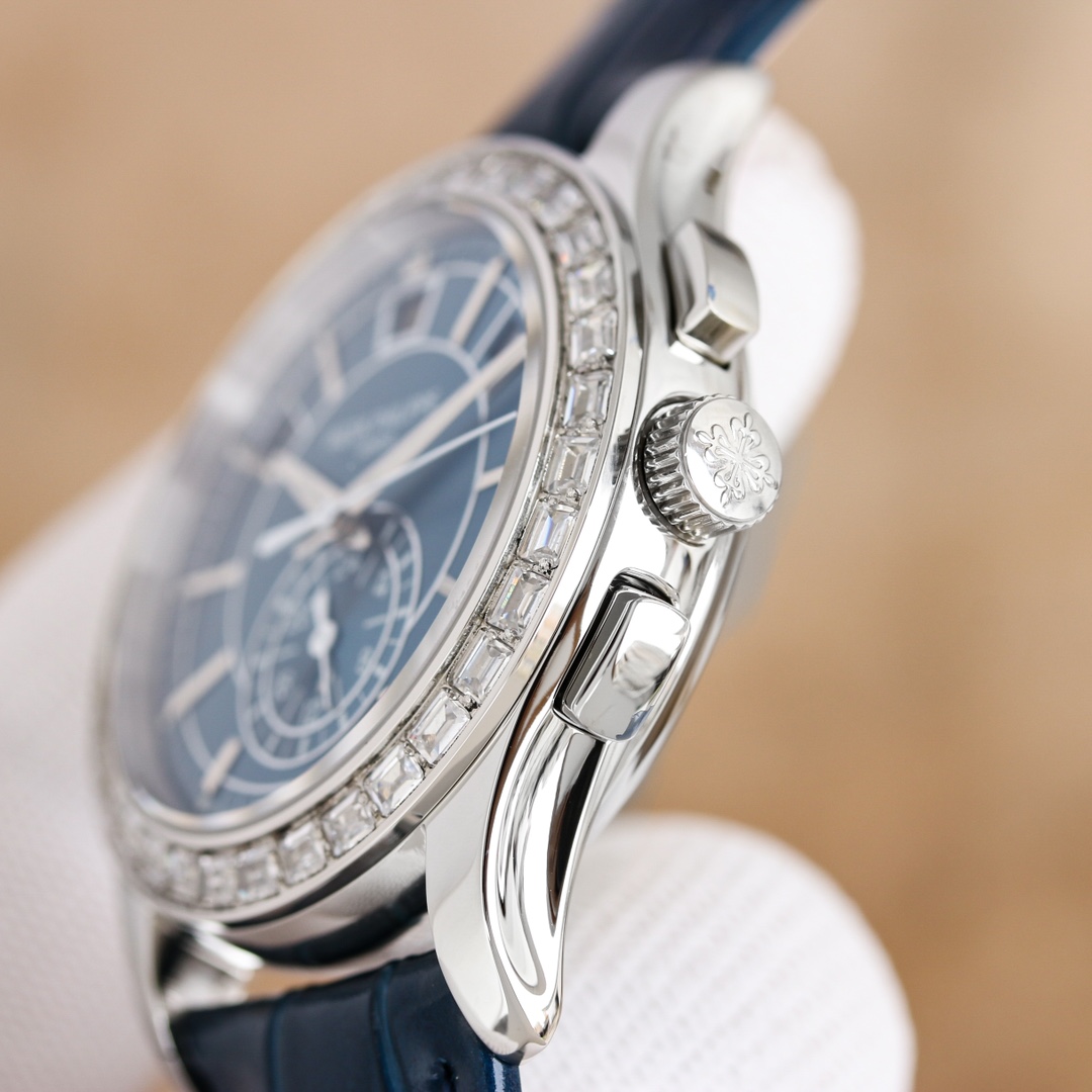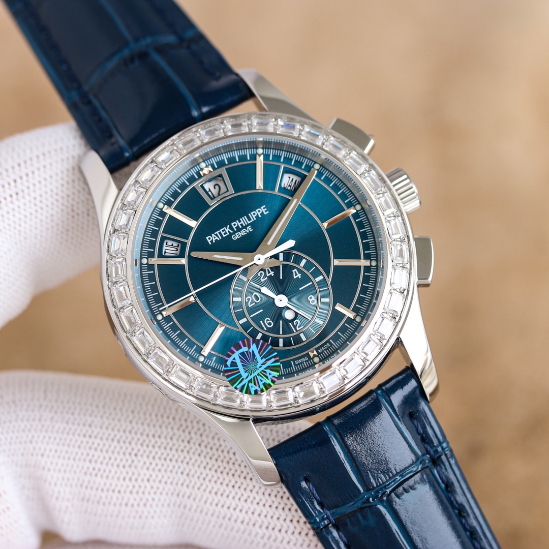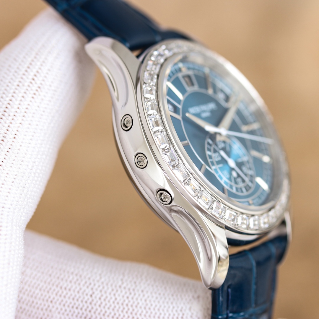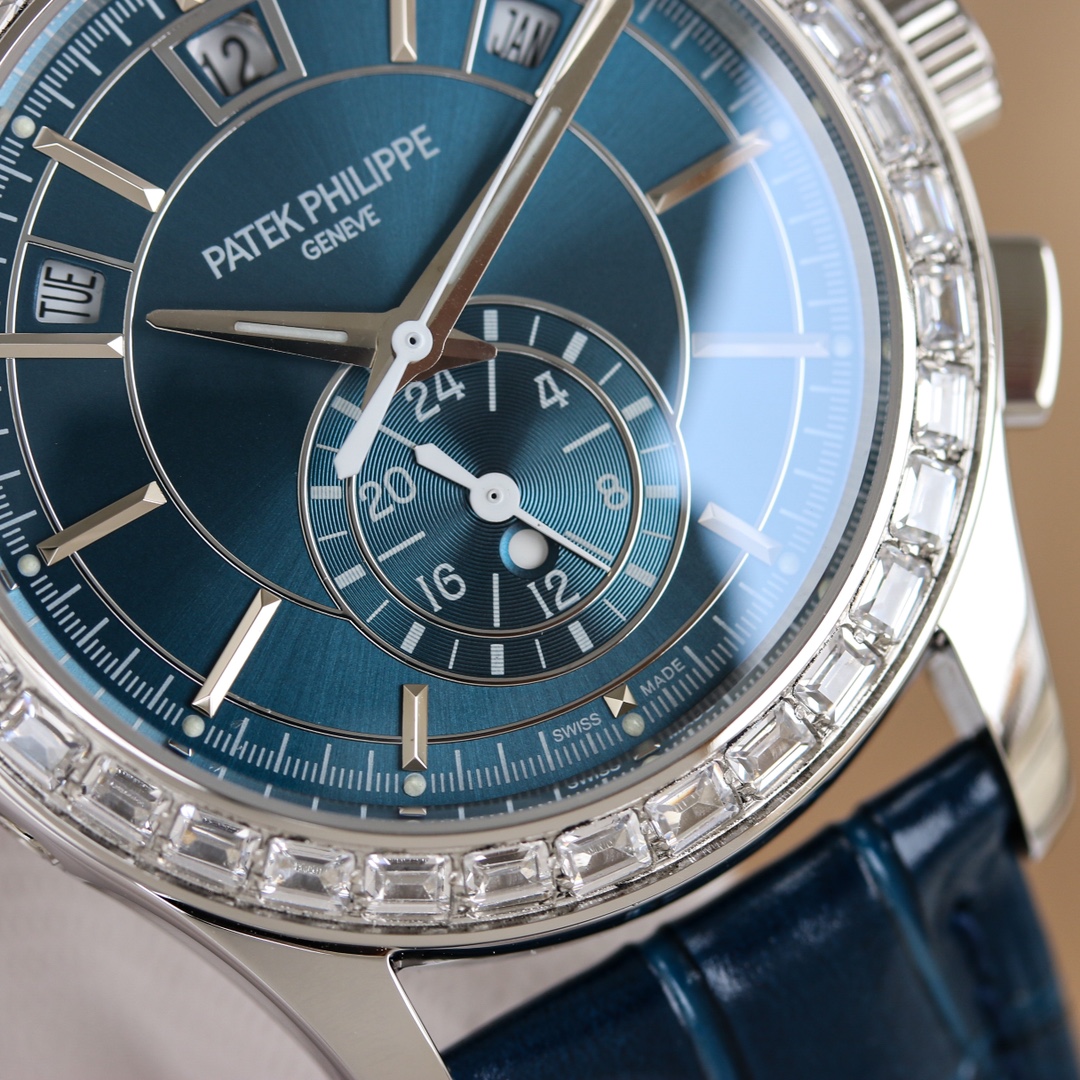 这款手表是AAAAA 1:1 质量 (非常棒). 使用了和原版一模一样的材料. 商标部分也保持了和百达翡丽/Patek Philippe一样. 图片拍摄是实物手表拍摄, 您所收到的实物保证和我们图片一模一样.