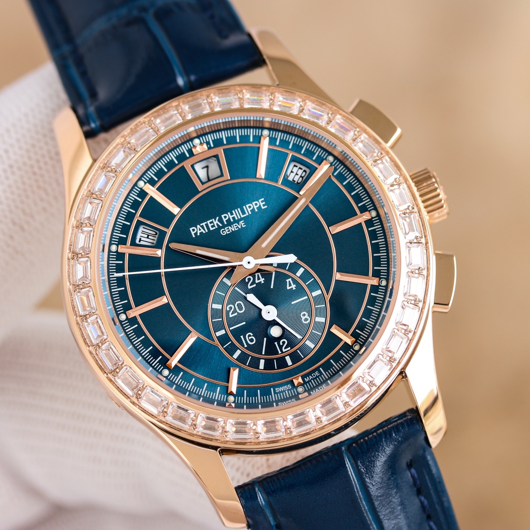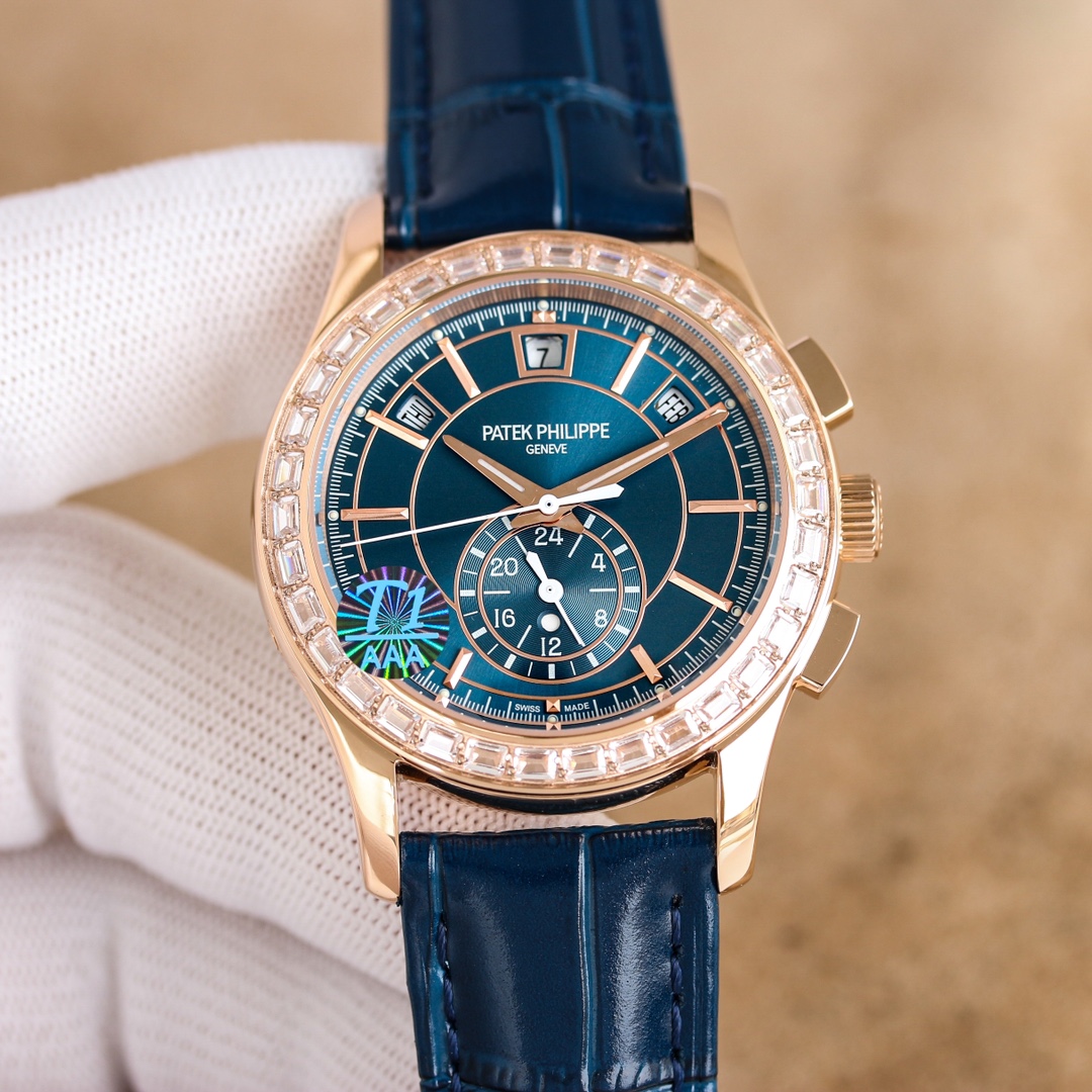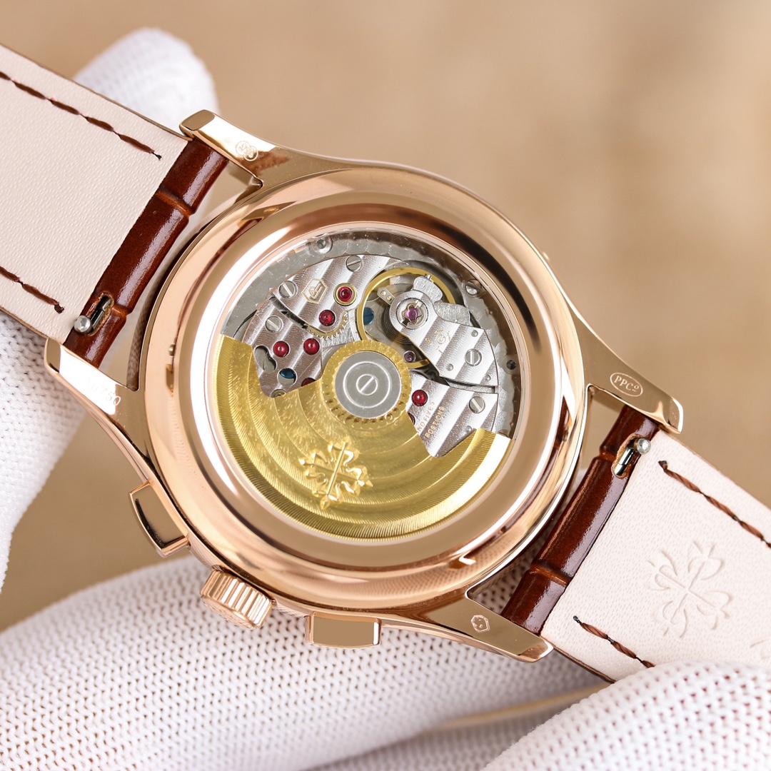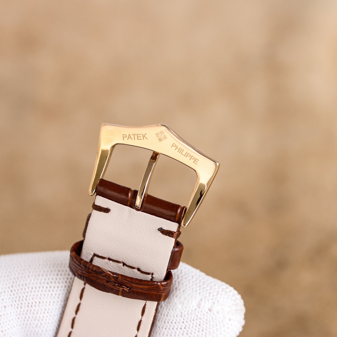这款手表是AAAAA 1:1 质量 (非常棒). 使用了和原版一模一样的材料. 商标部分也保持了和百达翡丽/Patek Philippe一样. 图片拍摄是实物手表拍摄, 您所收到的实物保证和我们图片一模一样.