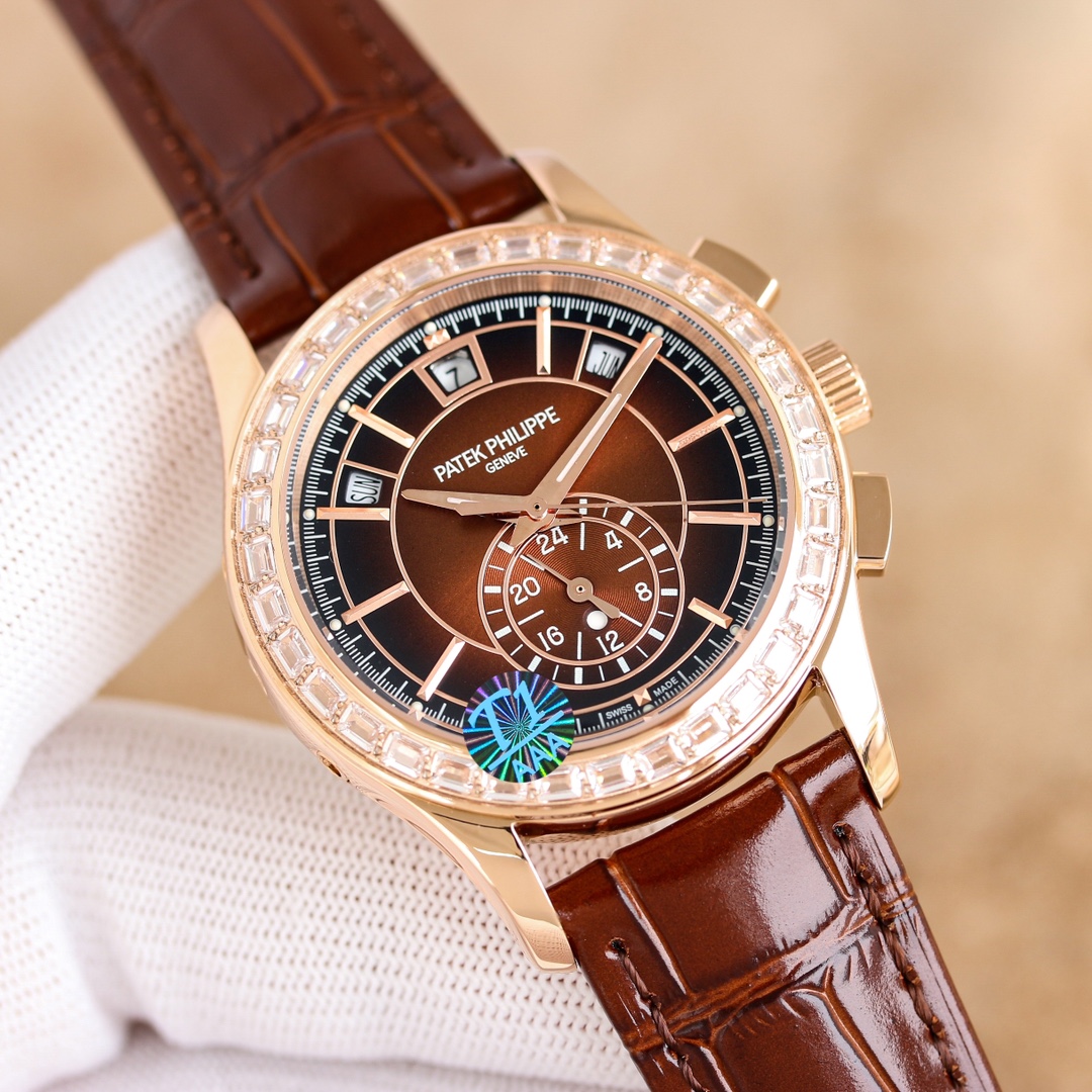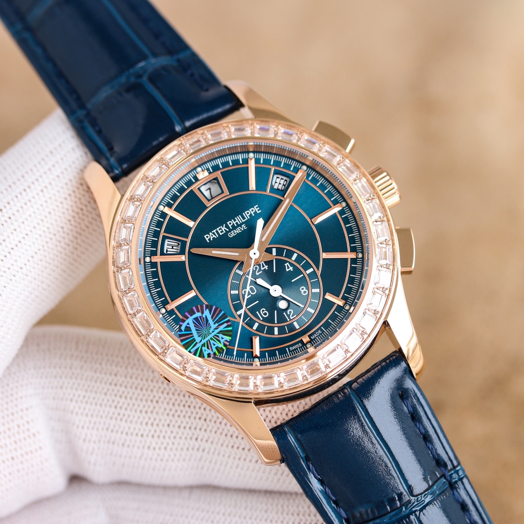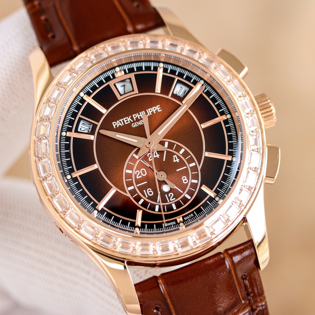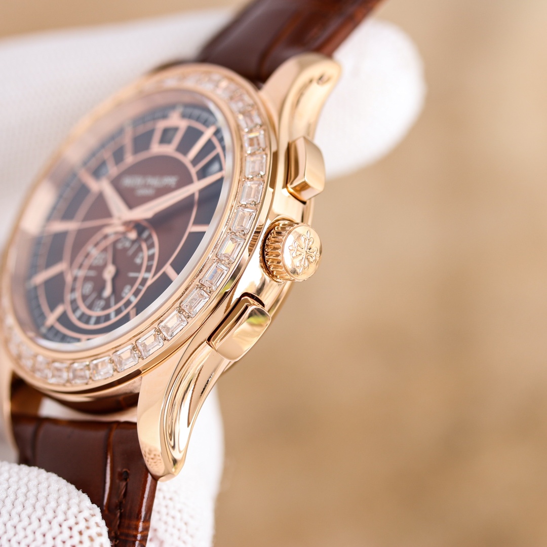 这款手表是AAAAA 1:1 质量 (非常棒). 使用了和原版一模一样的材料. 商标部分也保持了和百达翡丽/Patek Philippe一样. 图片拍摄是实物手表拍摄, 您所收到的实物保证和我们图片一模一样.