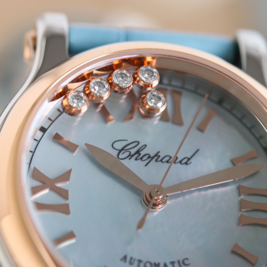 这款手表是AAAAA 1:1 质量 (非常棒). 使用了和原版一模一样的材料. 商标部分也保持了和萧邦/Chopard一样. 图片拍摄是实物手表拍摄, 您所收到的实物保证和我们图片一模一样.
