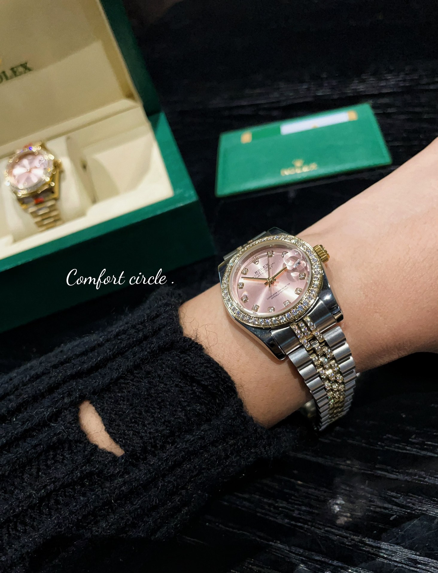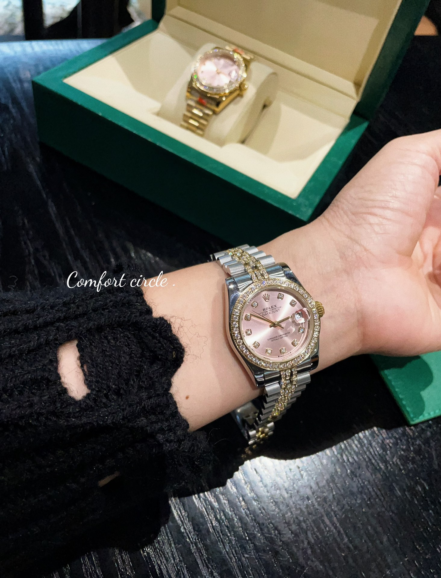 这款手表是AAAAA 1:1 质量 (非常棒). 使用了和原版一模一样的材料. 商标部分也保持了和劳力士/Rolex一样. 图片拍摄是实物手表拍摄, 您所收到的实物保证和我们图片一模一样.