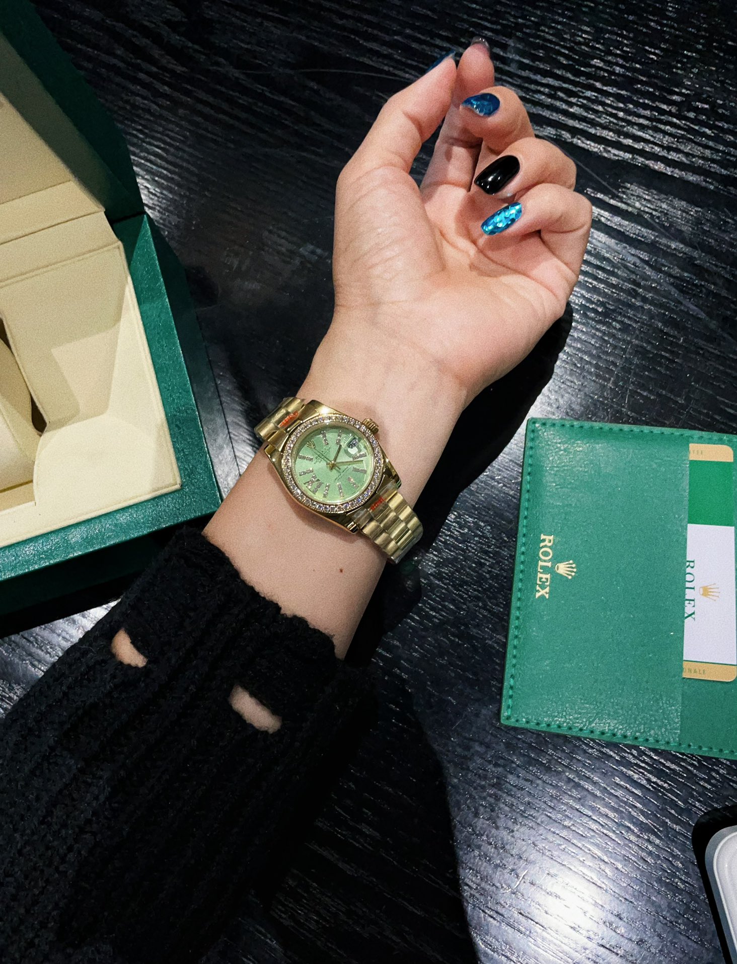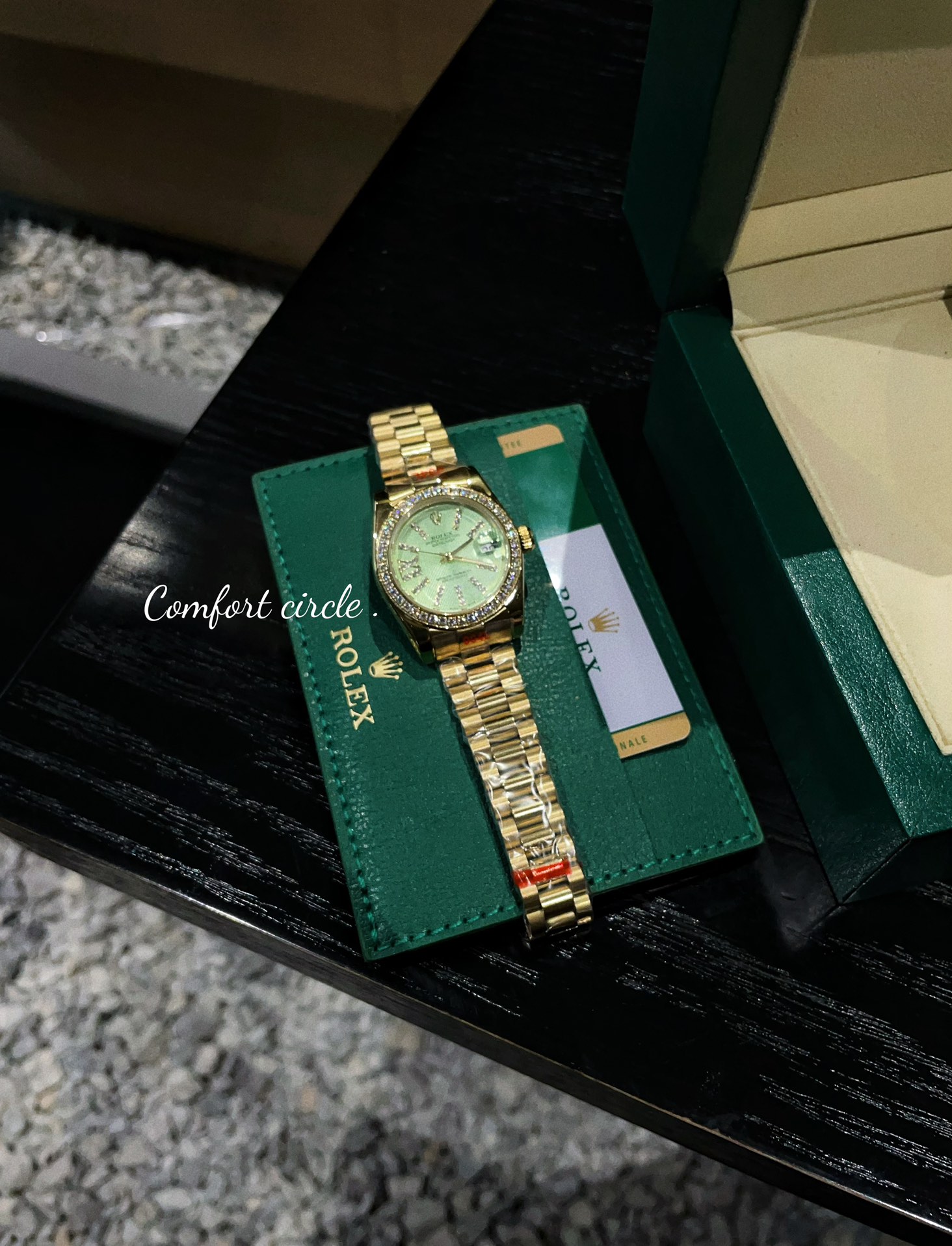 这款手表是AAAAA 1:1 质量 (非常棒). 使用了和原版一模一样的材料. 商标部分也保持了和劳力士/Rolex一样. 图片拍摄是实物手表拍摄, 您所收到的实物保证和我们图片一模一样.