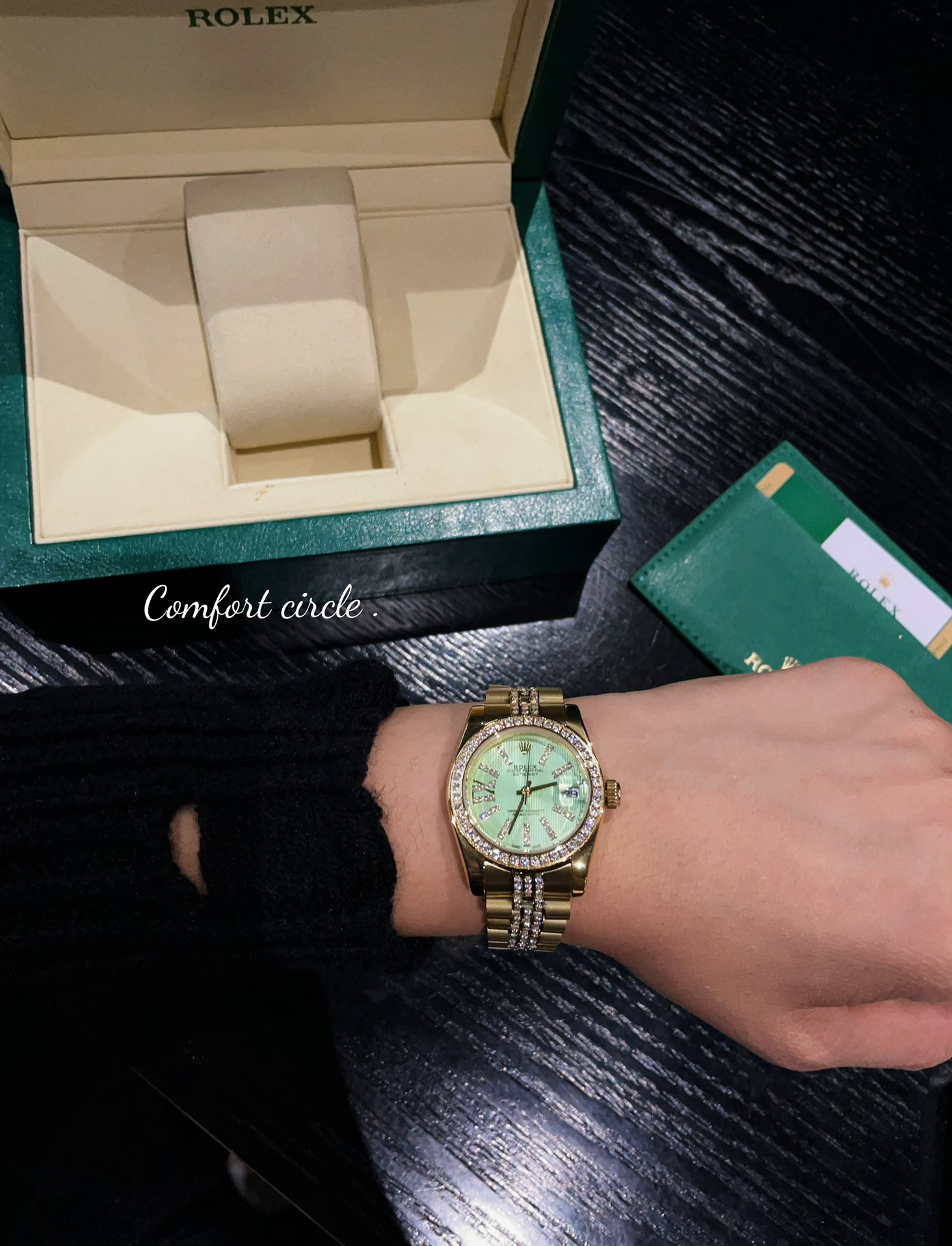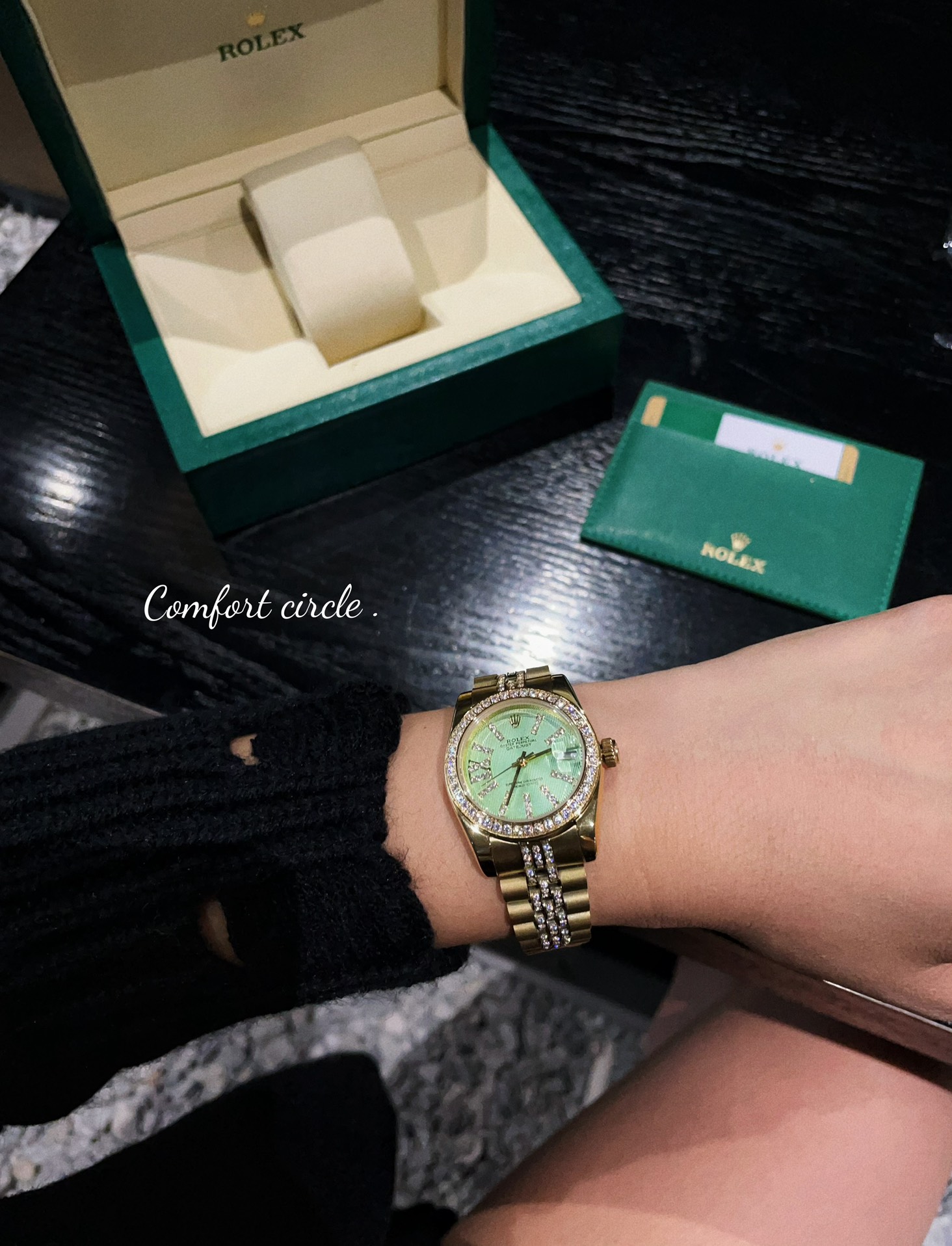 这款手表是AAAAA 1:1 质量 (非常棒). 使用了和原版一模一样的材料. 商标部分也保持了和劳力士/Rolex一样. 图片拍摄是实物手表拍摄, 您所收到的实物保证和我们图片一模一样.