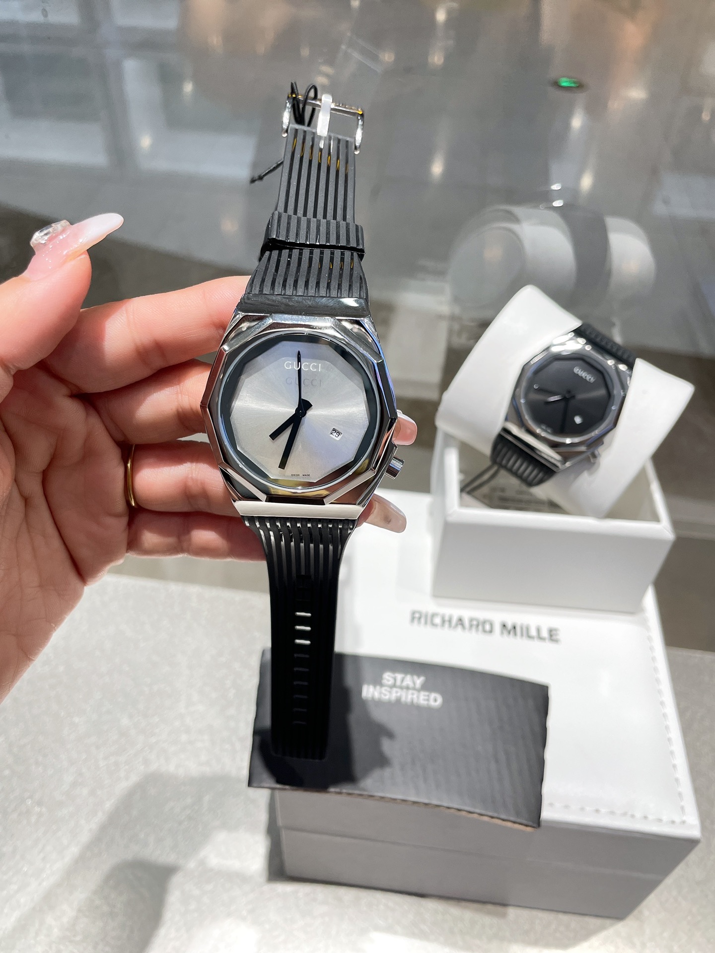 这款手表是AAAAA 1:1 质量 (非常棒). 使用了和原版一模一样的材料. 商标部分也保持了和古奇/Gucci一样. 图片拍摄是实物手表拍摄, 您所收到的实物保证和我们图片一模一样.