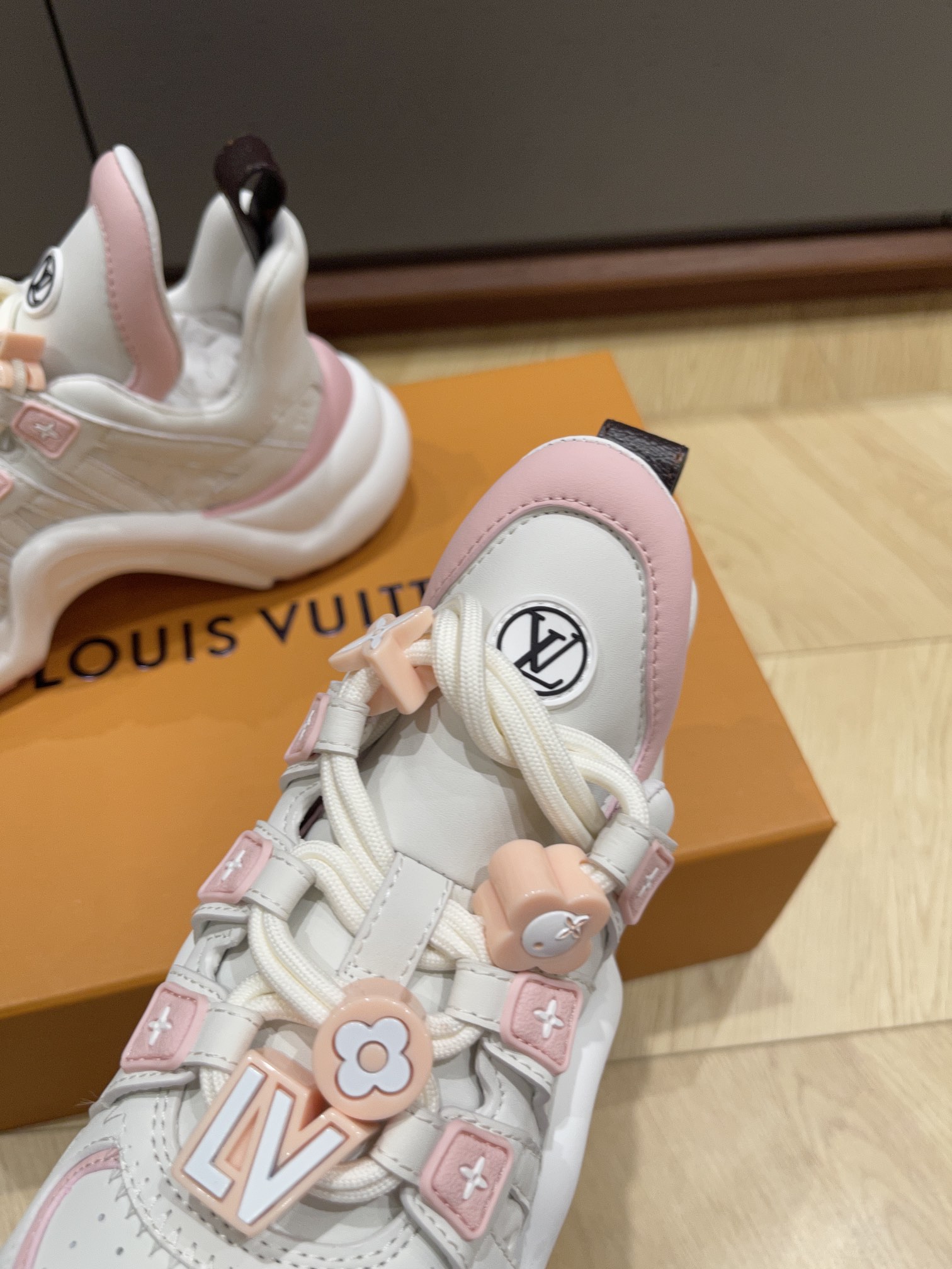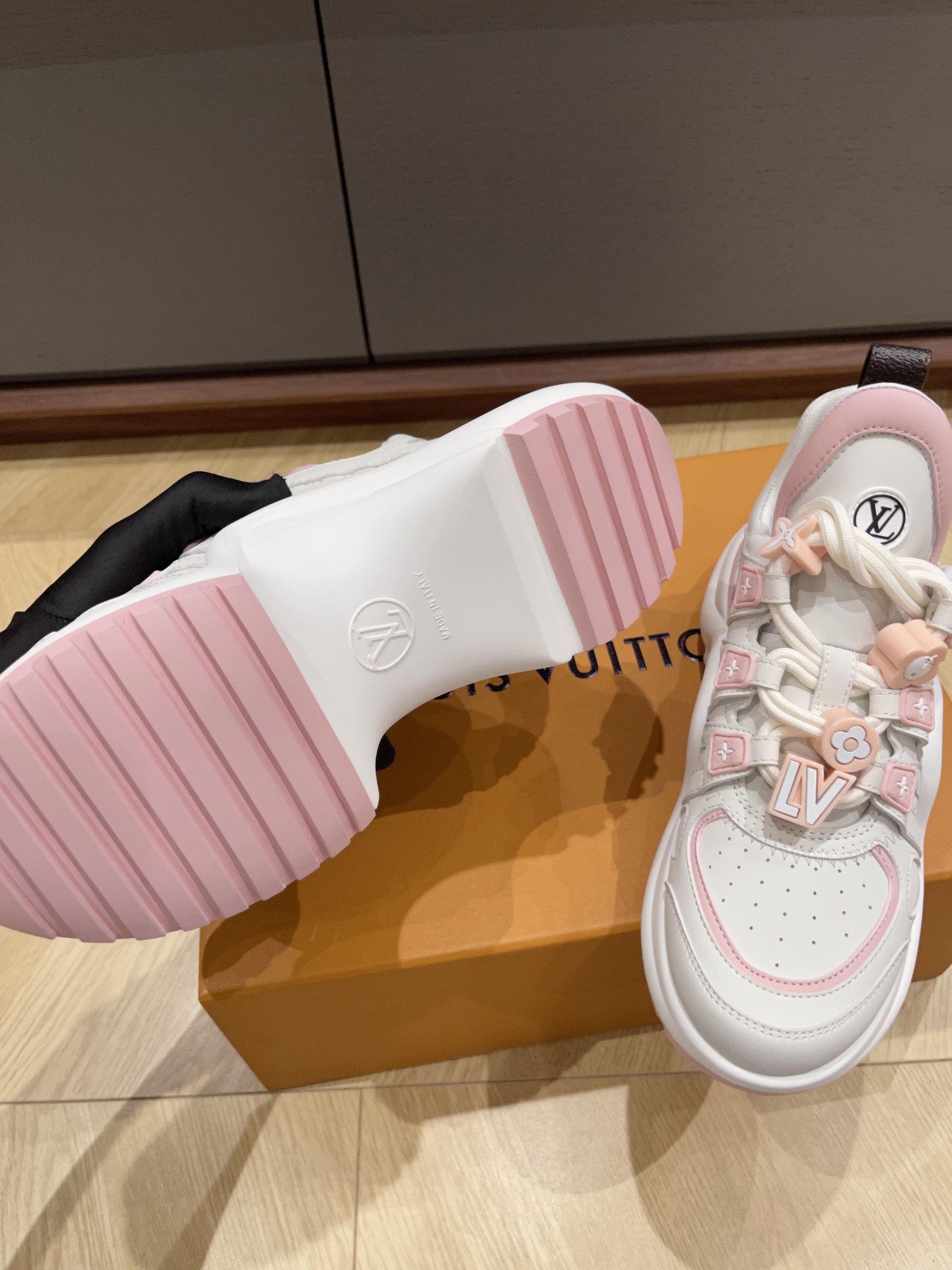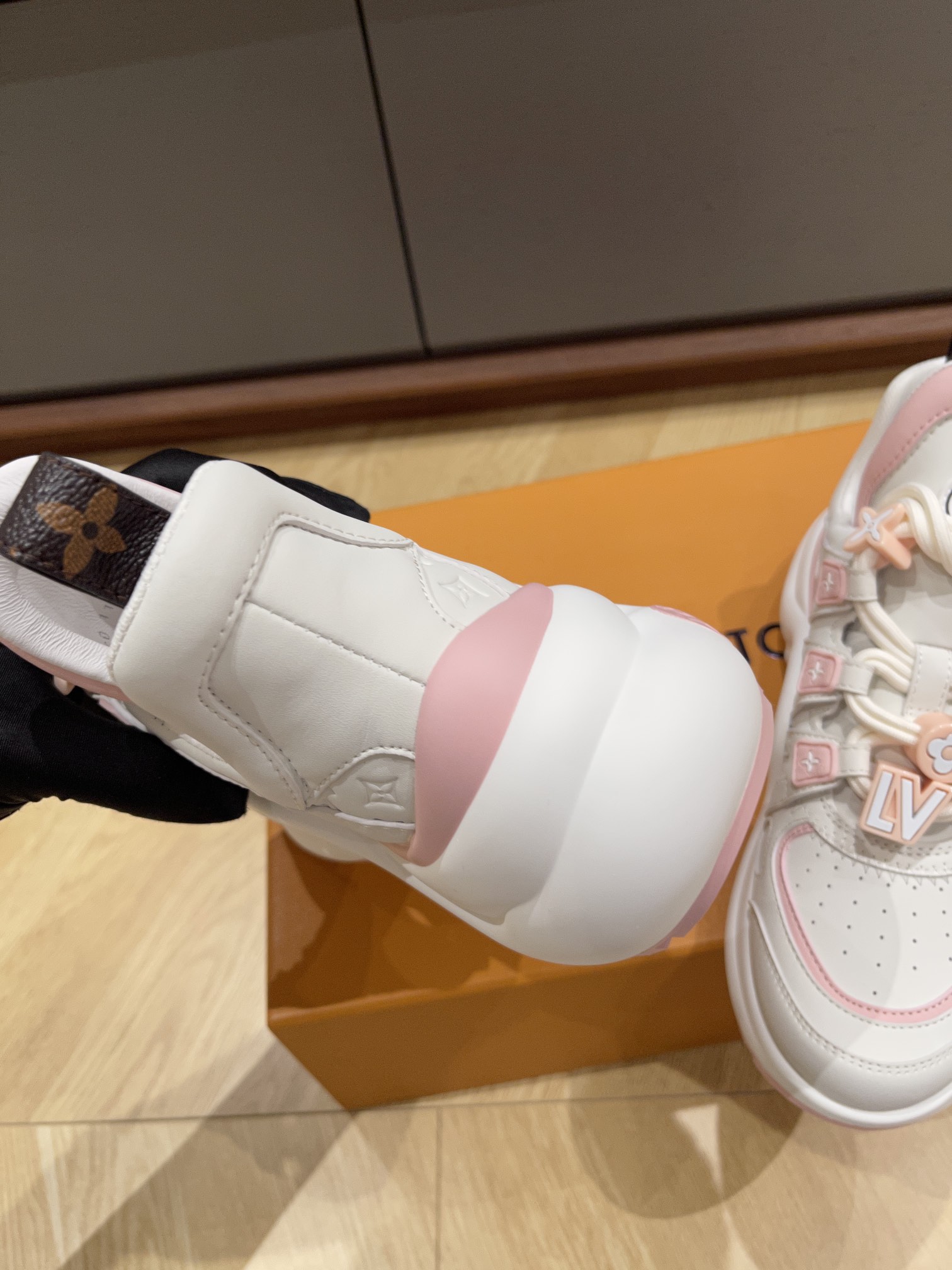 这款鞋子是AAAAA 1:1 质量 (非常棒). 使用了和原版一模一样的材料. 商标部分也保持了和路易威登/Louis Vuitton一样. 图片拍摄是实物鞋子拍摄, 您所收到的实物保证和我们图片一模一样.