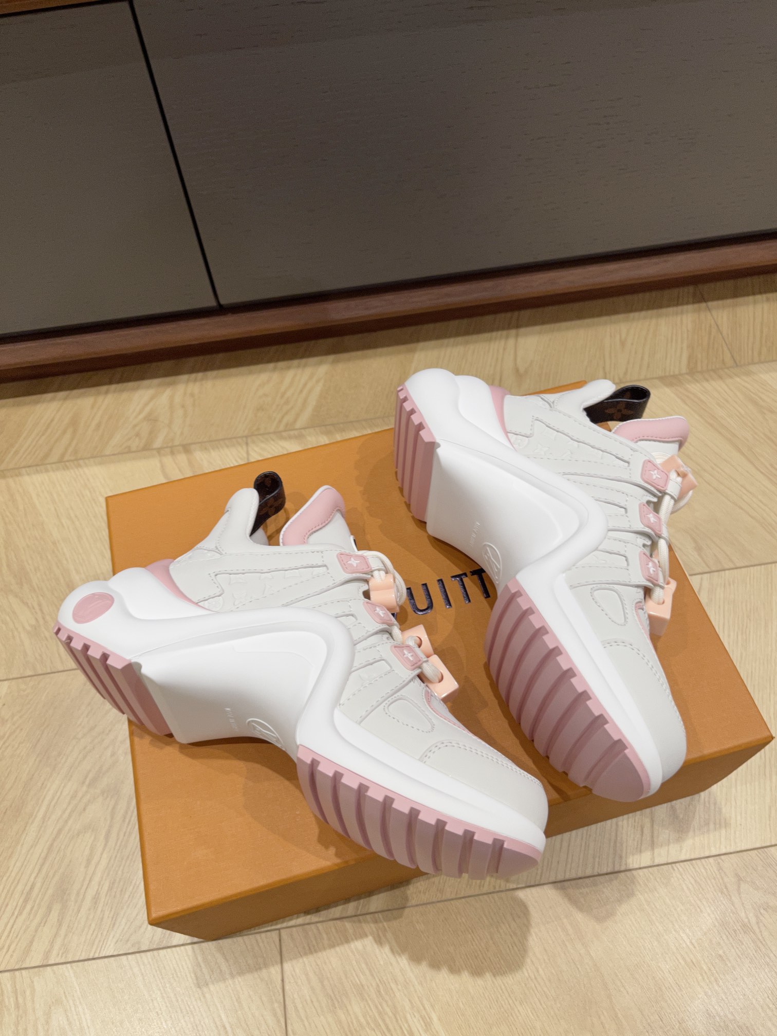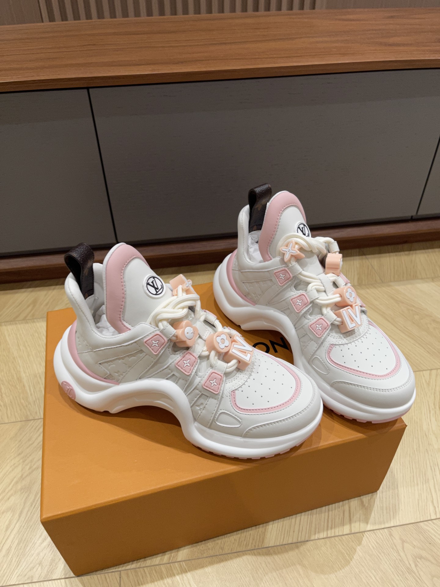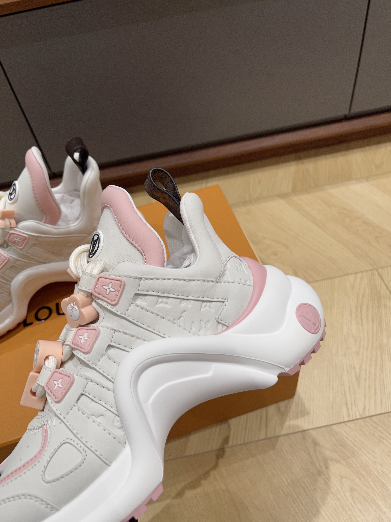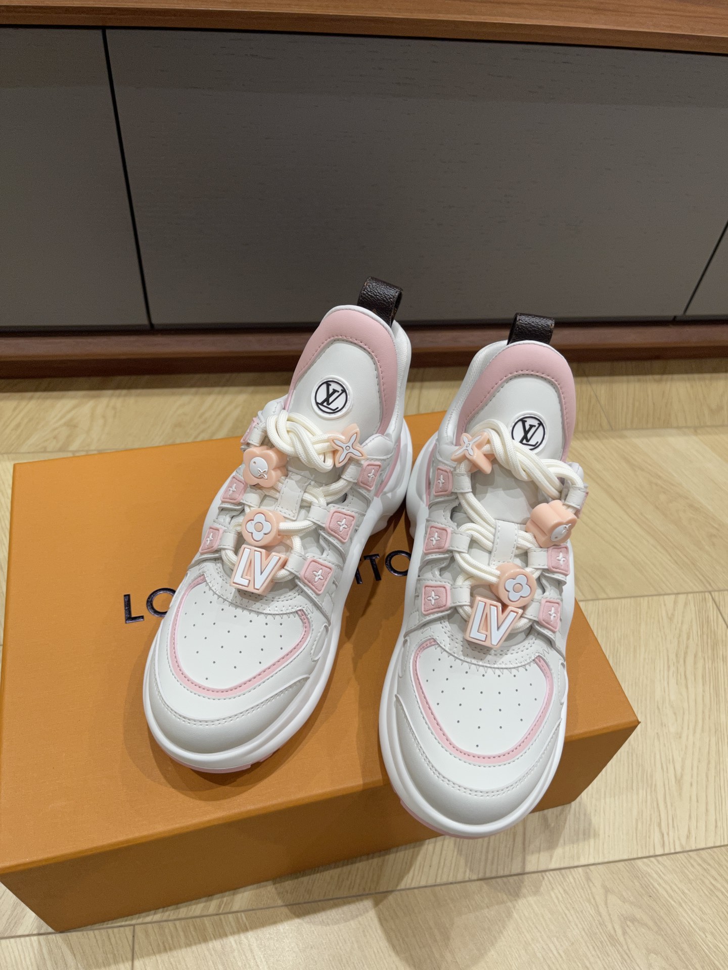 这款鞋子是AAAAA 1:1 质量 (非常棒). 使用了和原版一模一样的材料. 商标部分也保持了和路易威登/Louis Vuitton一样. 图片拍摄是实物鞋子拍摄, 您所收到的实物保证和我们图片一模一样.