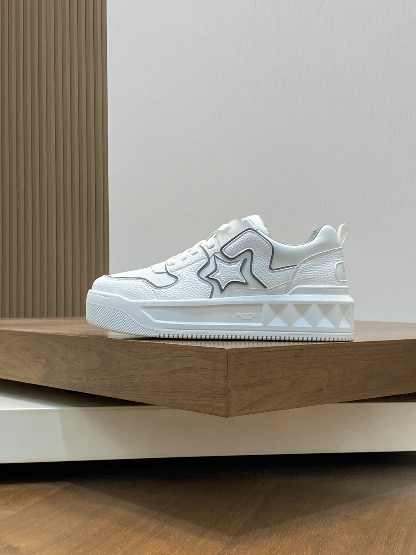 这款鞋子是AAAAA 1:1 质量 (非常棒). 使用了和原版一模一样的材料. 商标部分也保持了和华伦天奴/Valentino一样. 图片拍摄是实物鞋子拍摄, 您所收到的实物保证和我们图片一模一样.