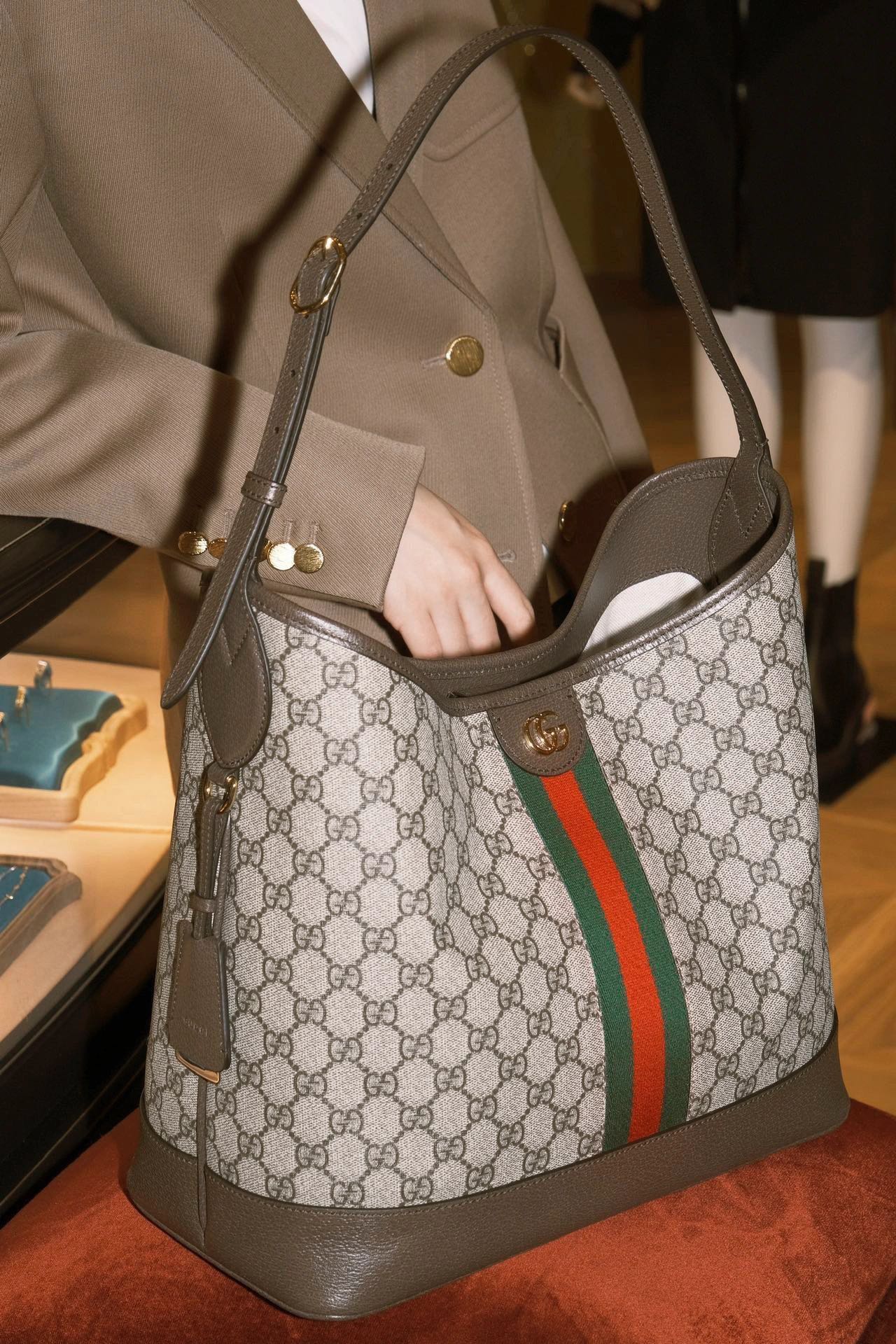 这款包包是AAAAA 1:1 质量 (非常棒). 使用了和原版一模一样的材料. 商标部分也保持了和古奇/Gucci一样. 图片拍摄是实物包包拍摄, 您所收到的实物保证和我们图片一模一样.