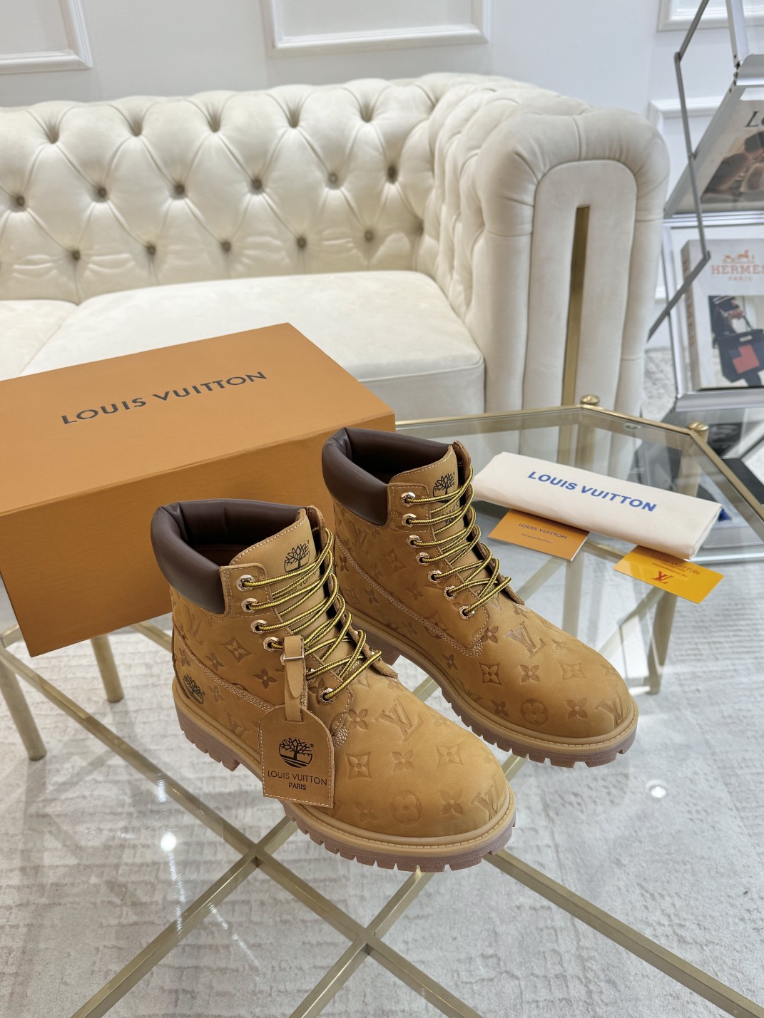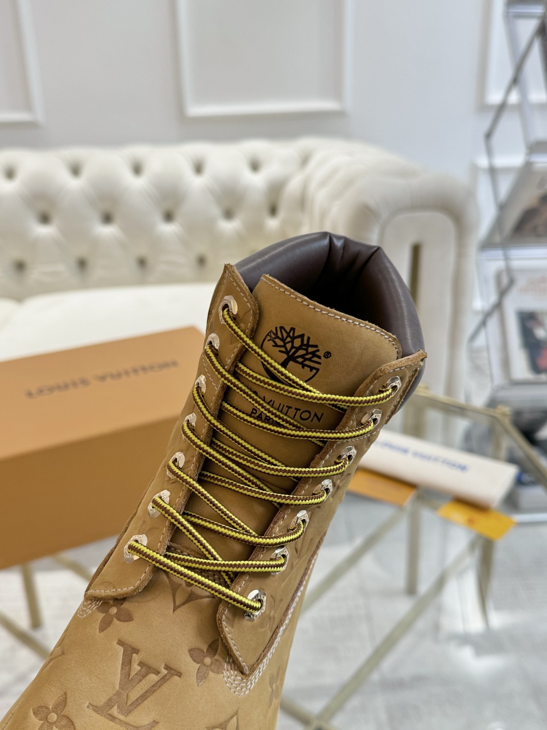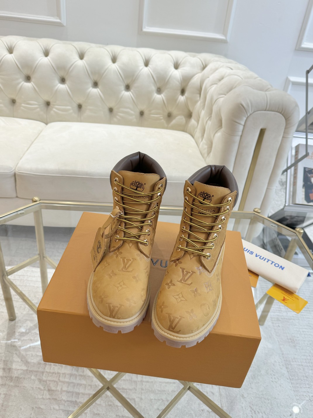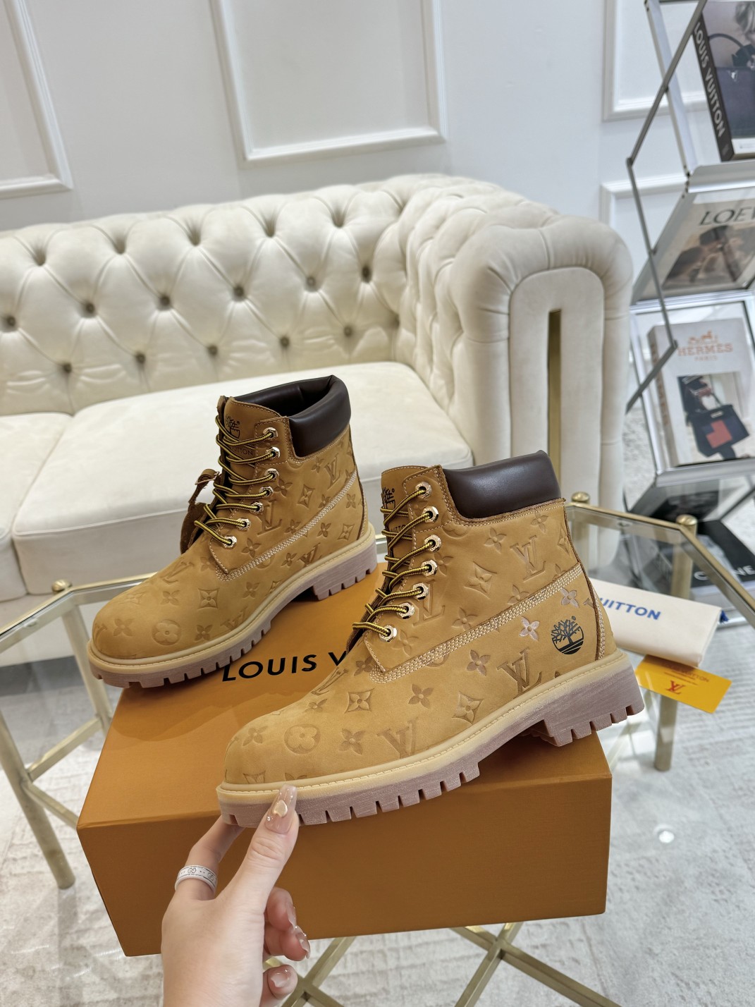 这款鞋子是AAAAA 1:1 质量 (非常棒). 使用了和原版一模一样的材料. 商标部分也保持了和路易威登/Louis Vuitton一样. 图片拍摄是实物鞋子拍摄, 您所收到的实物保证和我们图片一模一样.
