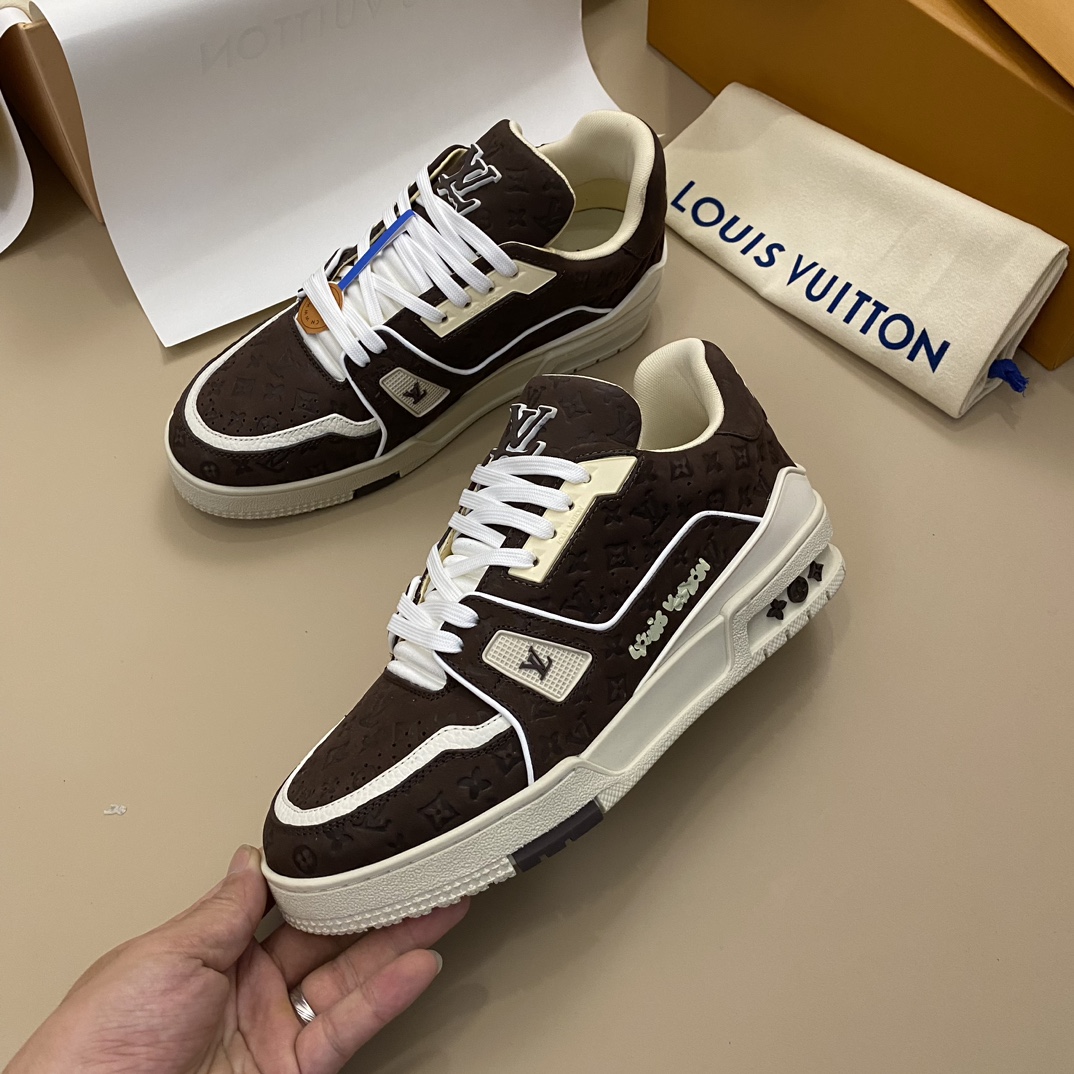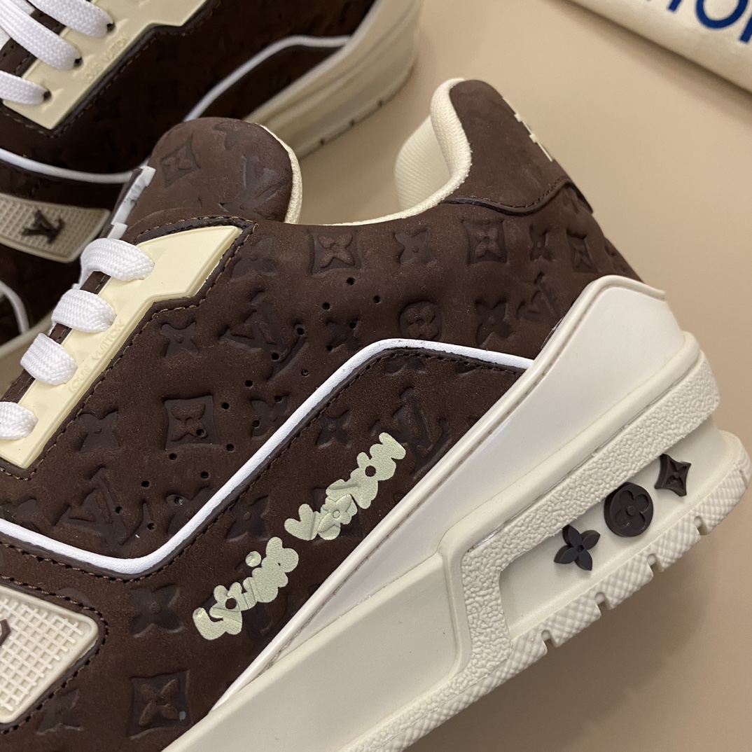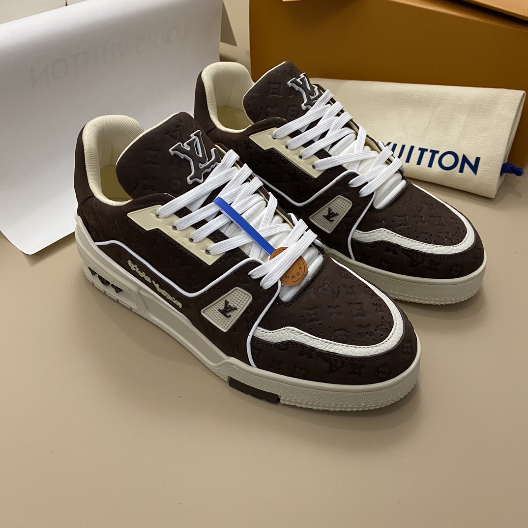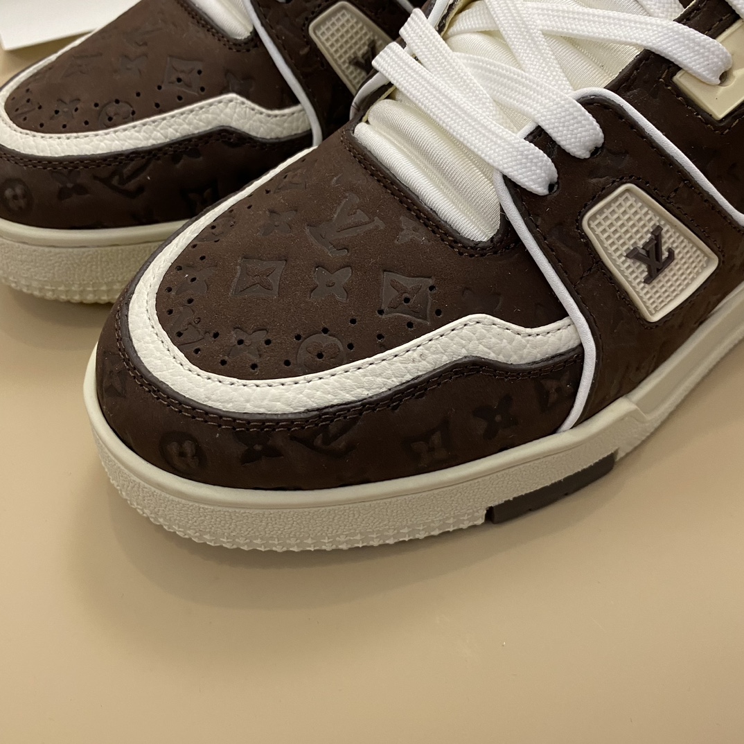 这款鞋子是AAAAA 1:1 质量 (非常棒). 使用了和原版一模一样的材料. 商标部分也保持了和路易威登/Louis Vuitton一样. 图片拍摄是实物鞋子拍摄, 您所收到的实物保证和我们图片一模一样.