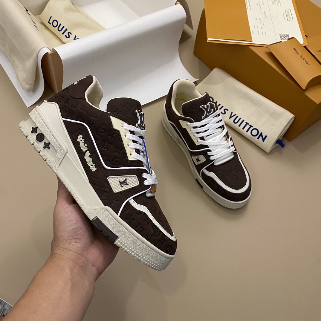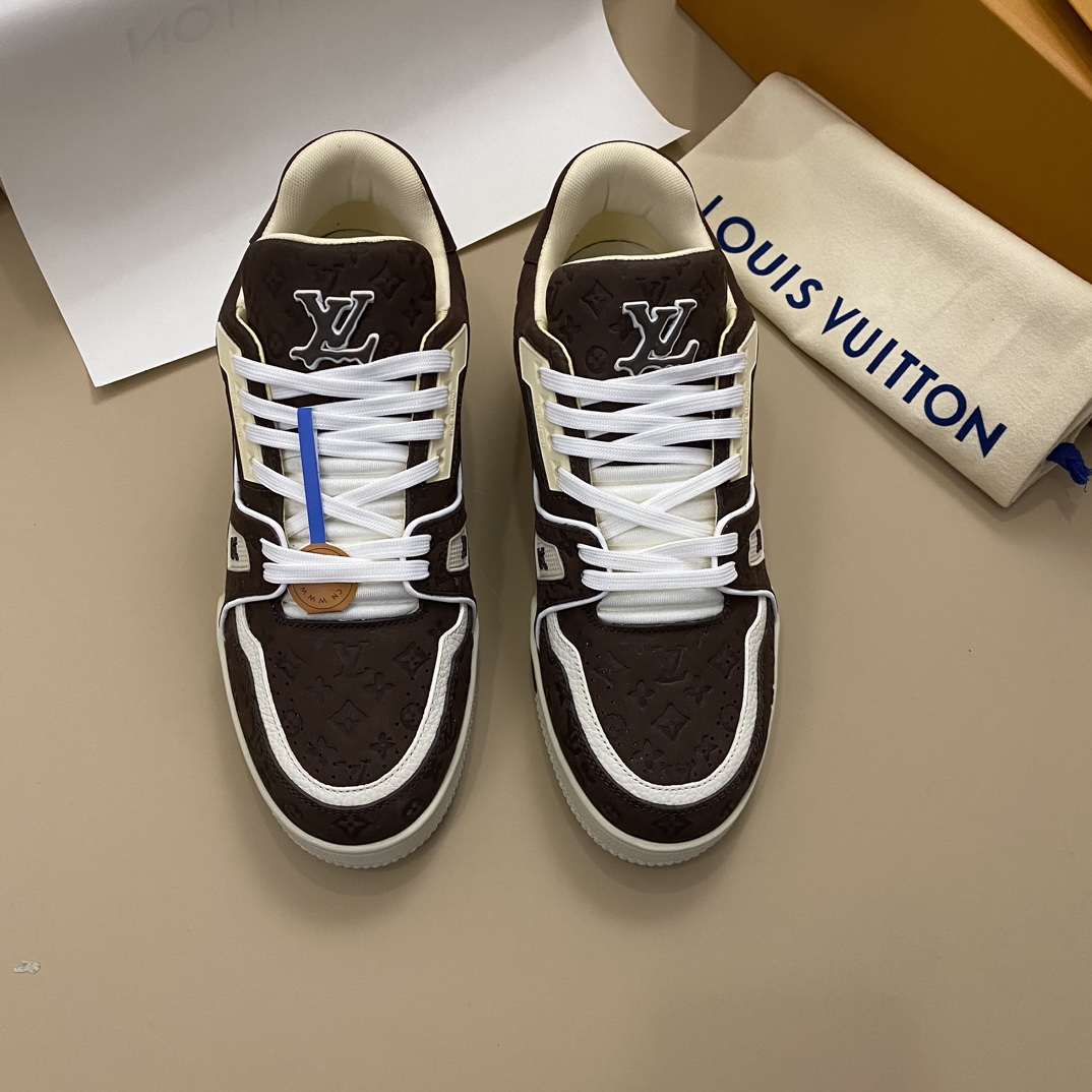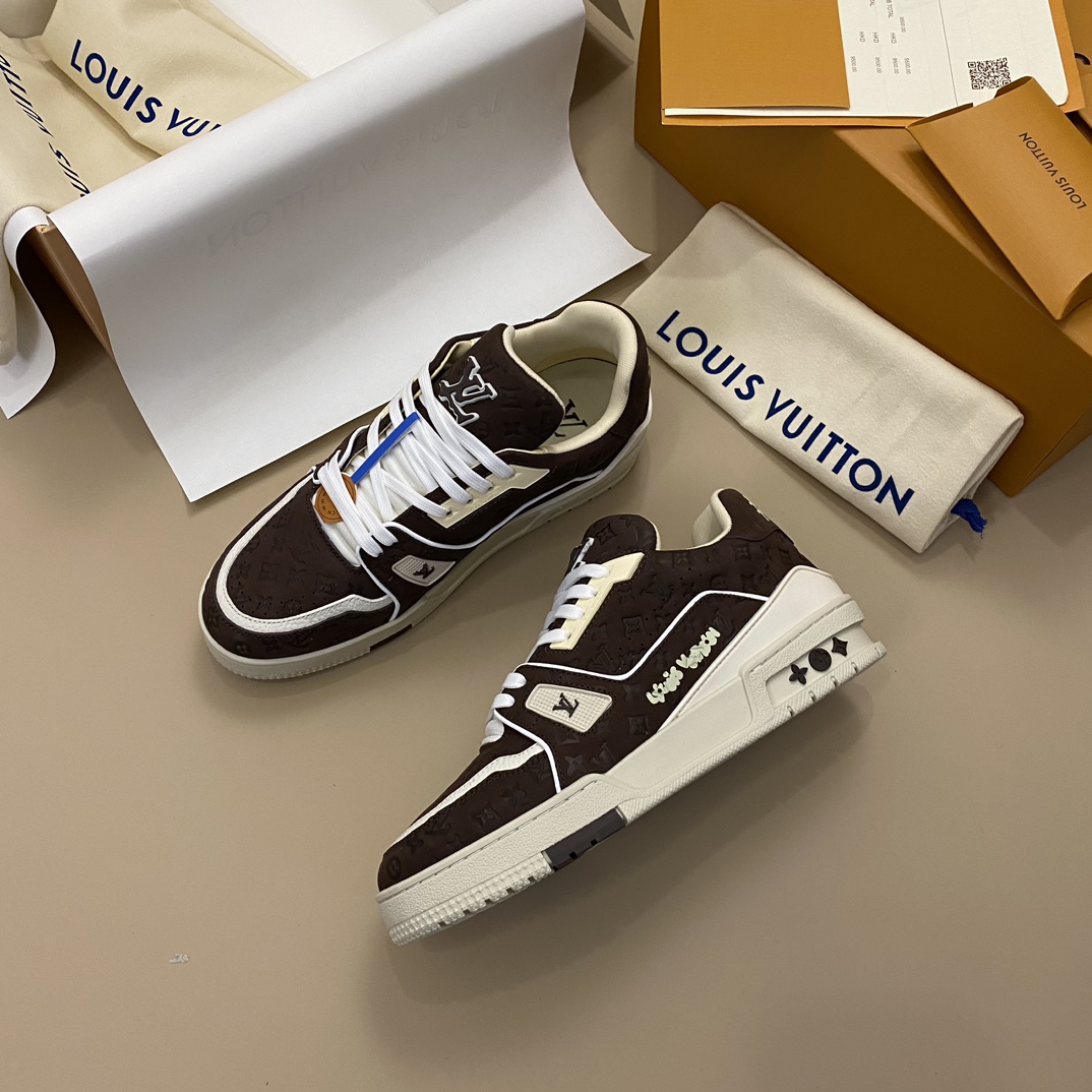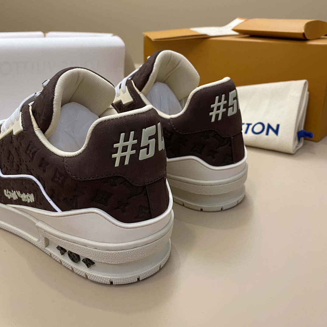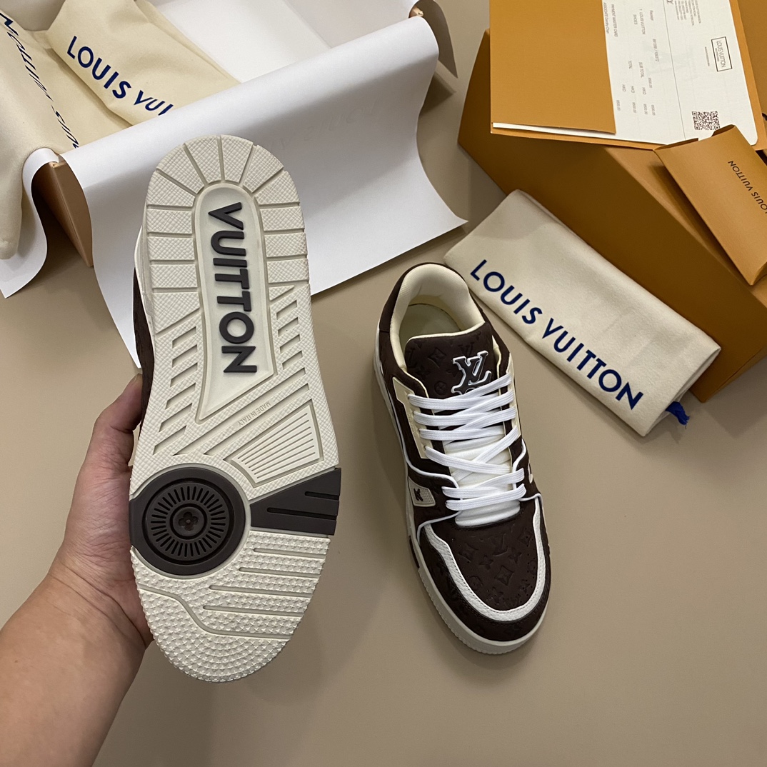 这款鞋子是AAAAA 1:1 质量 (非常棒). 使用了和原版一模一样的材料. 商标部分也保持了和路易威登/Louis Vuitton一样. 图片拍摄是实物鞋子拍摄, 您所收到的实物保证和我们图片一模一样.