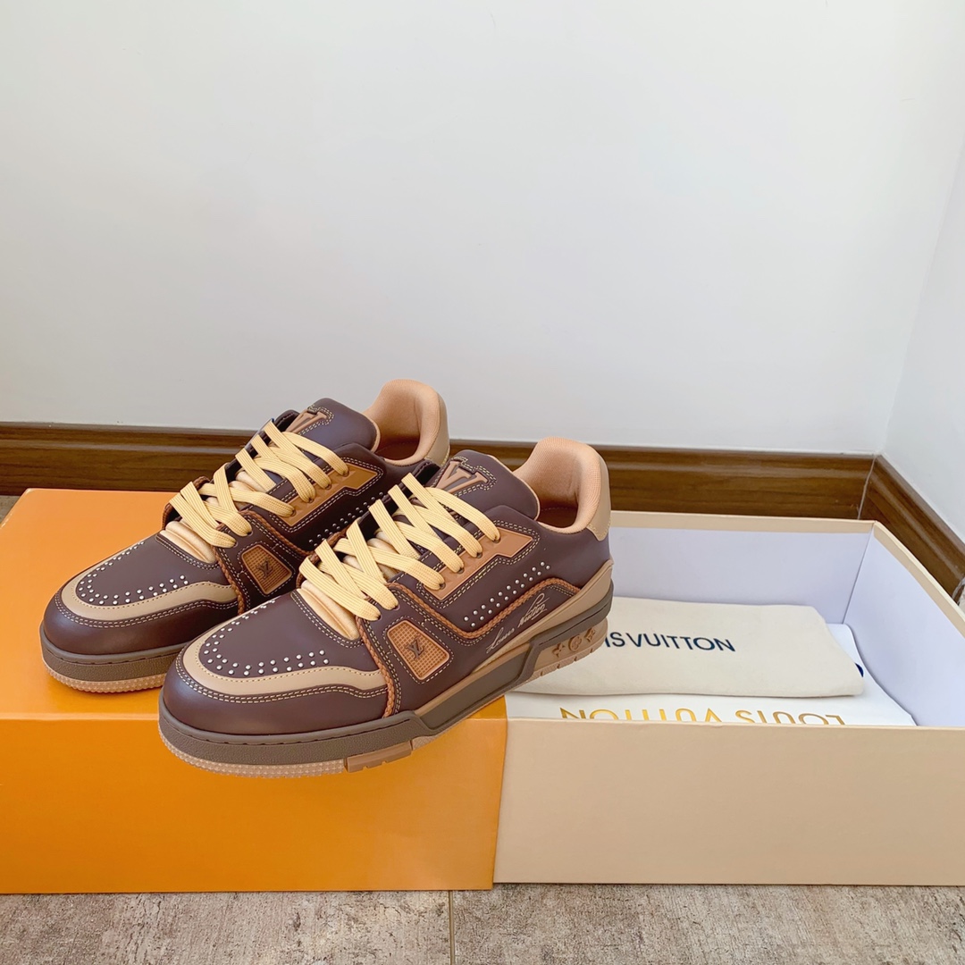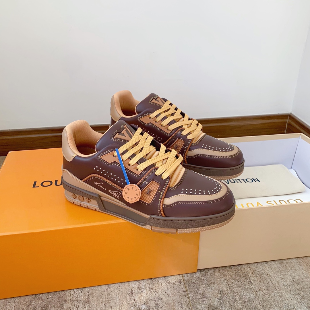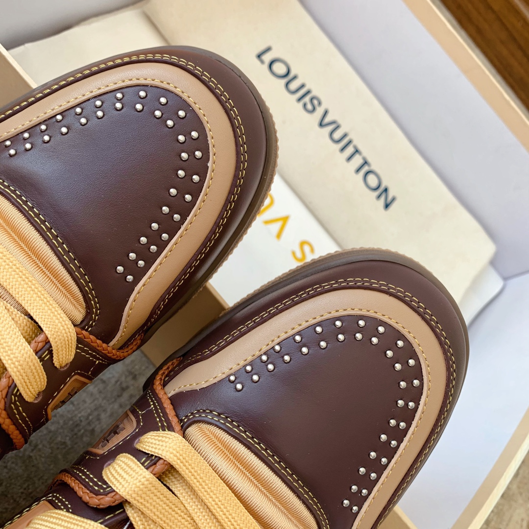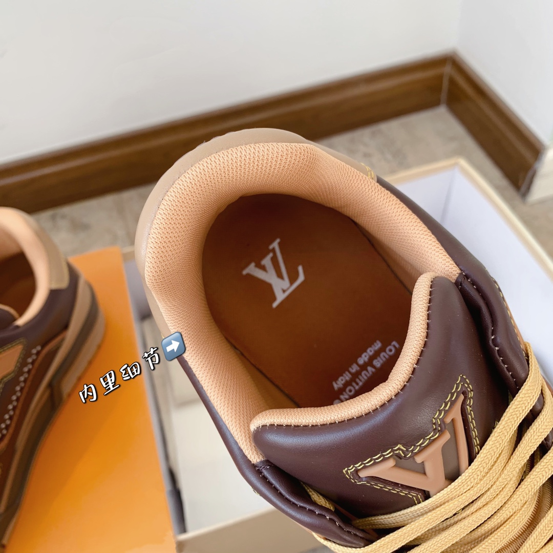 这款鞋子是AAAAA 1:1 质量 (非常棒). 使用了和原版一模一样的材料. 商标部分也保持了和路易威登/Louis Vuitton一样. 图片拍摄是实物鞋子拍摄, 您所收到的实物保证和我们图片一模一样.